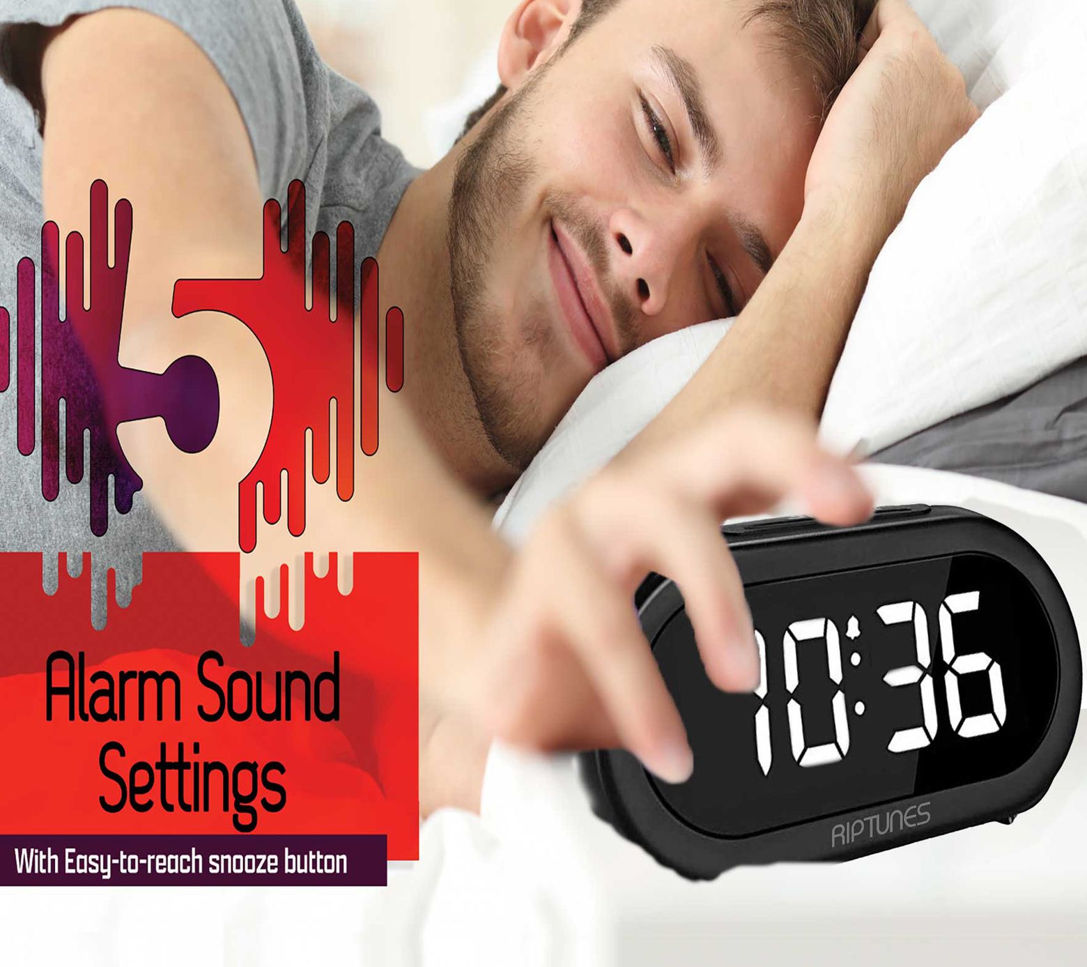 Riptunes 1.4" Digital Alarm Clock w/ 5 Alarm Sonds