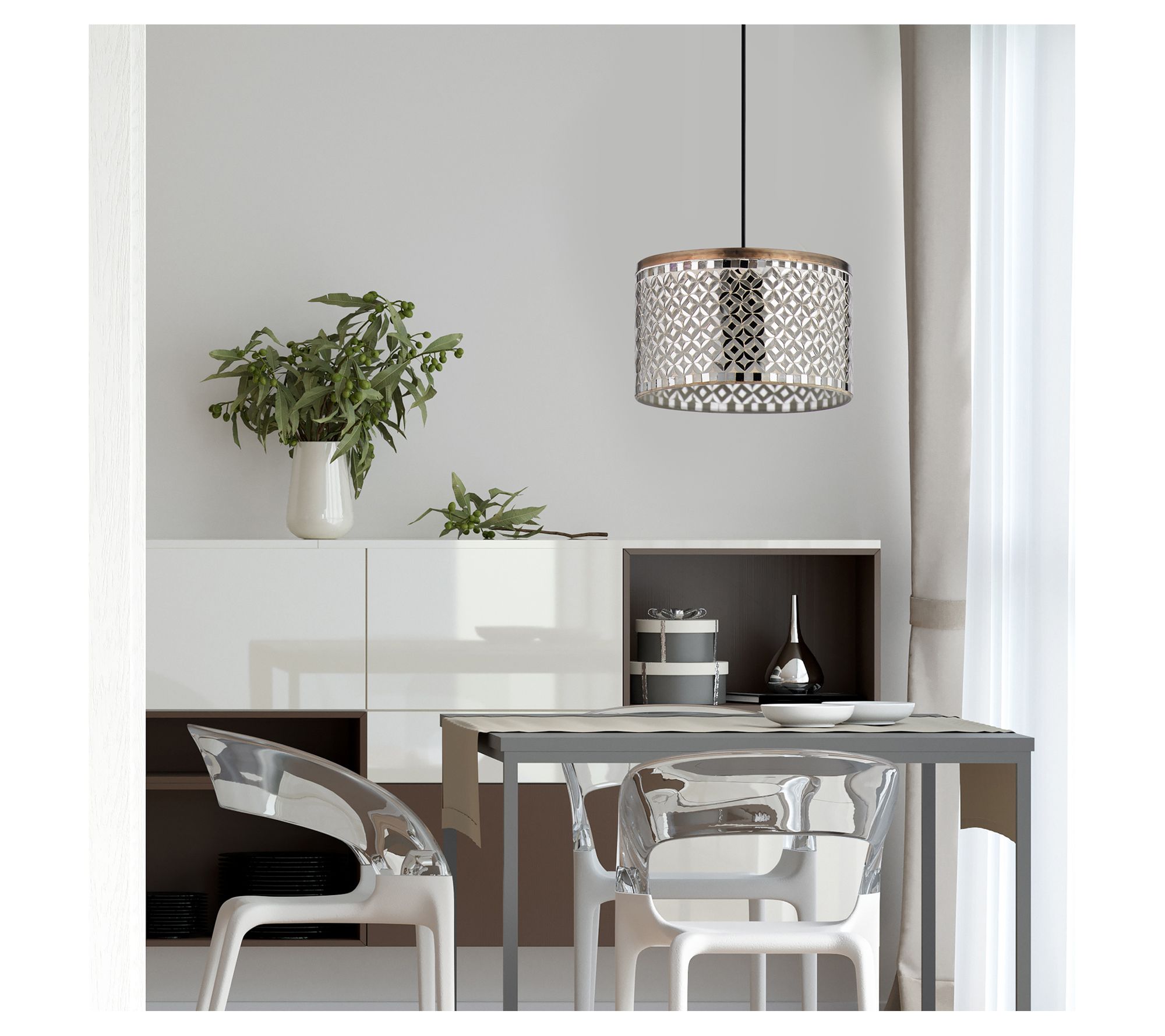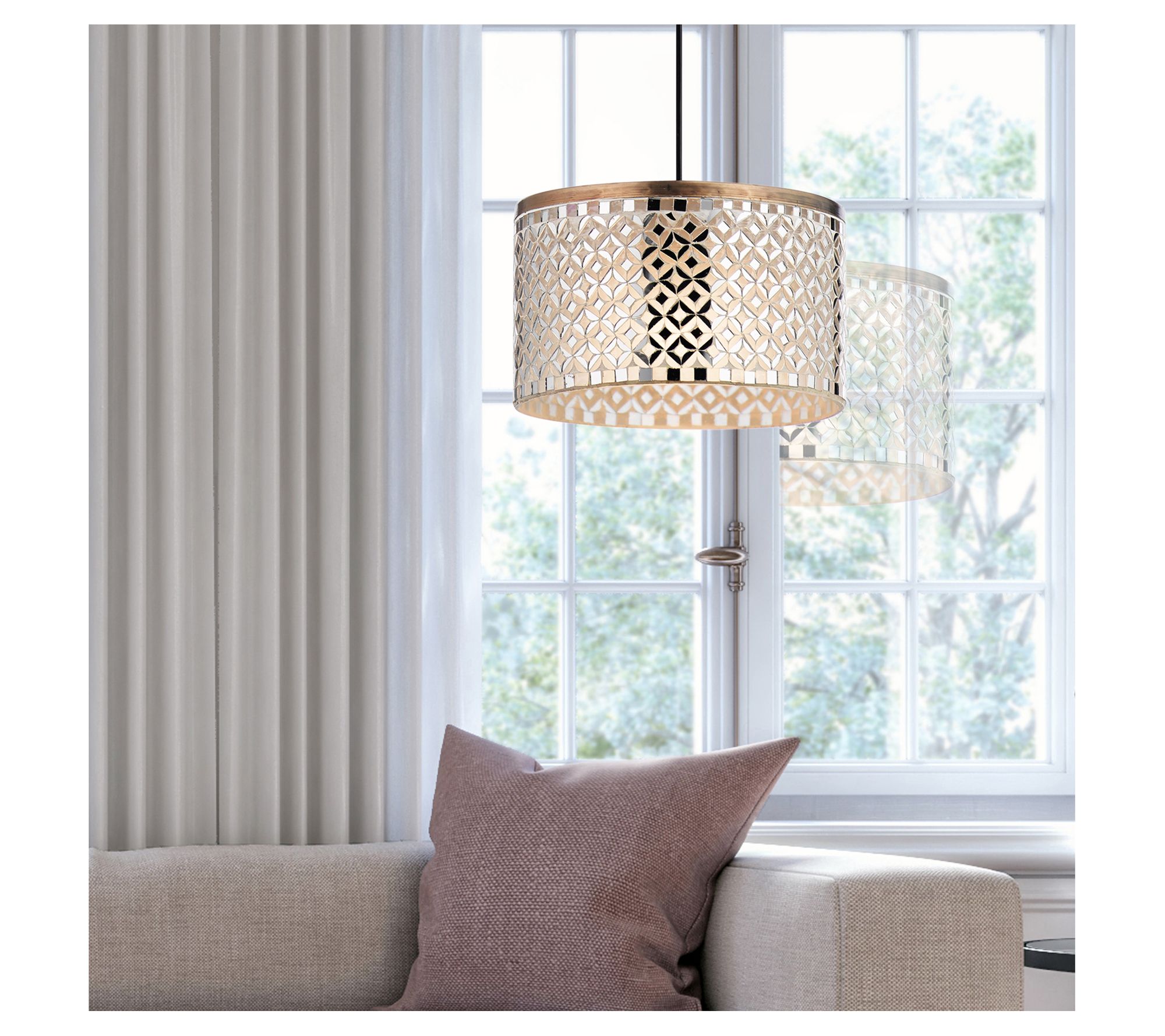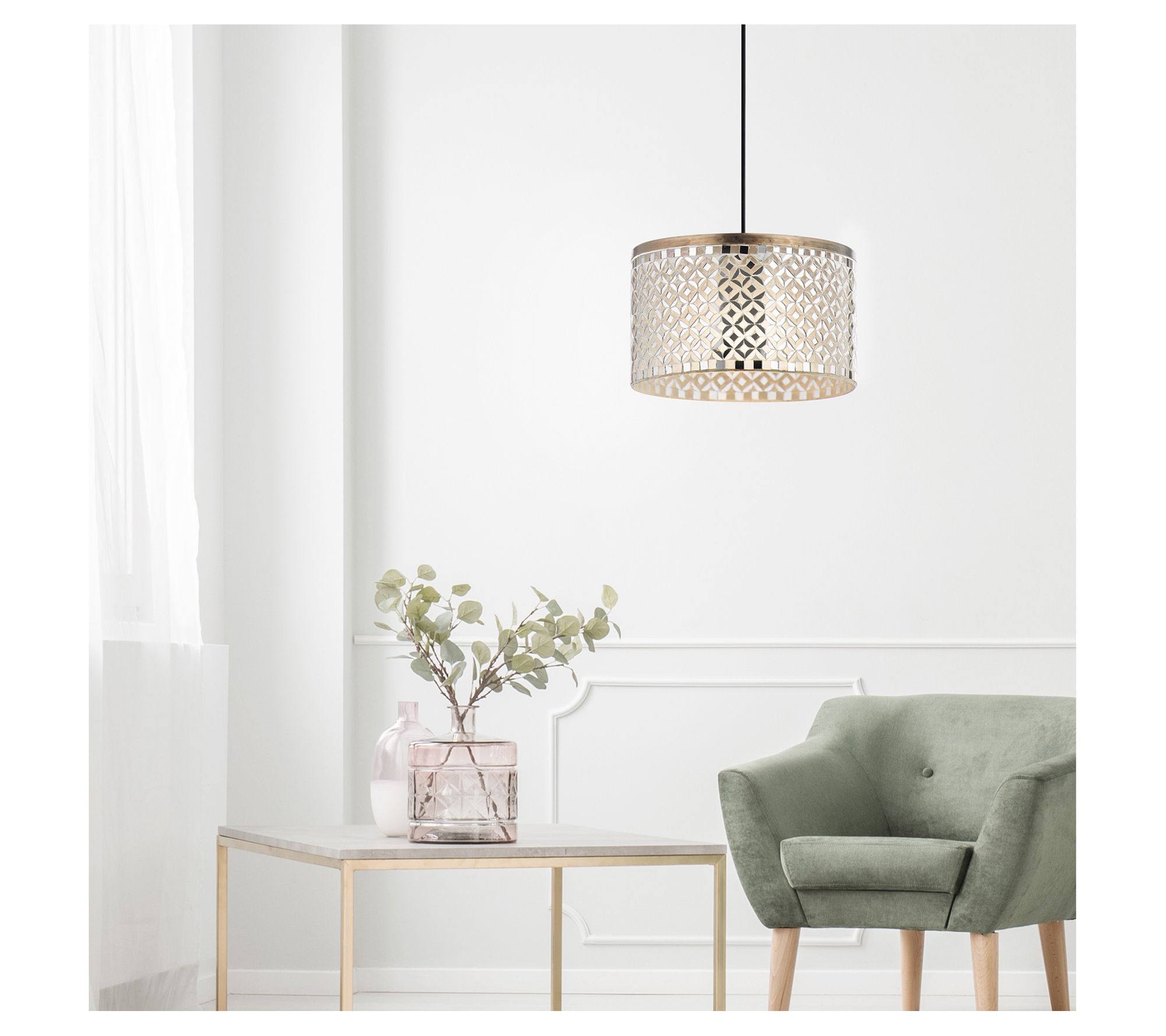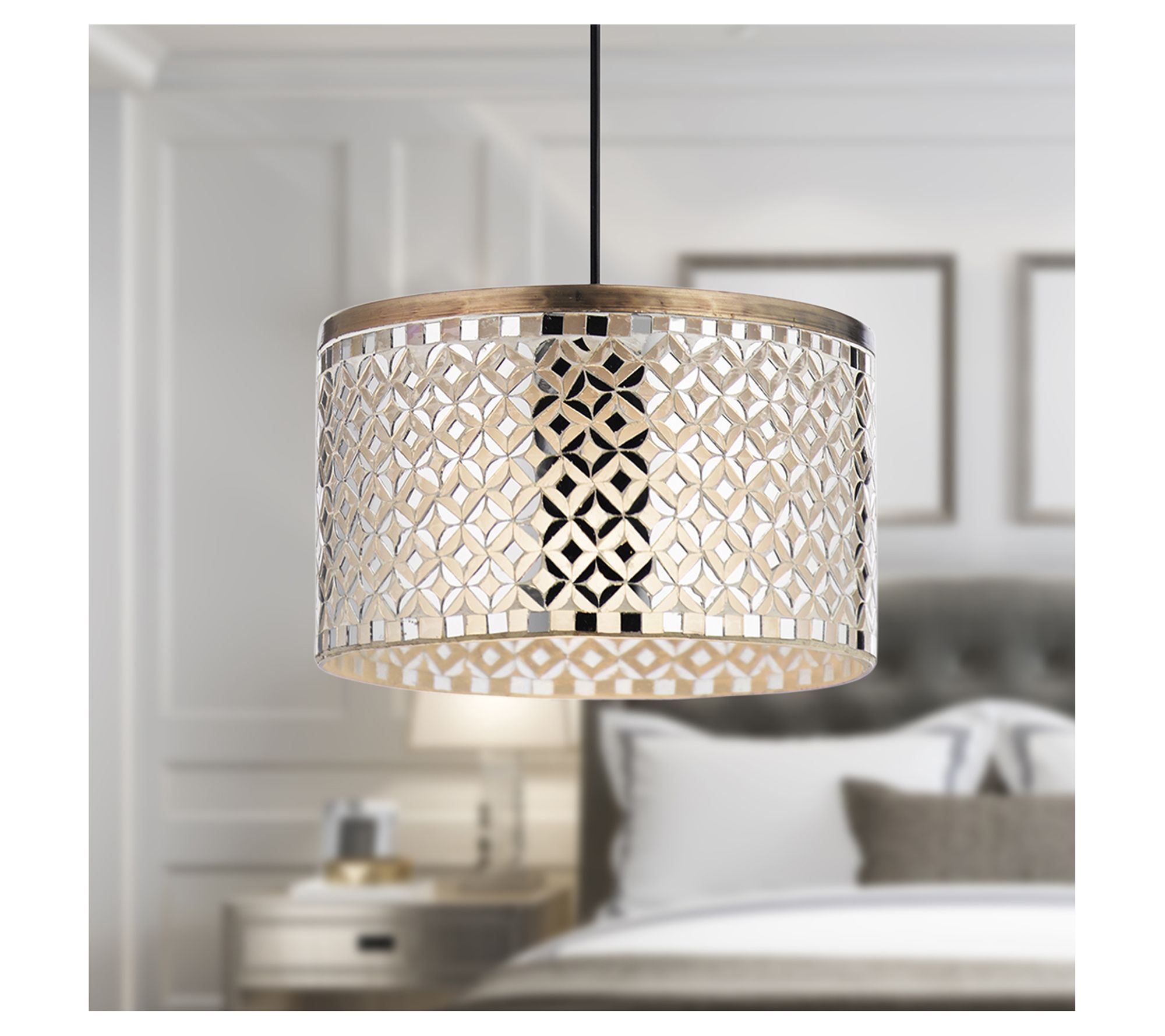 Hang this mosaic, mirrored drum shade pendant above your island for a pop of glam in your modern kitchen. From River of Goods.