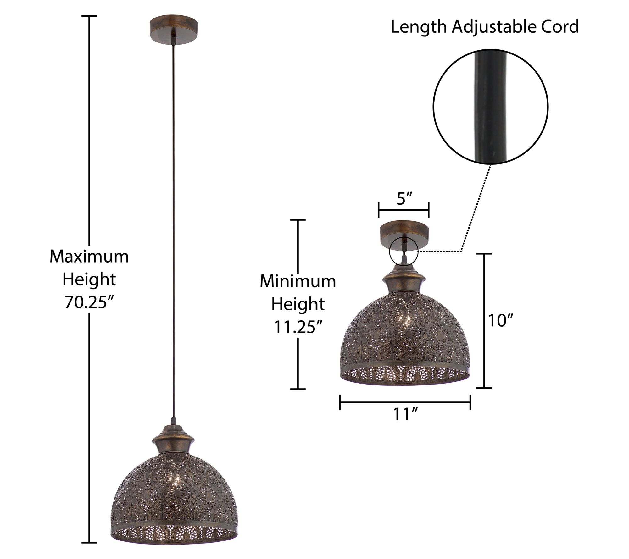 • Measures 11"Diam x 11.25"H to 70.25"H