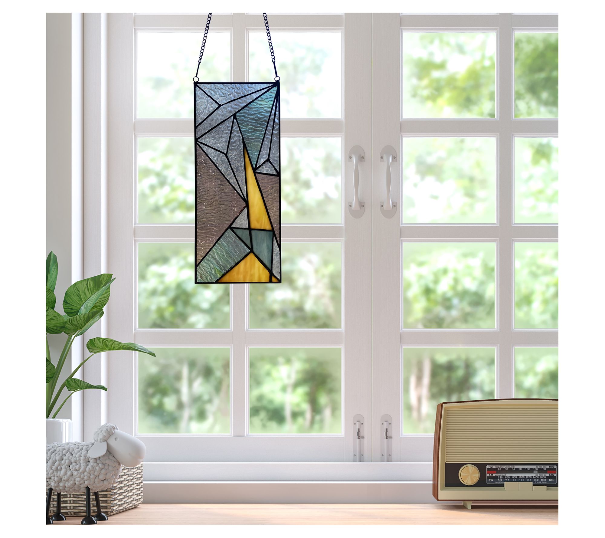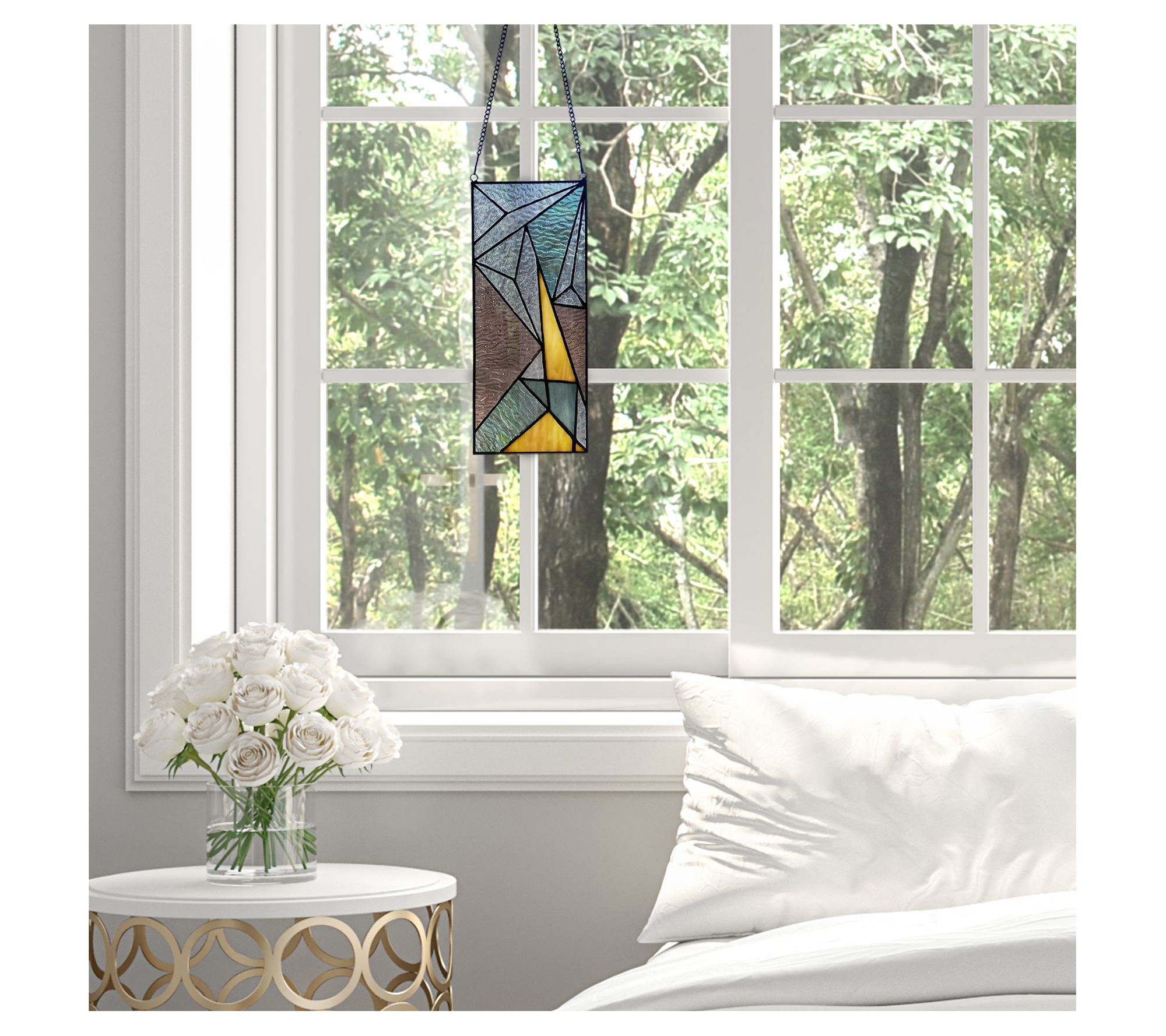 They say there's nothing new under the sun but we disagree. Just hang this dazzling stained glass panel in your window and watch as your room sparkles with prismatic rays of light. From River of Goods.