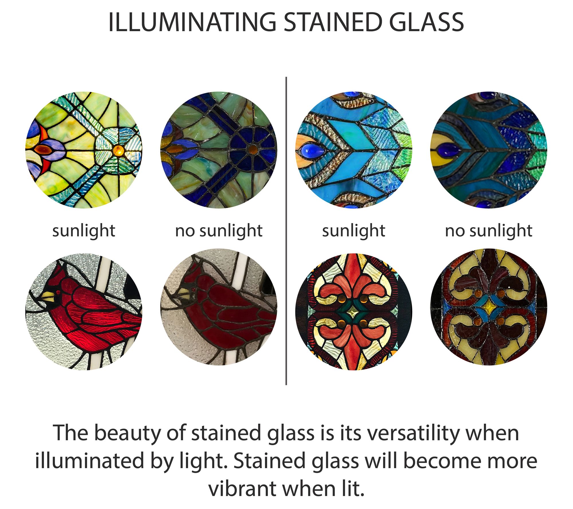 • Stained glass panel is made with 20 individual glass cuts