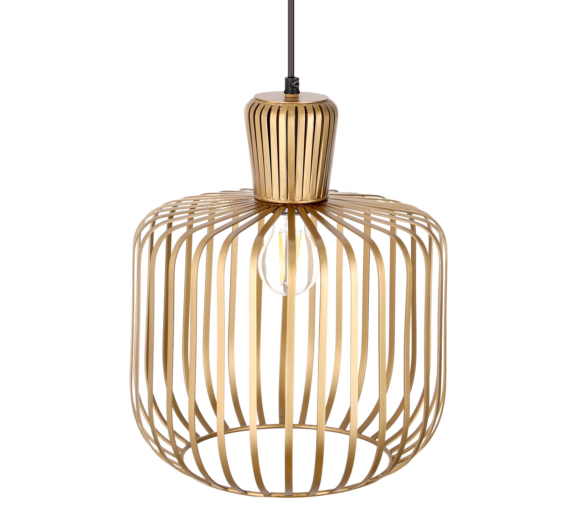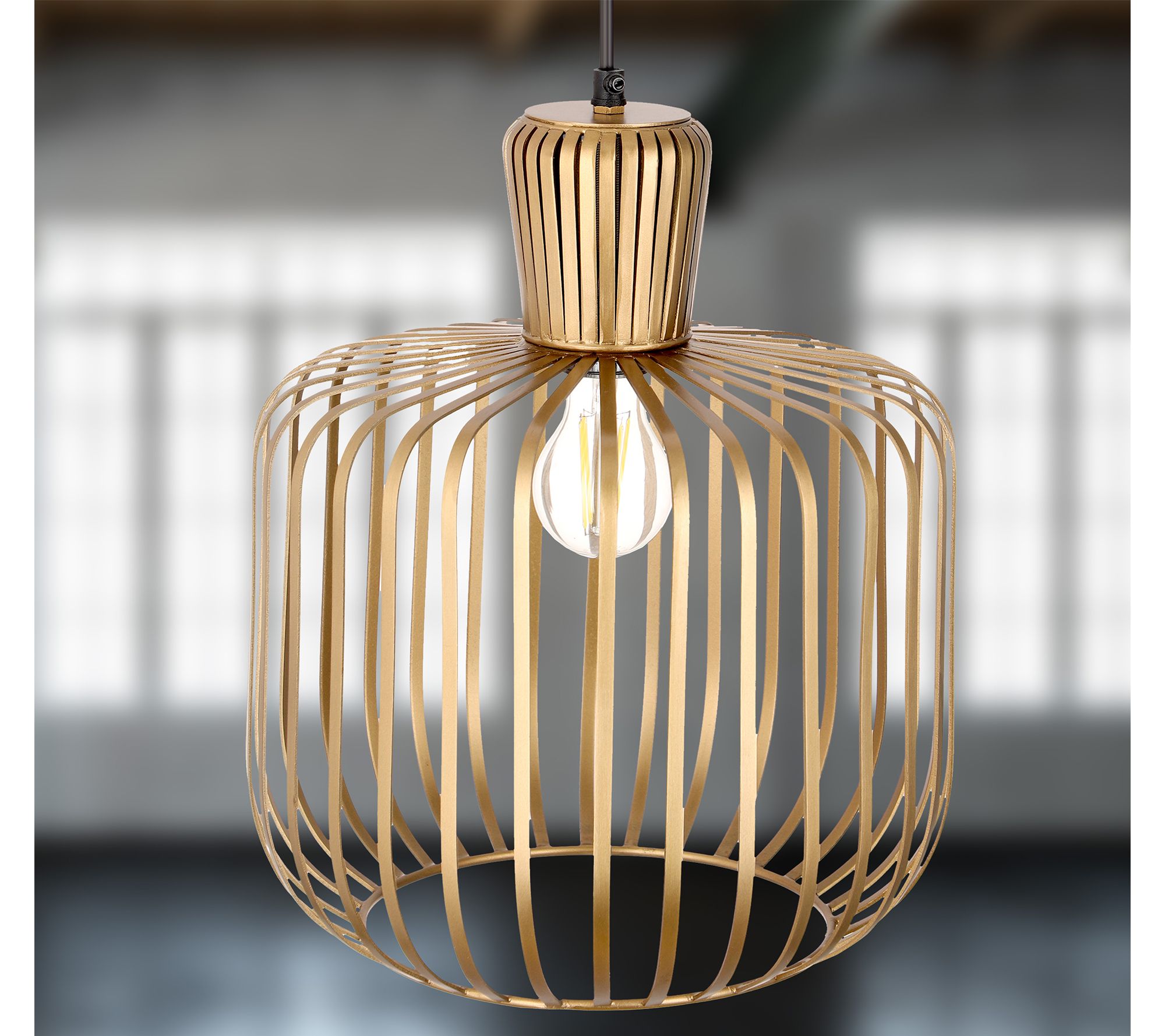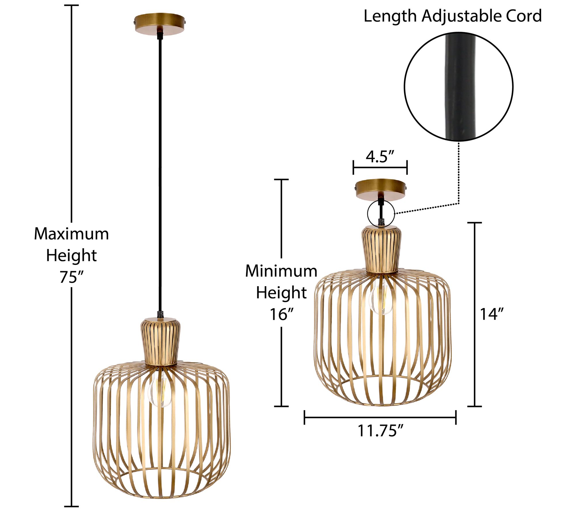 Add a bright touch of glam to any space with this pendant light fixture that features a cage design in an antique brass finish. From River of Goods.