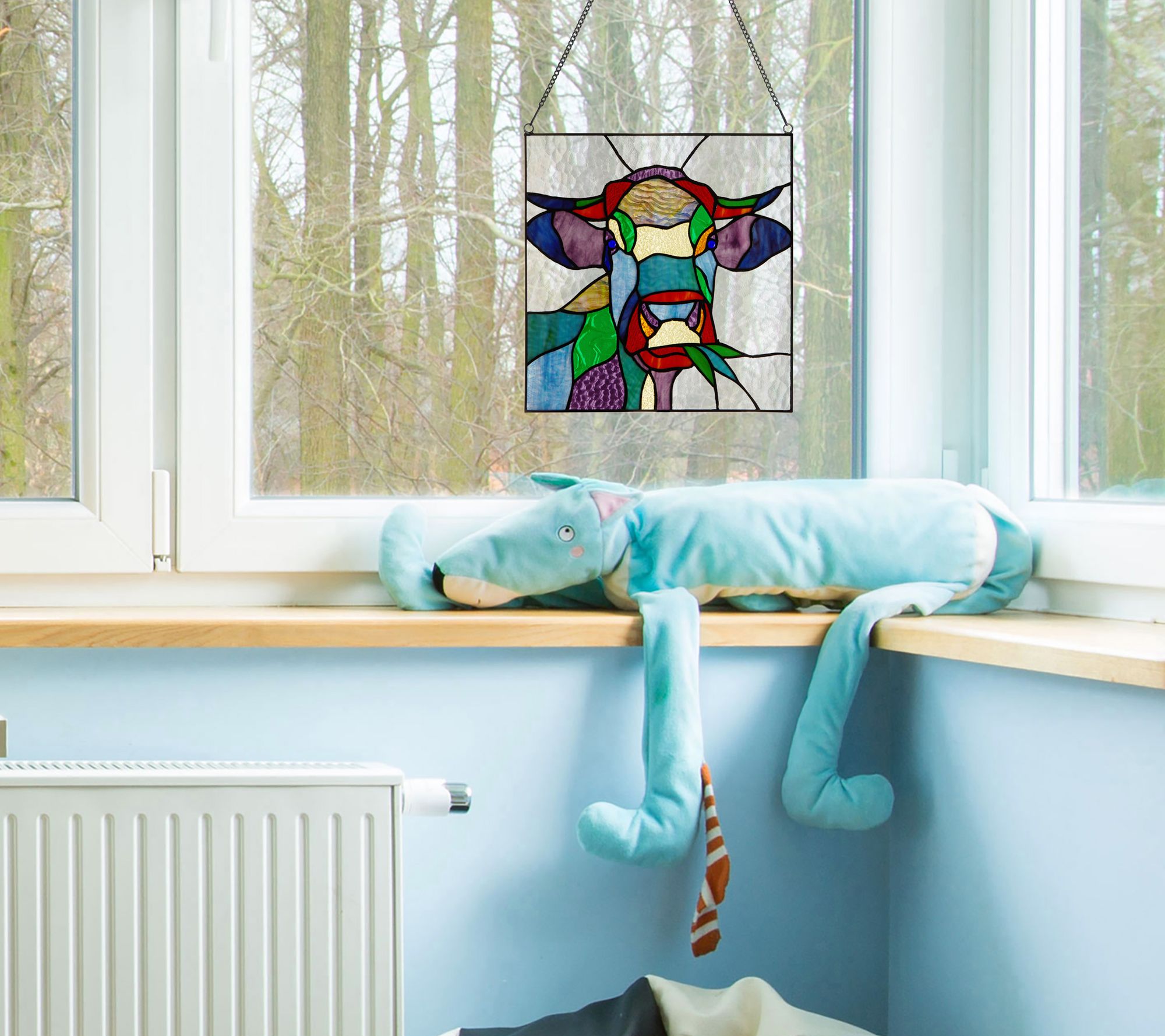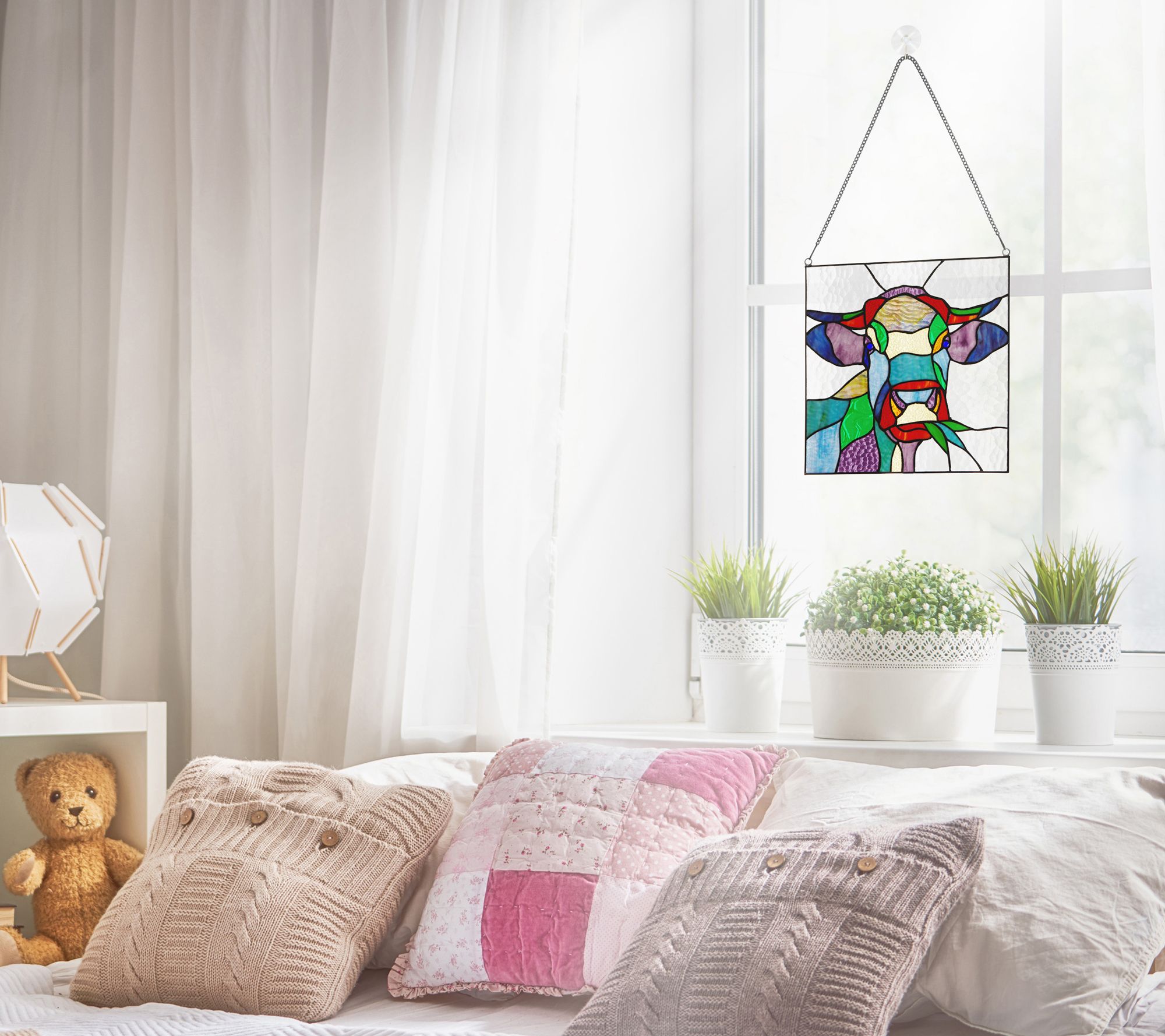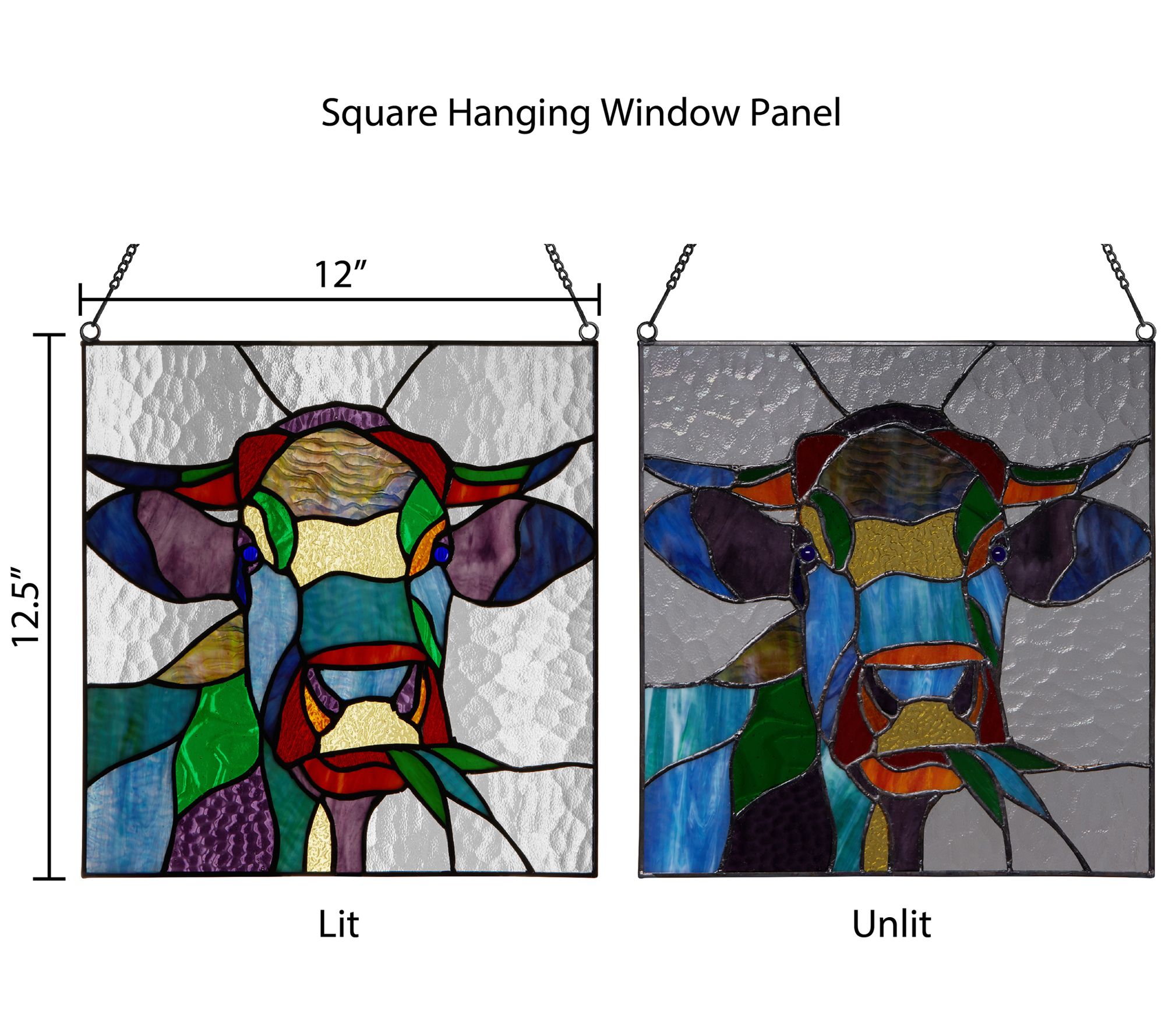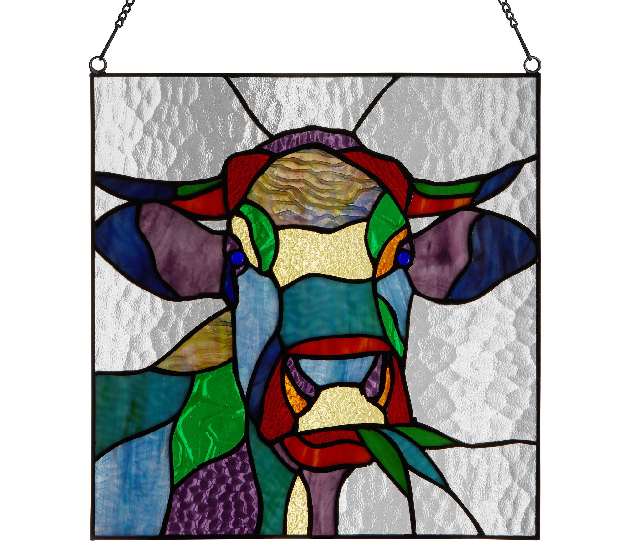 River of Goods 12.5"H Cow Stained Glass Window Panel