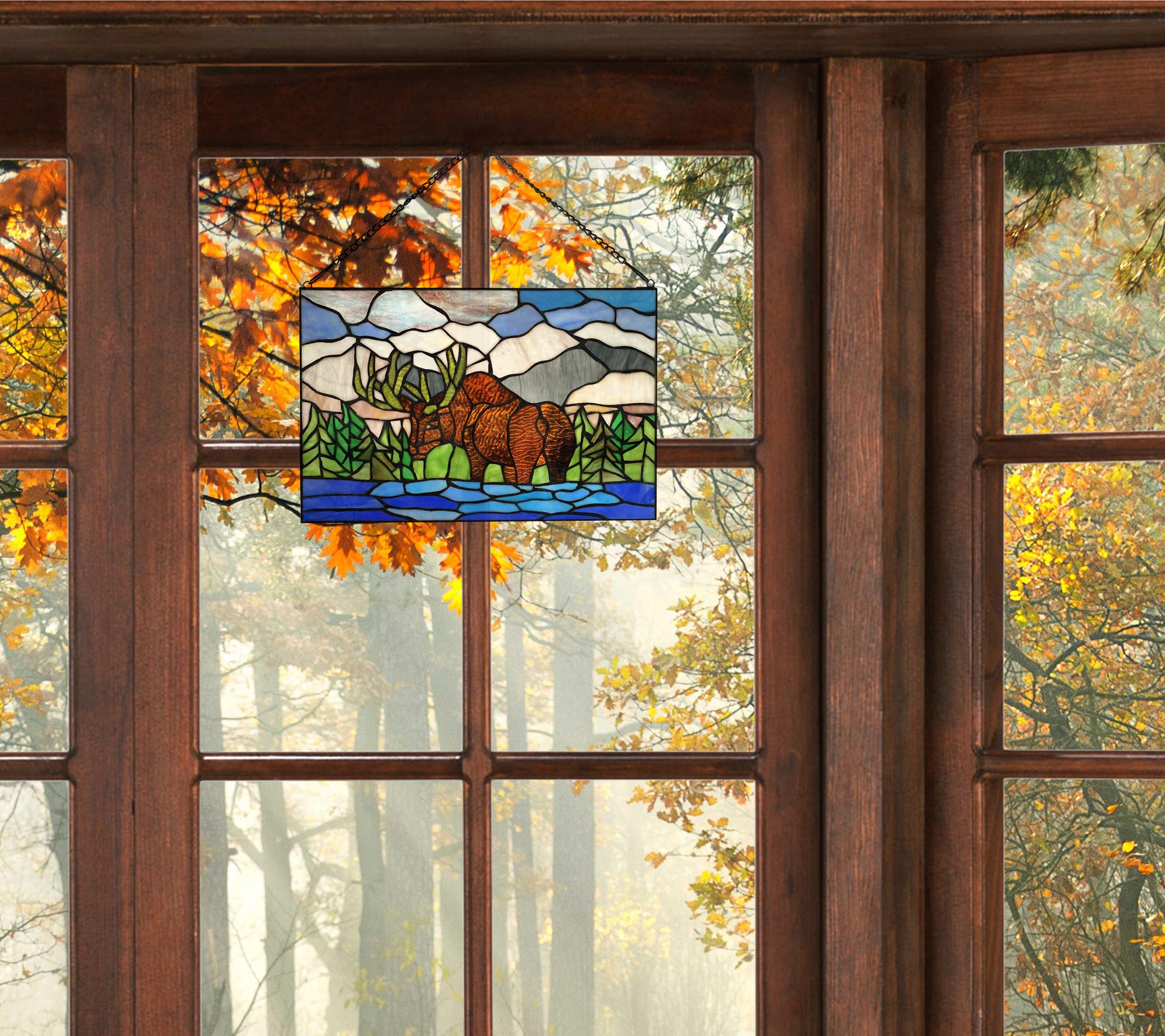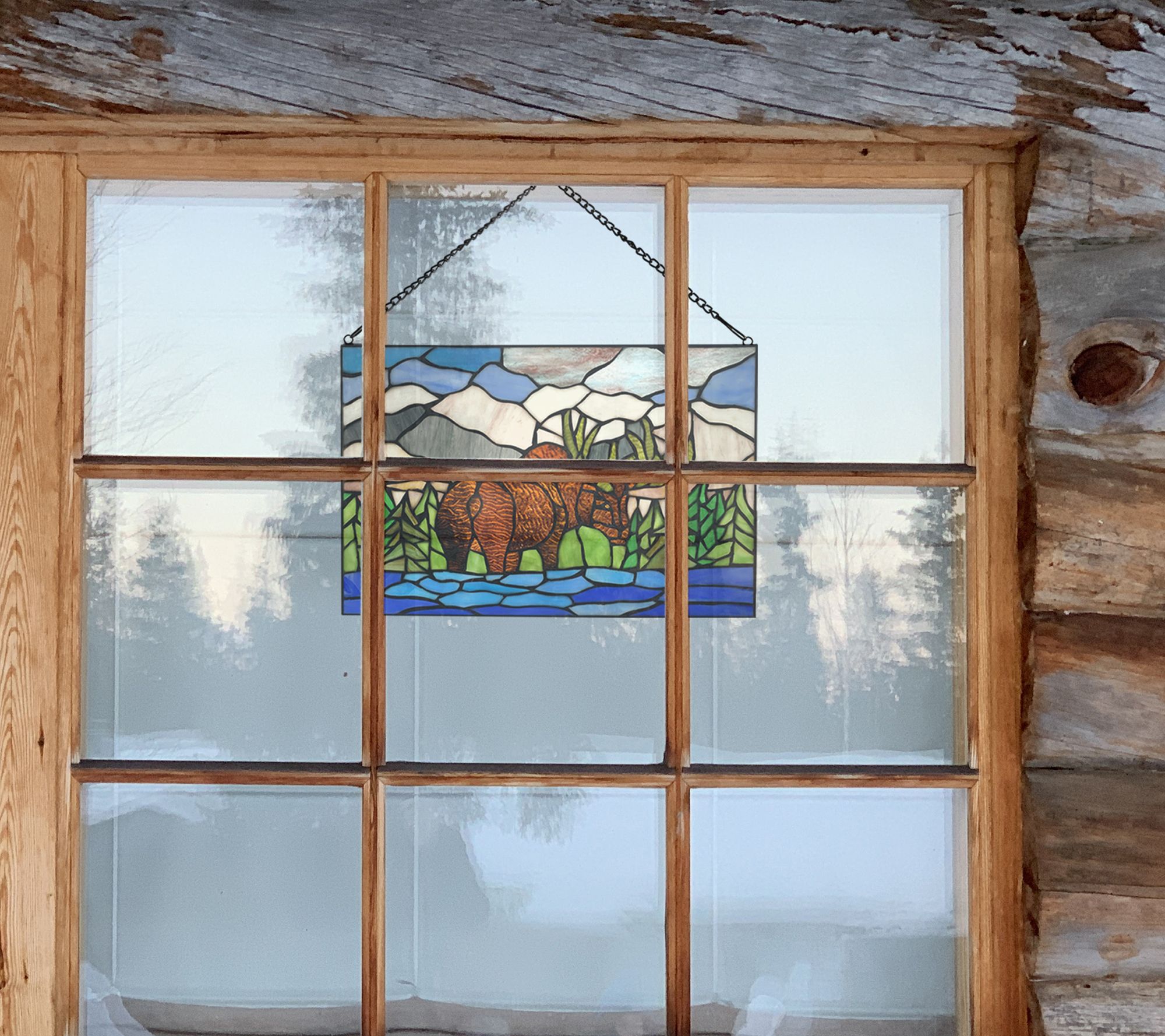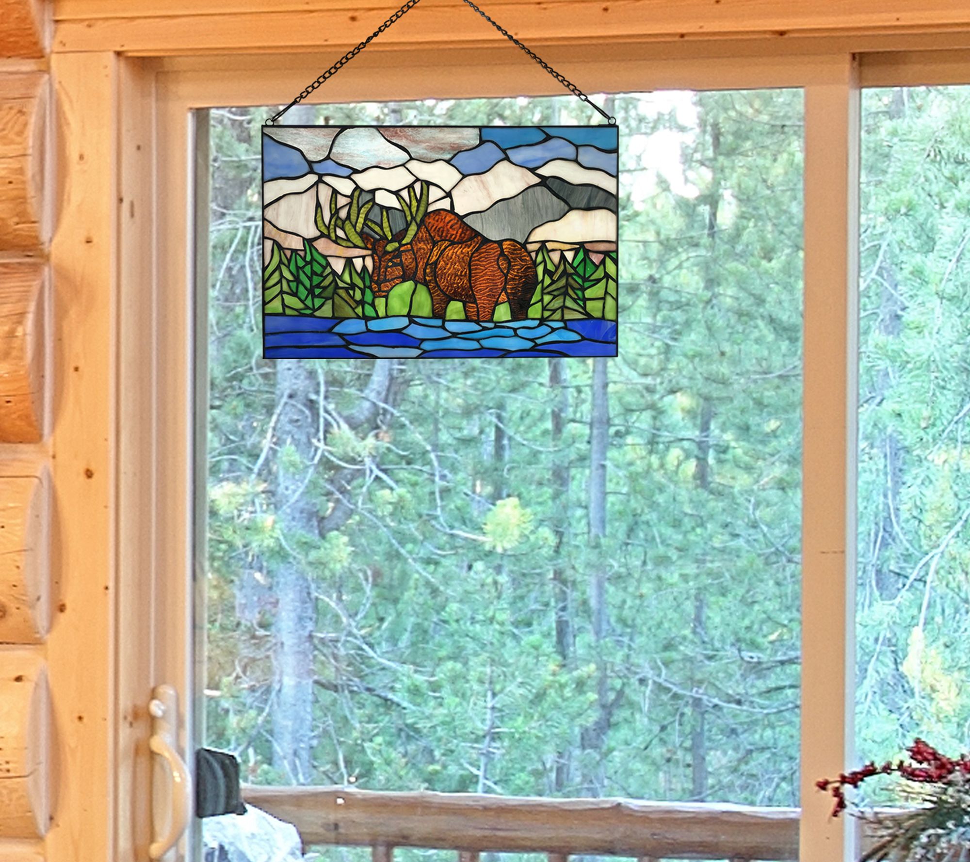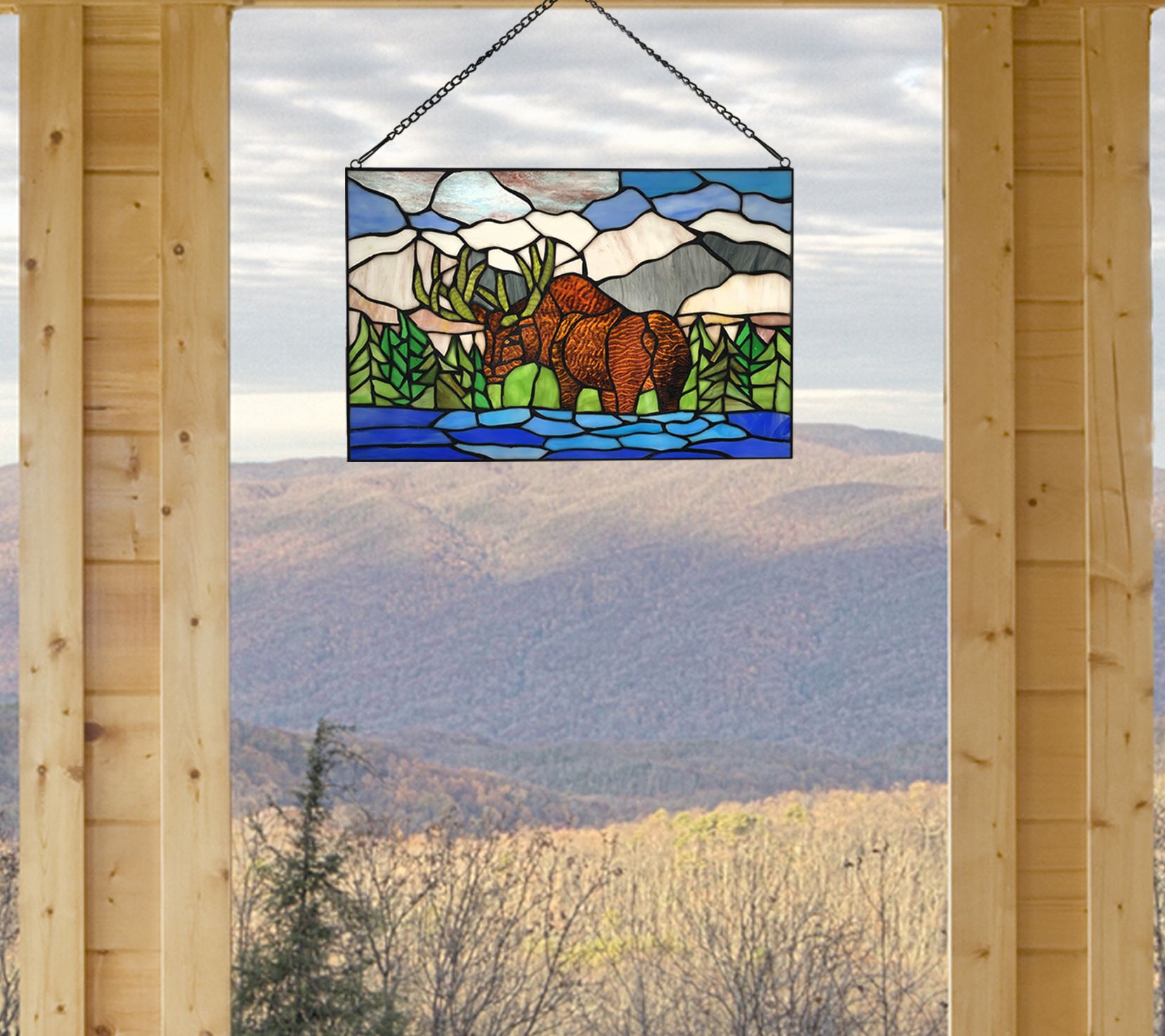 River of Goods 12"H Moose Mountain Stained Glass Window Panel