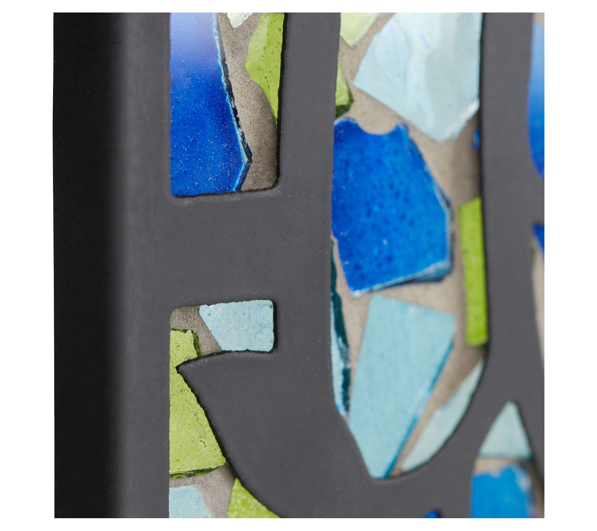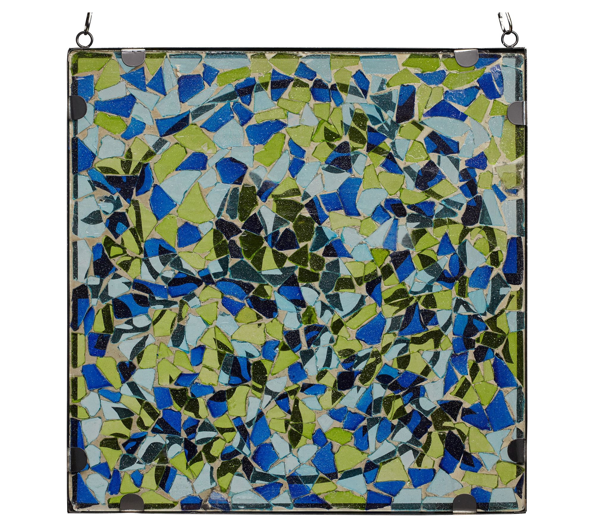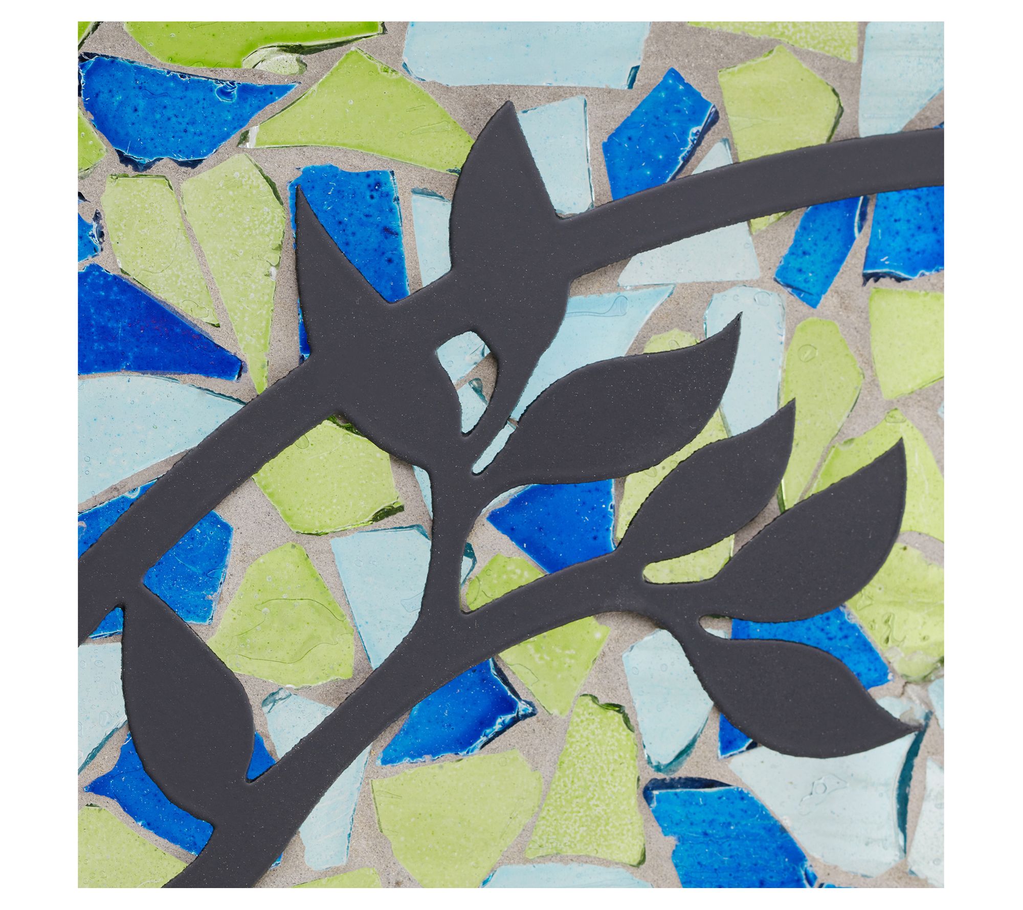 Brighten up your home with the River of Goods love birds mosaic stained glass panel. Featuring a vibrant design of two love birds perched on a circular tree branch, this charming piece is crafted with beautiful shades of blue, aqua, yellow, and black. From River of Goods.