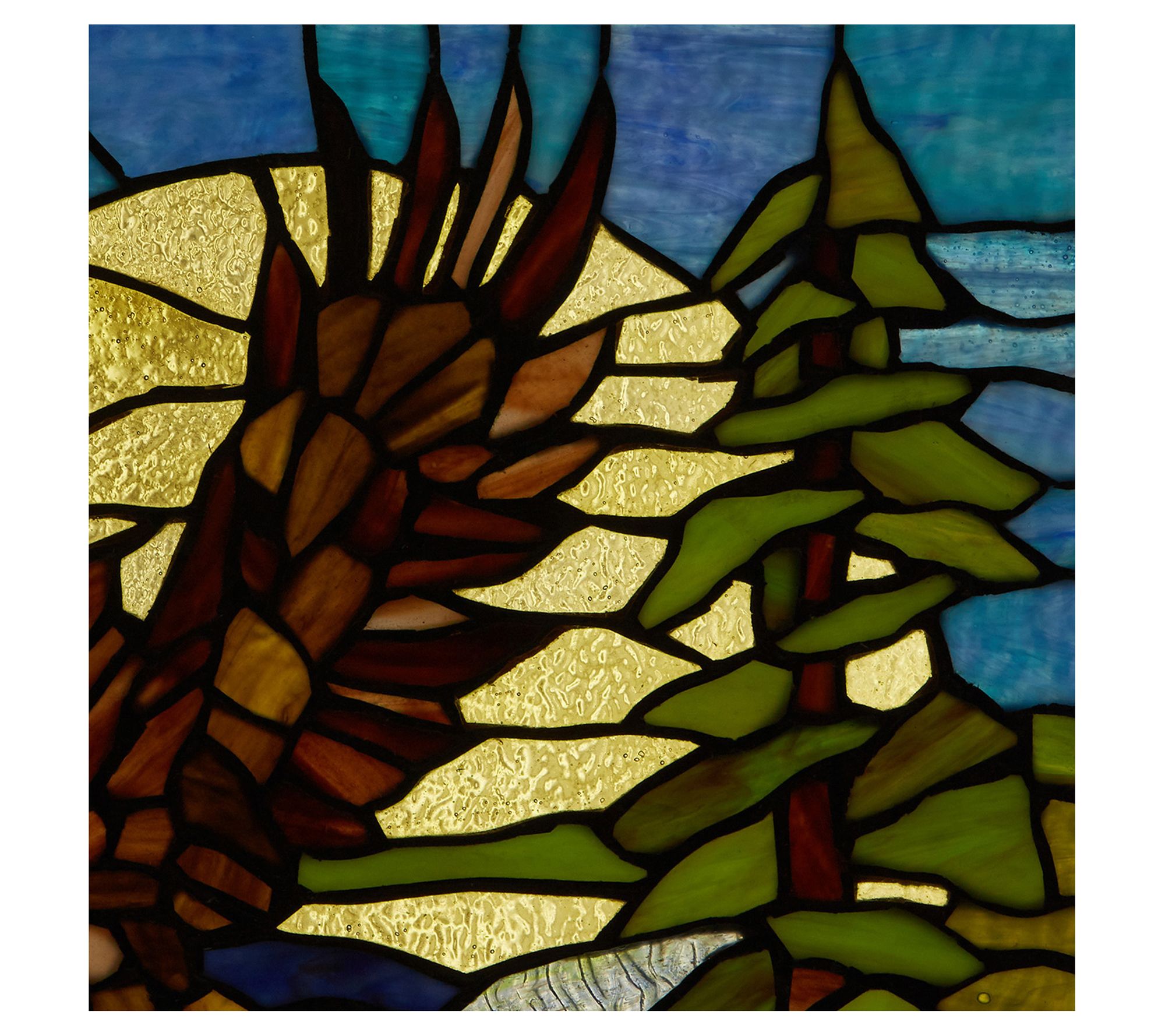 • Stained glass panel is made with 190 individual glass cuts