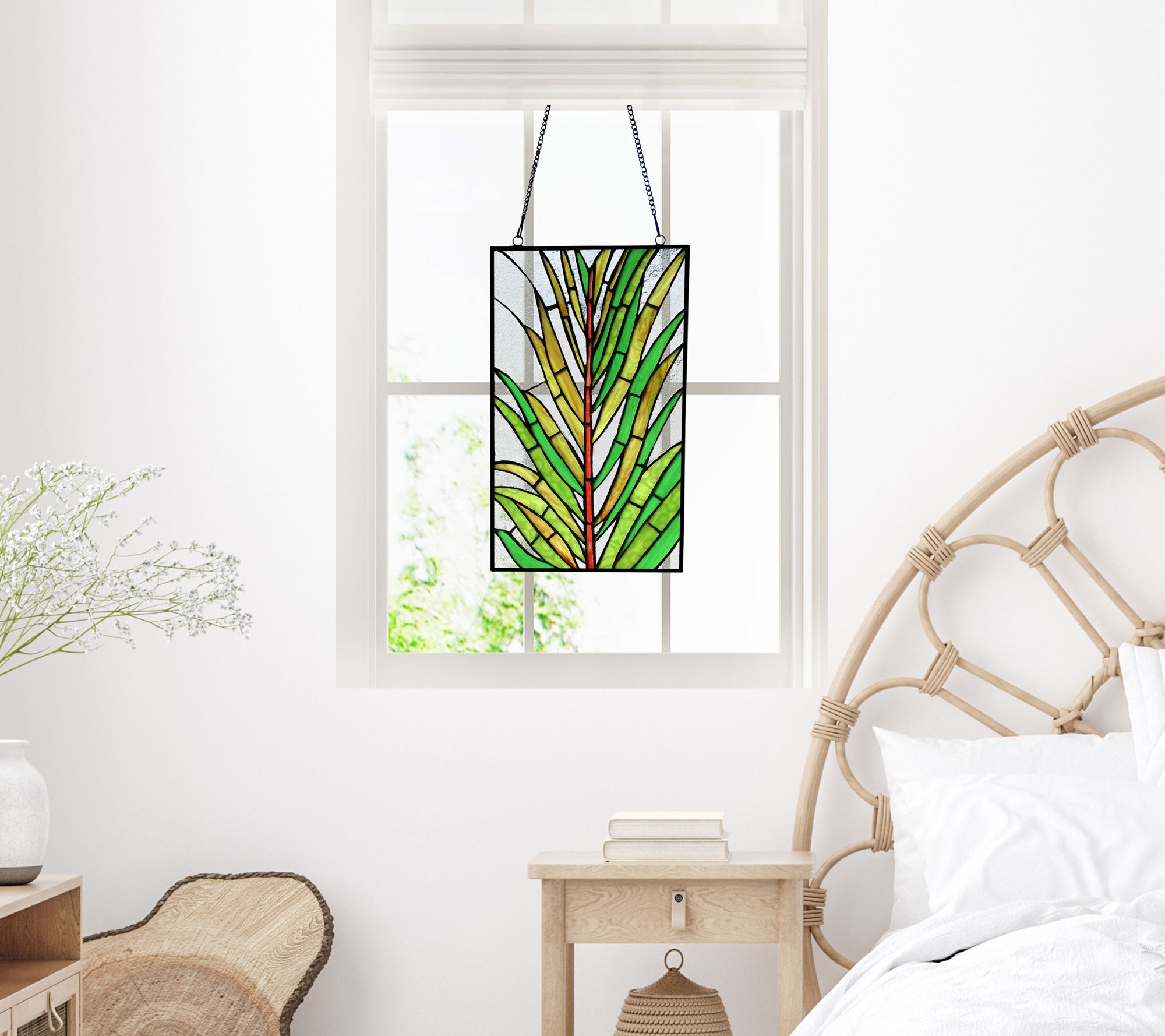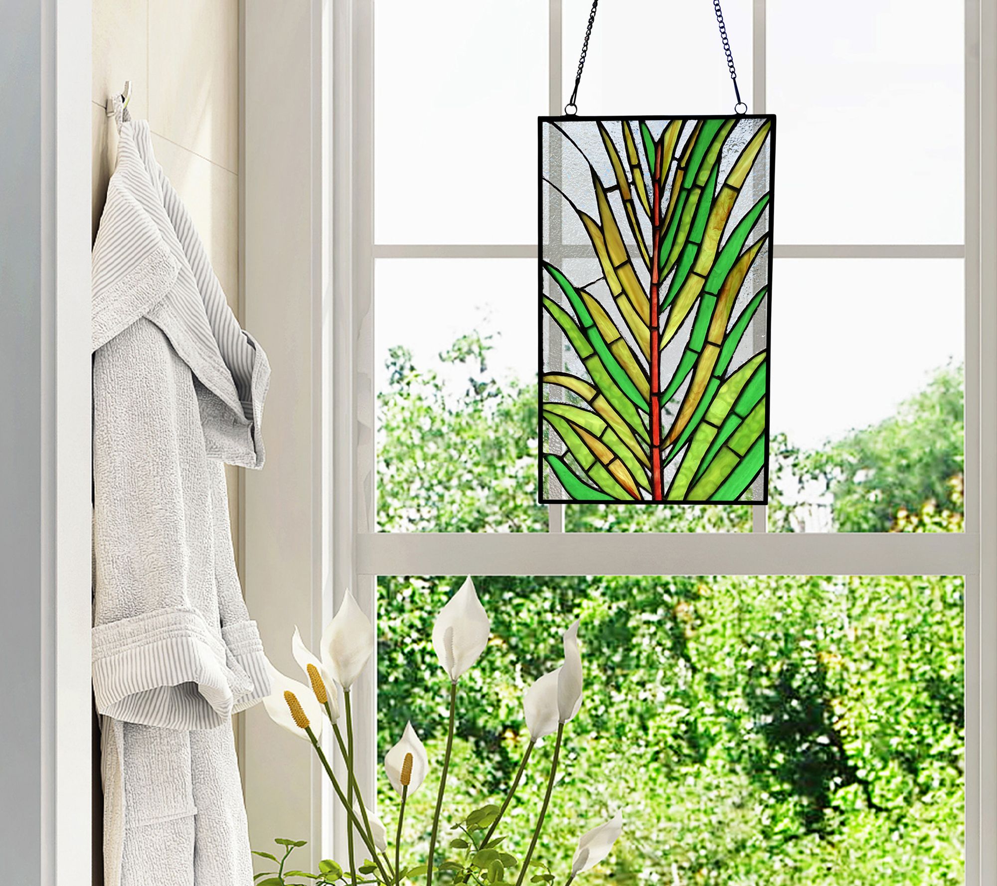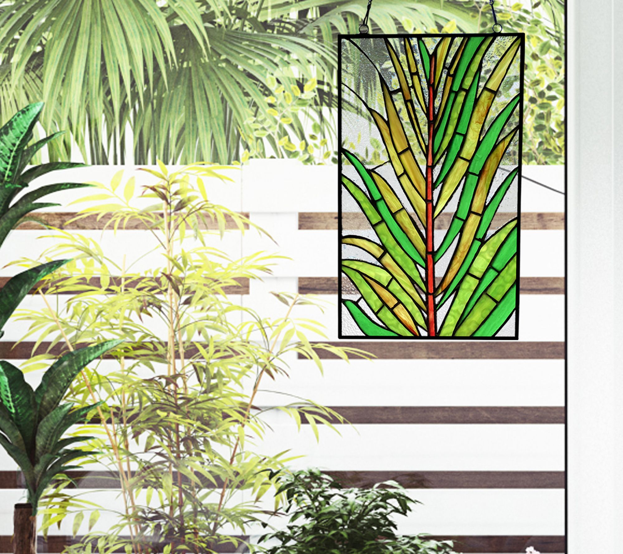River of Goods 14"H Palm Frond Stained Glass Window Panel