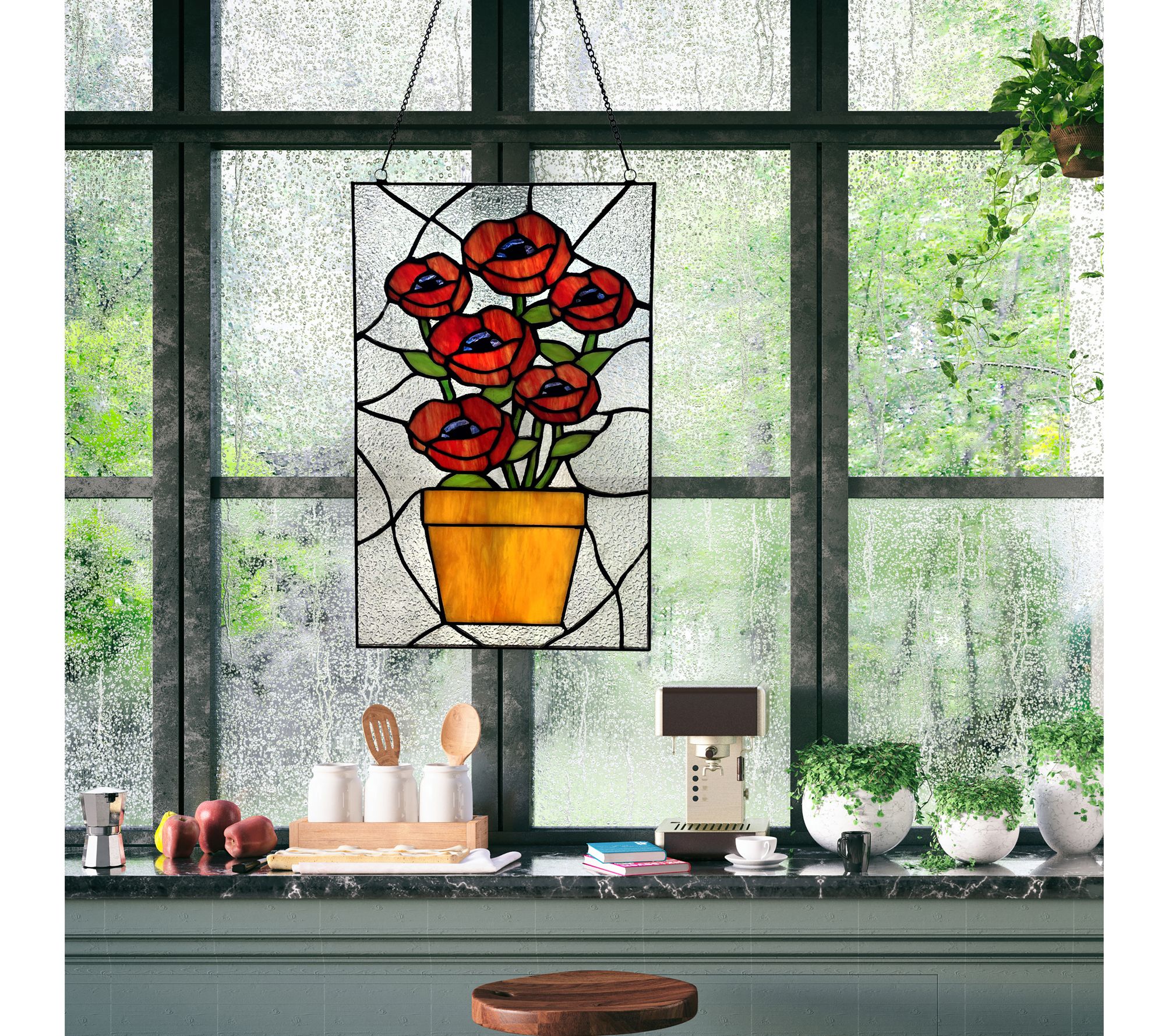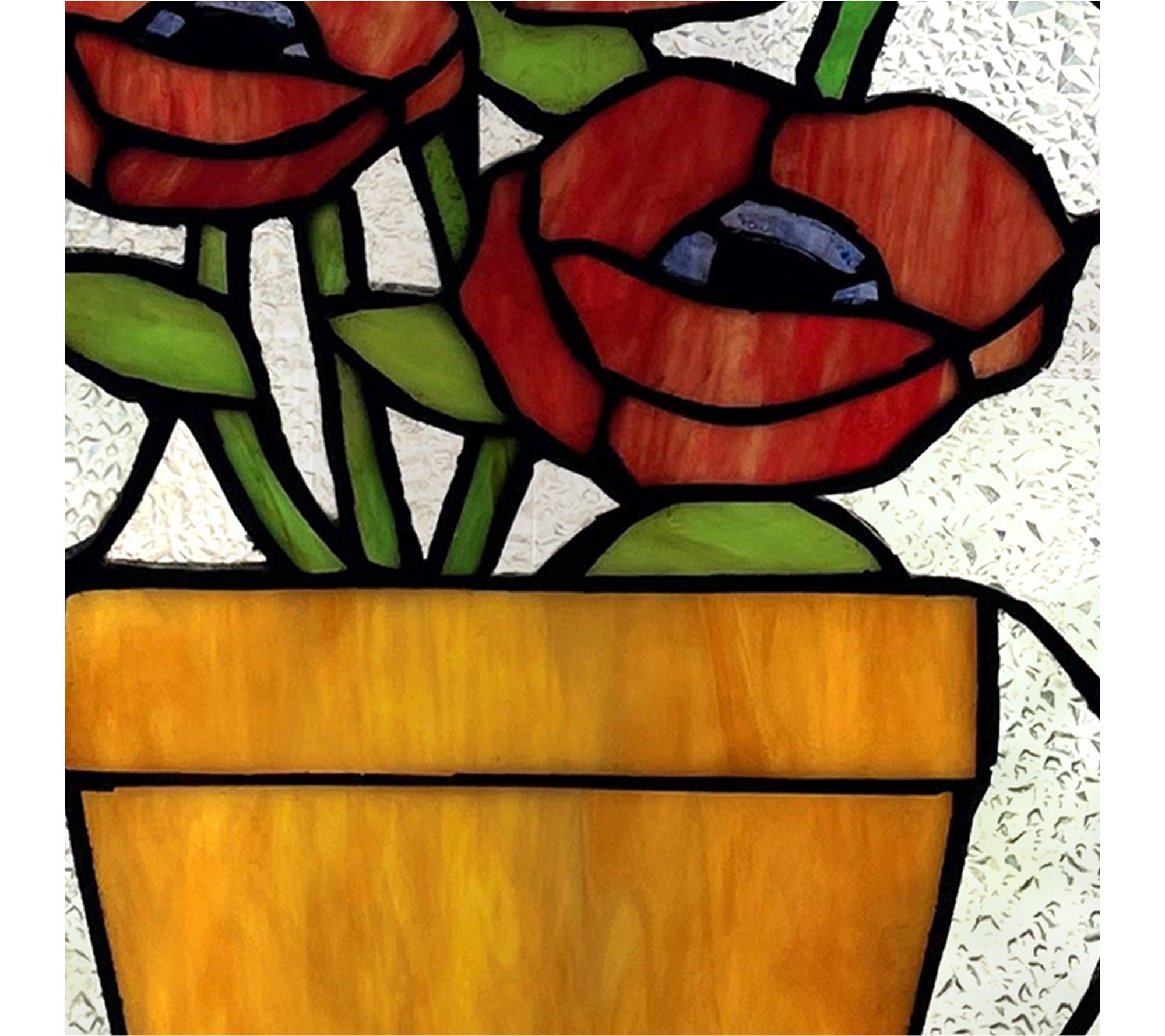 Create a lovely display in your home with this Tiffany-style textured stained glass window panel featuring a charming floral design. From River of Goods.