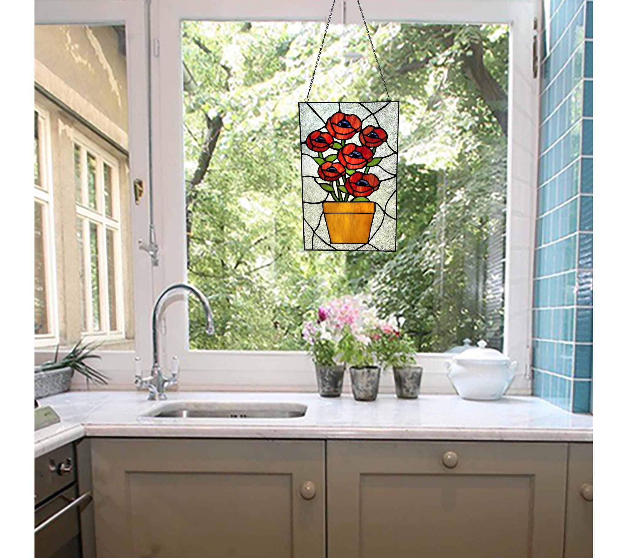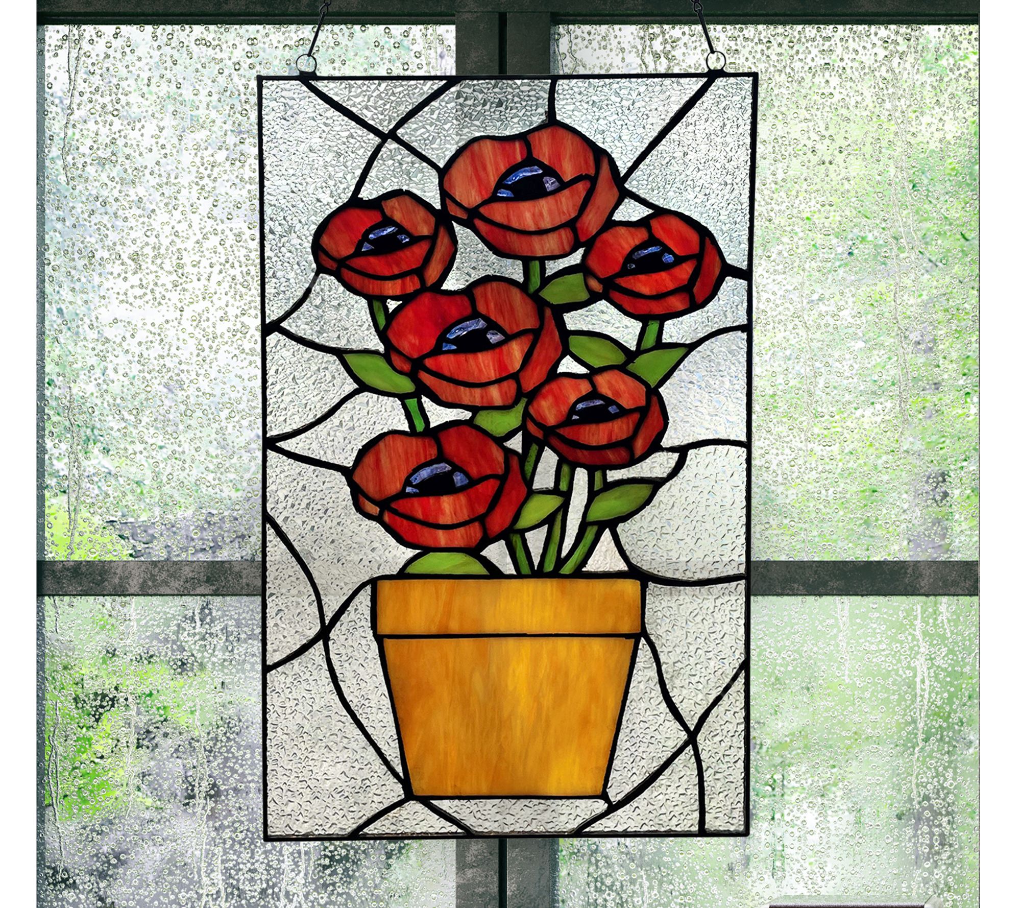 River of Goods 16"H Flowers Stained Glass Window Panel