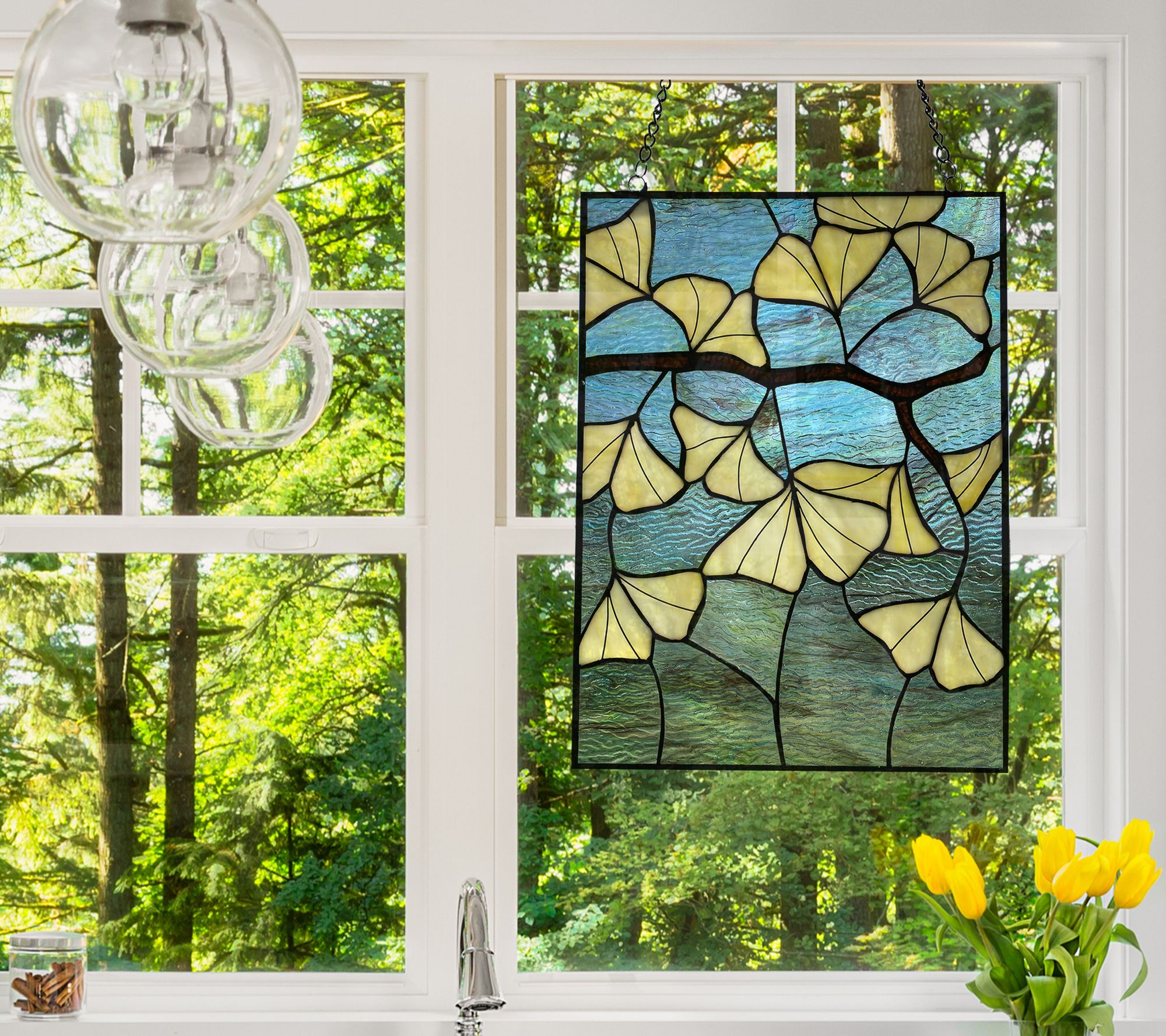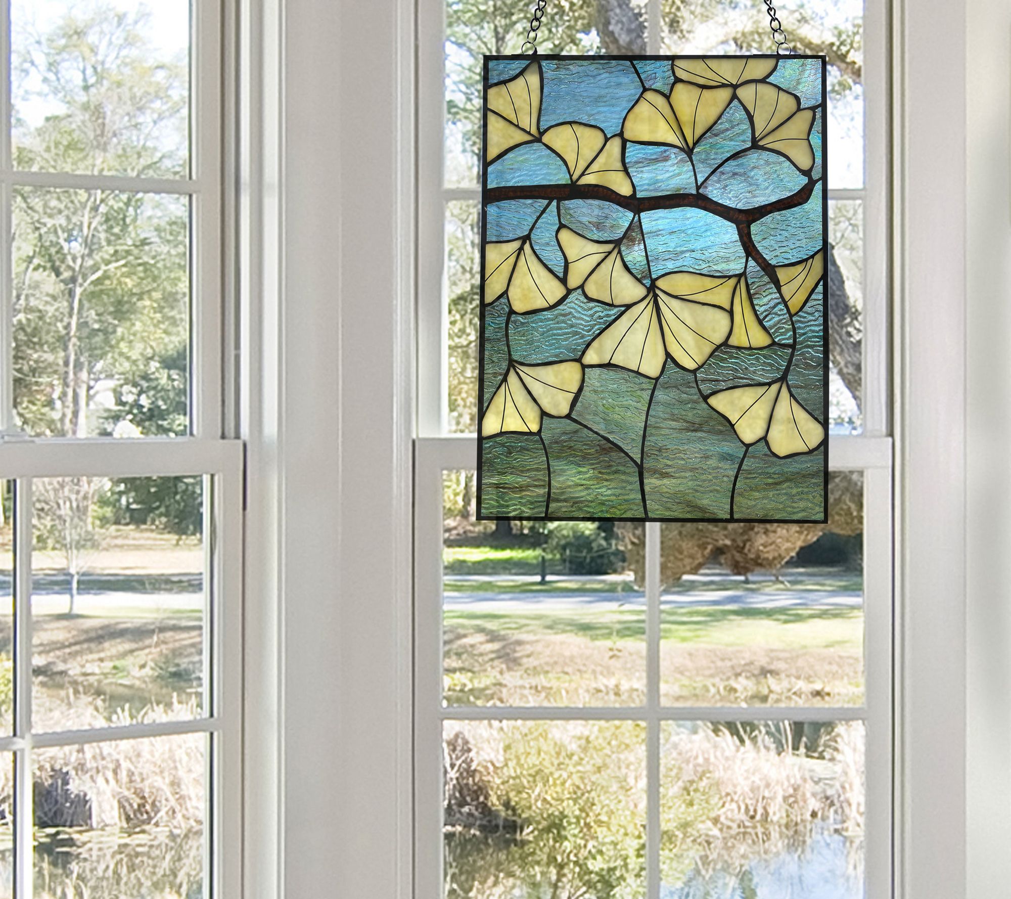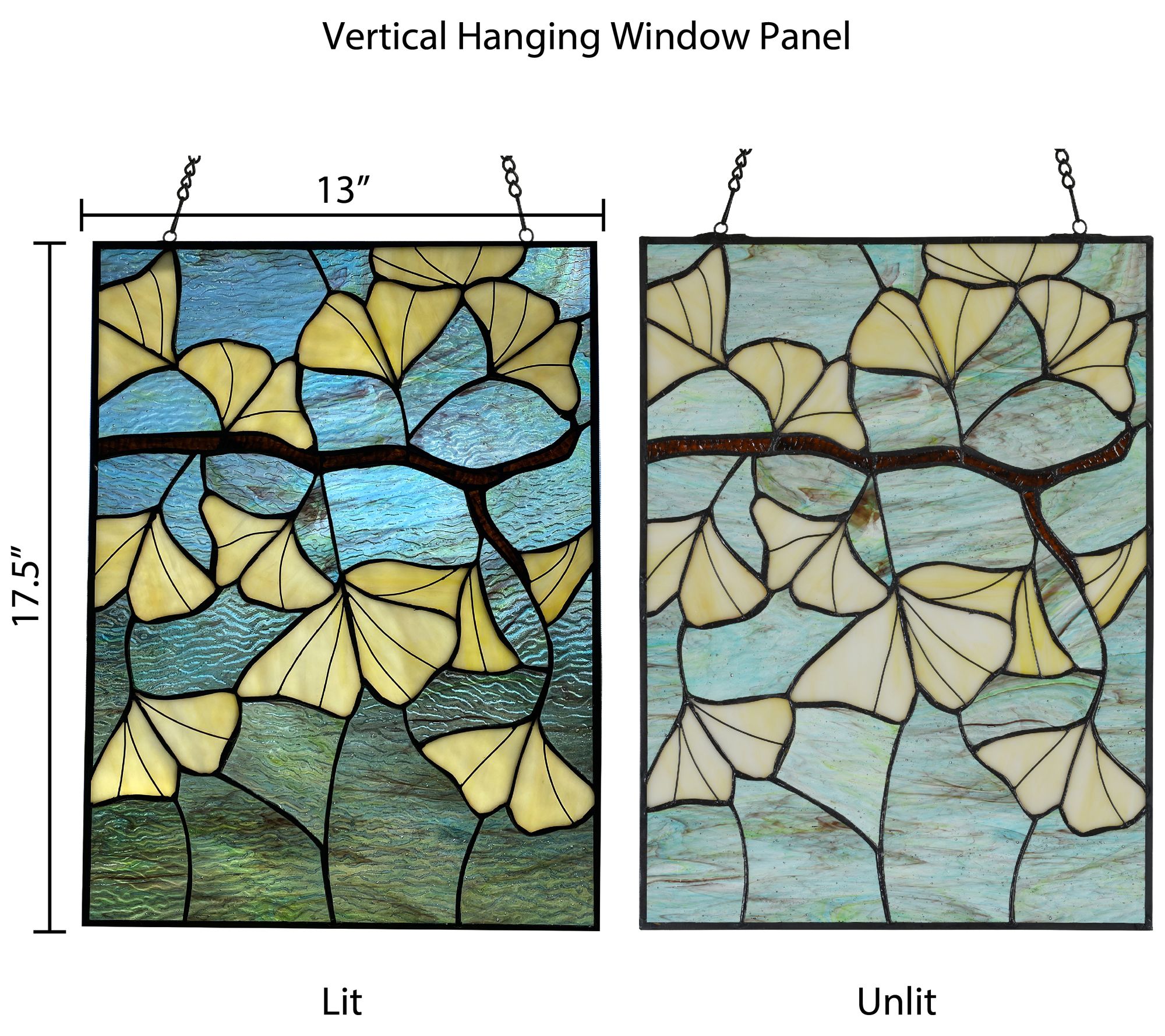 River of Goods 17.5"H Ginkgo Stained Glass Window Panel