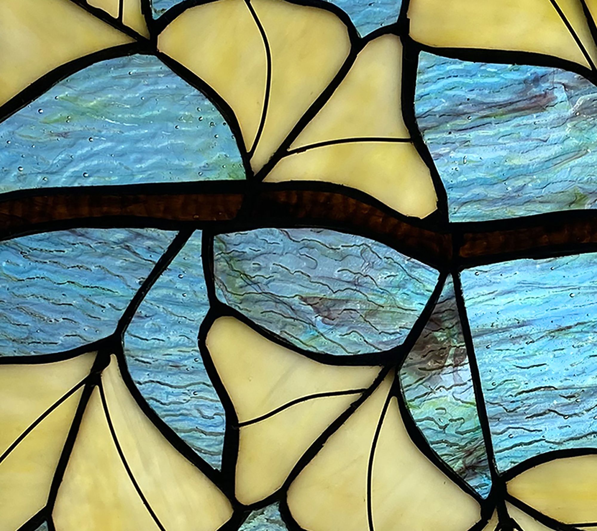 Stained glass brings a classic, but vibrant accent to any window instantly. Add some allure with this Ginkgo style panel full of blue, purple, and yellow colors. From River of Goods.