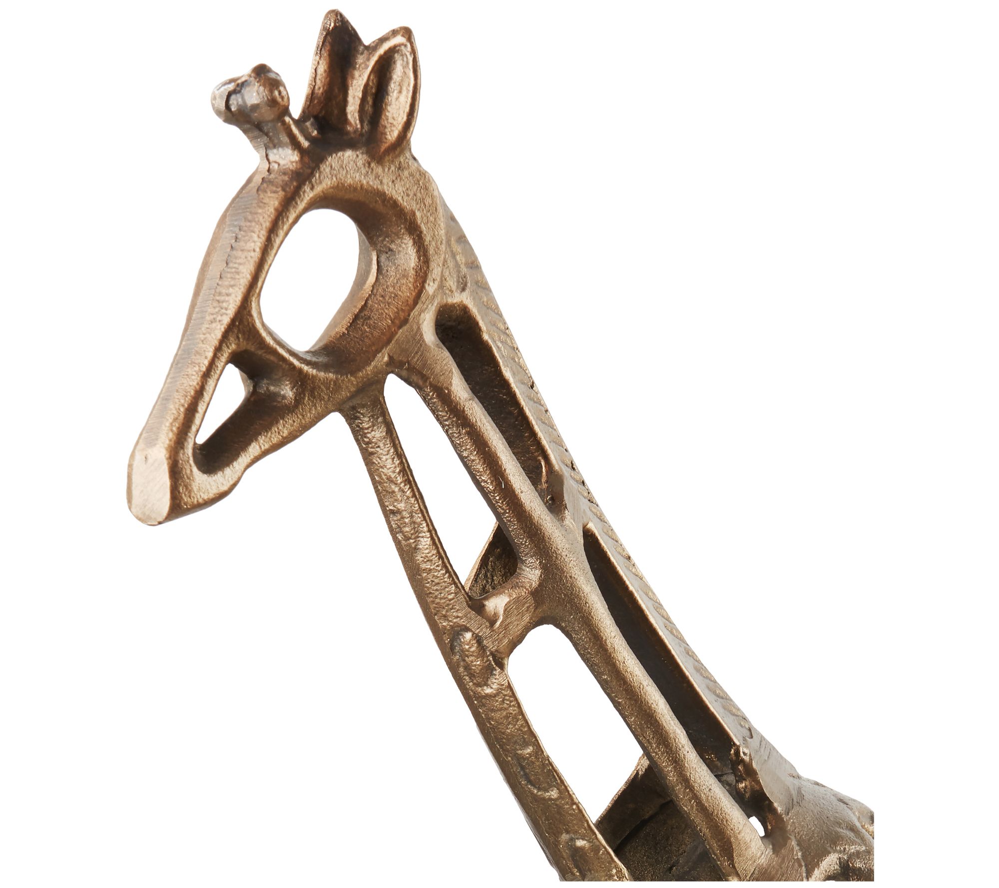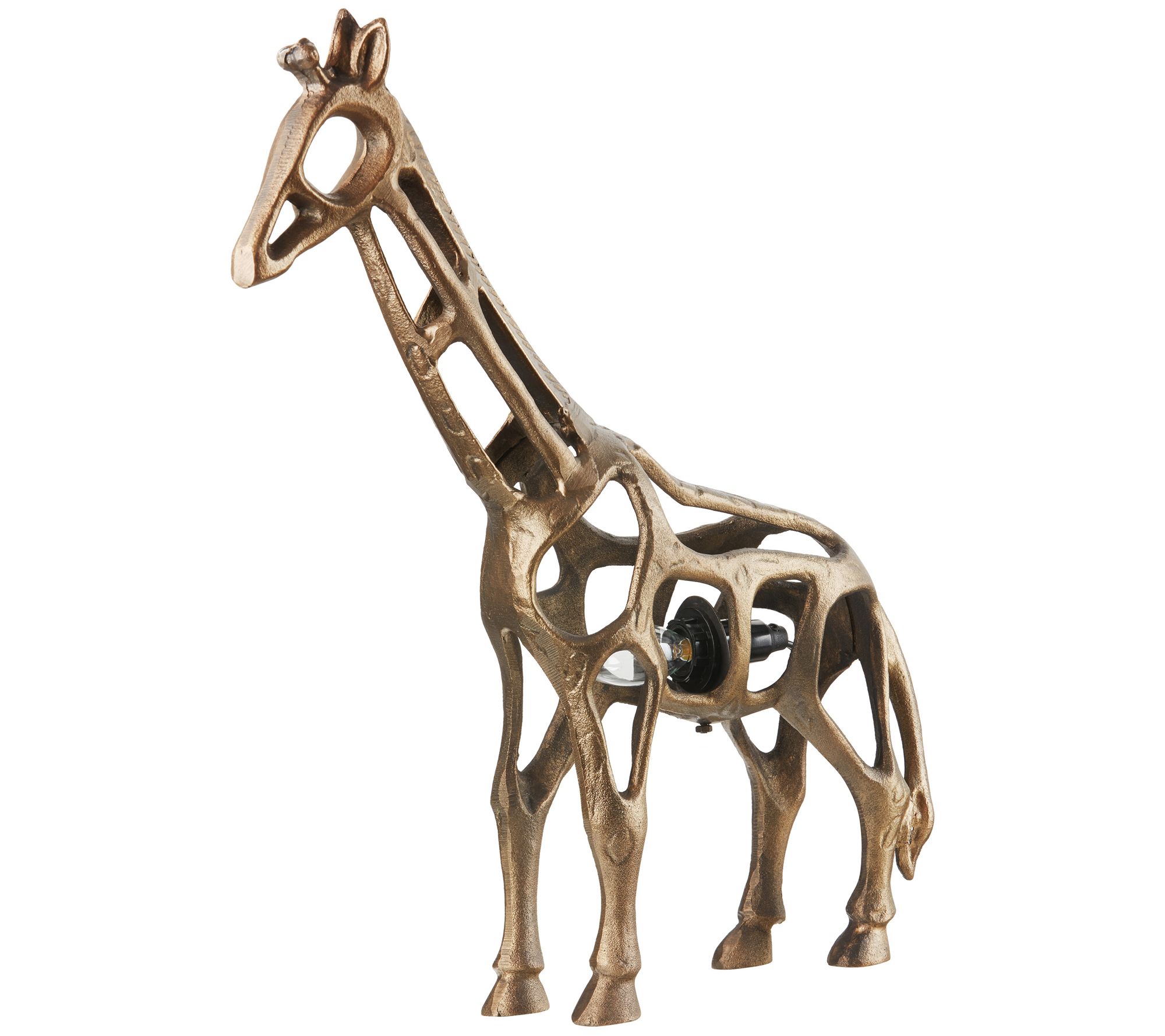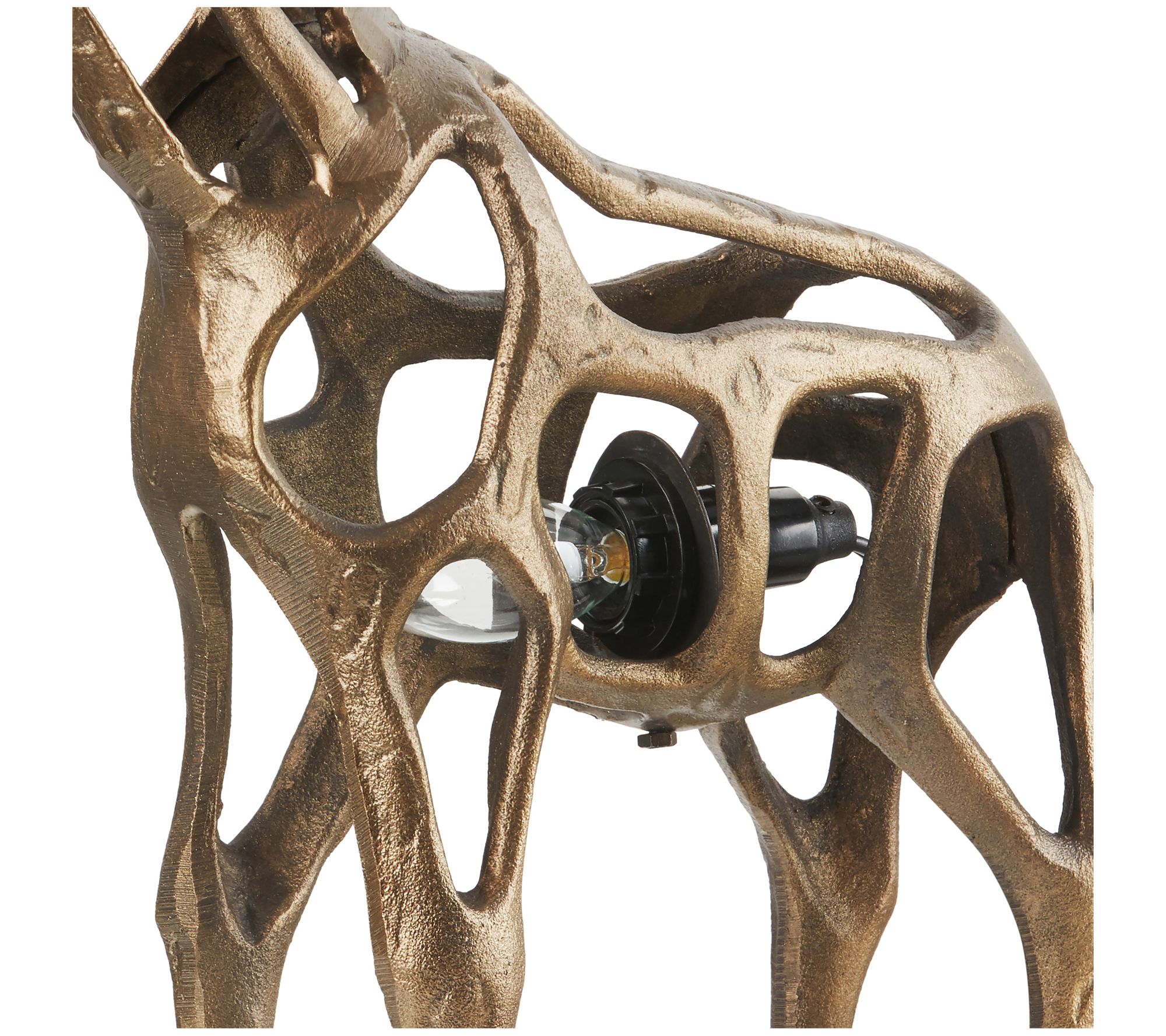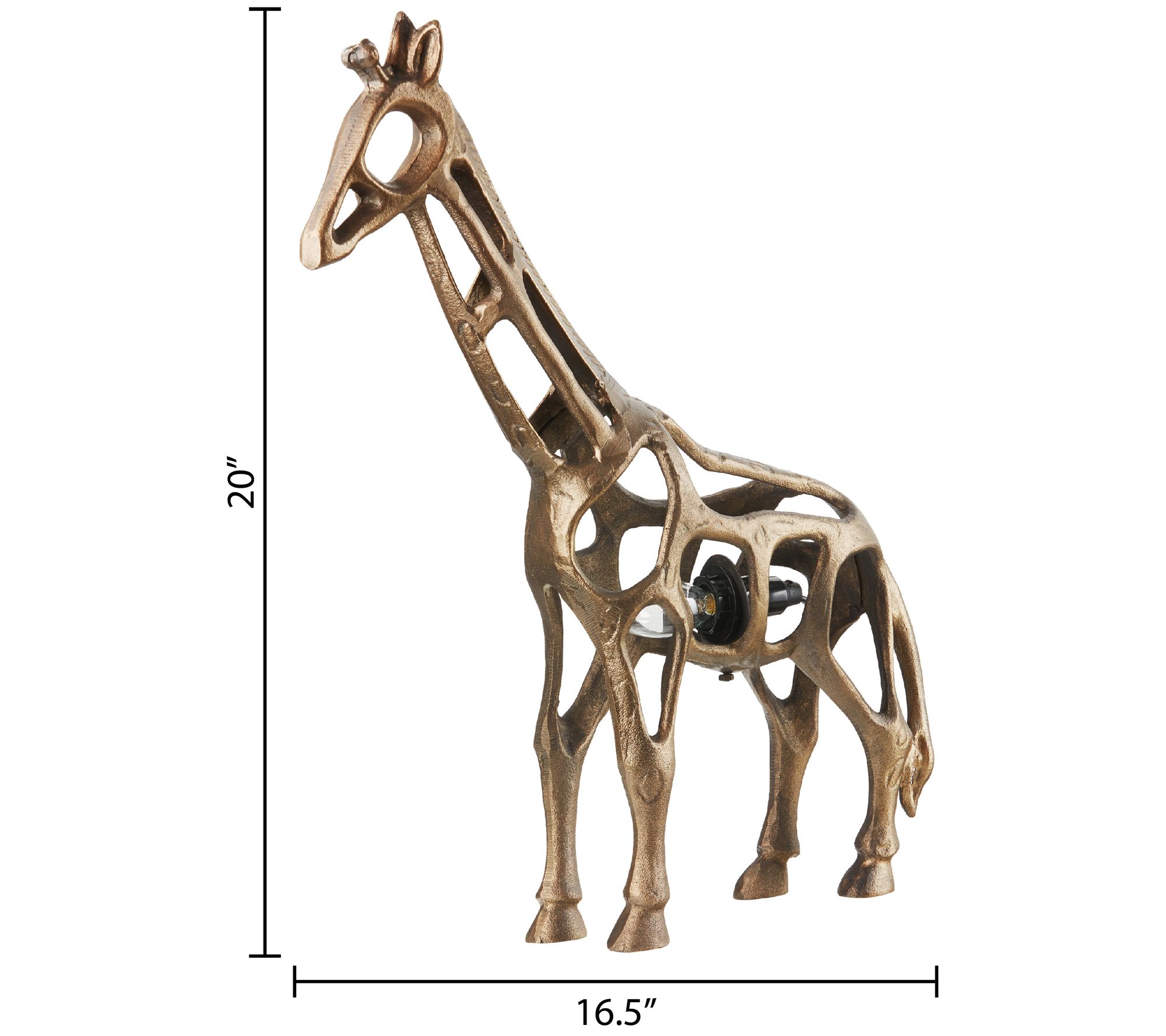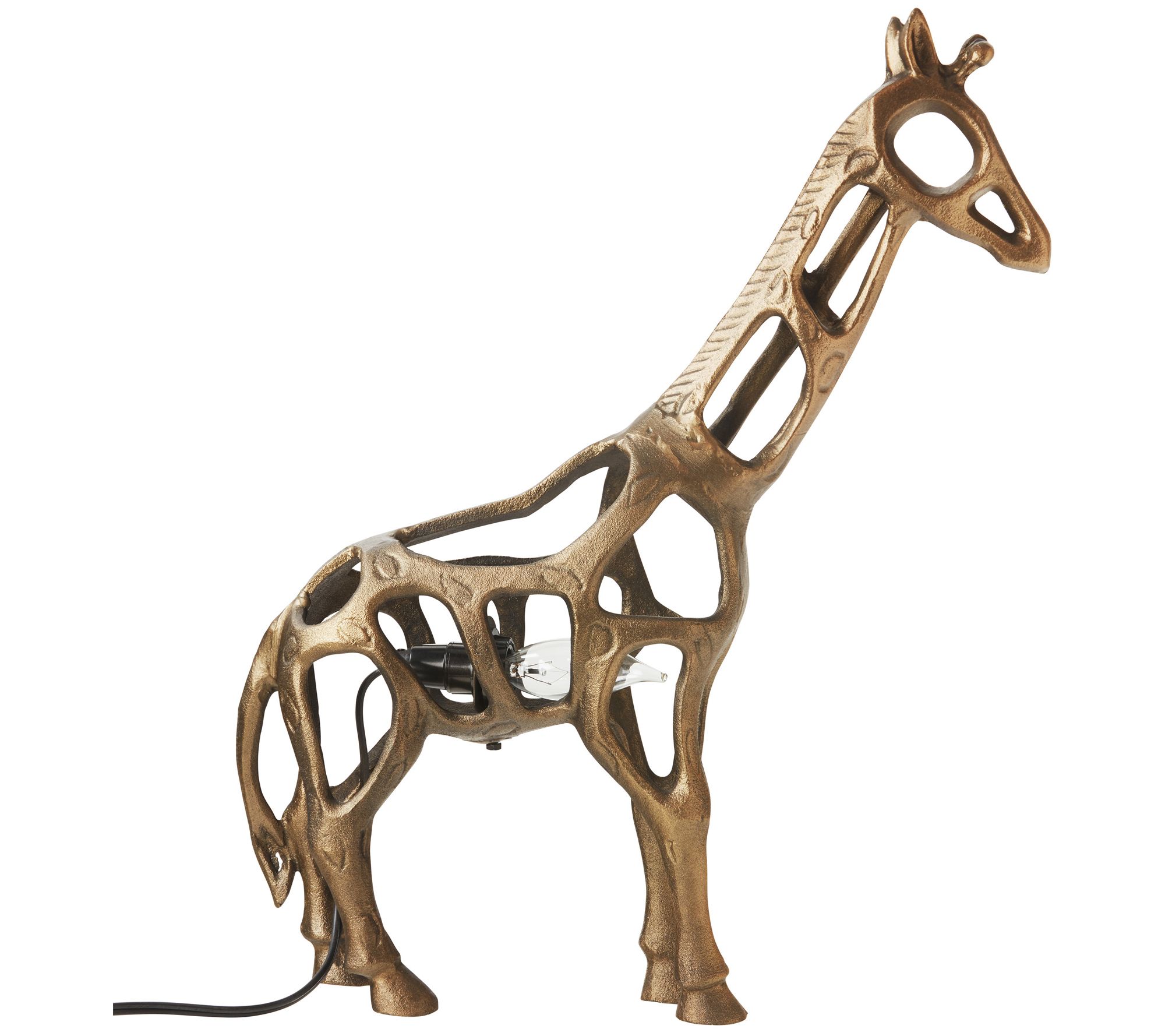 Brighten up your space with the River of Goods gold-finish giraffe accent lamp. This unique piece features a sculptural giraffe design with intricate cutouts that add visual interest and allow light to shine through. Perfect for adding a playful touch to any room. From River of Goods.