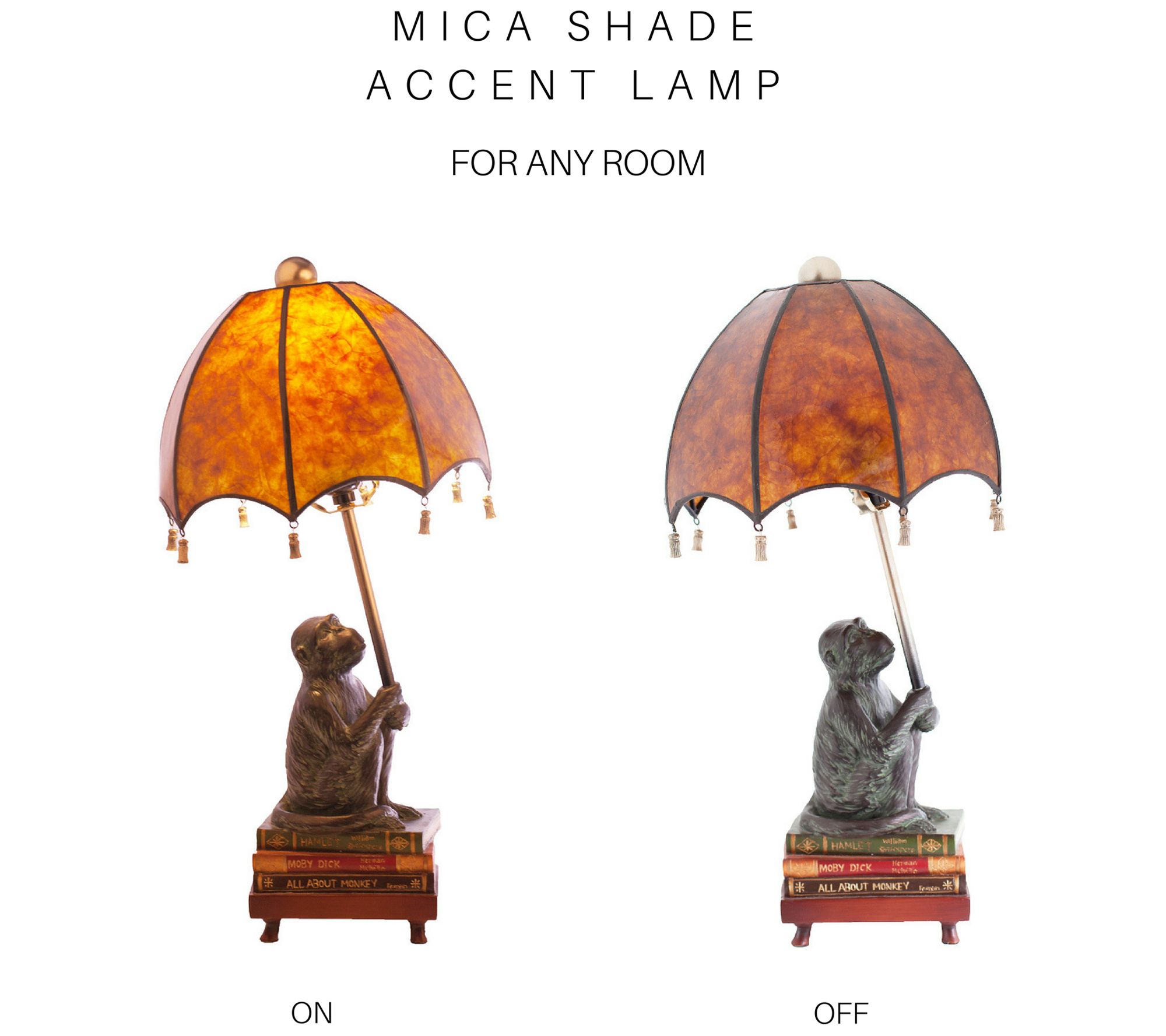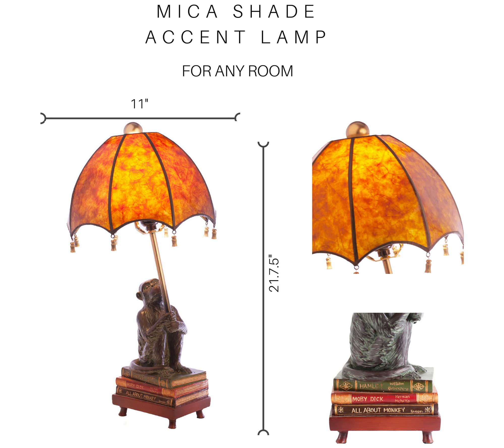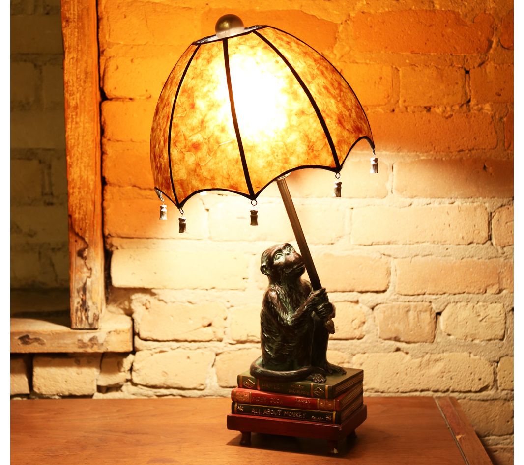 What a conversation-starter. A very erudite creature, this monkey is sitting on well-known works of Shakespeare and Melville, keeping them dry with his Mica umbrella. Shower your home with this whimsical novelty lamp, a perfect accent for a study, home office, or living room. From River of Goods.