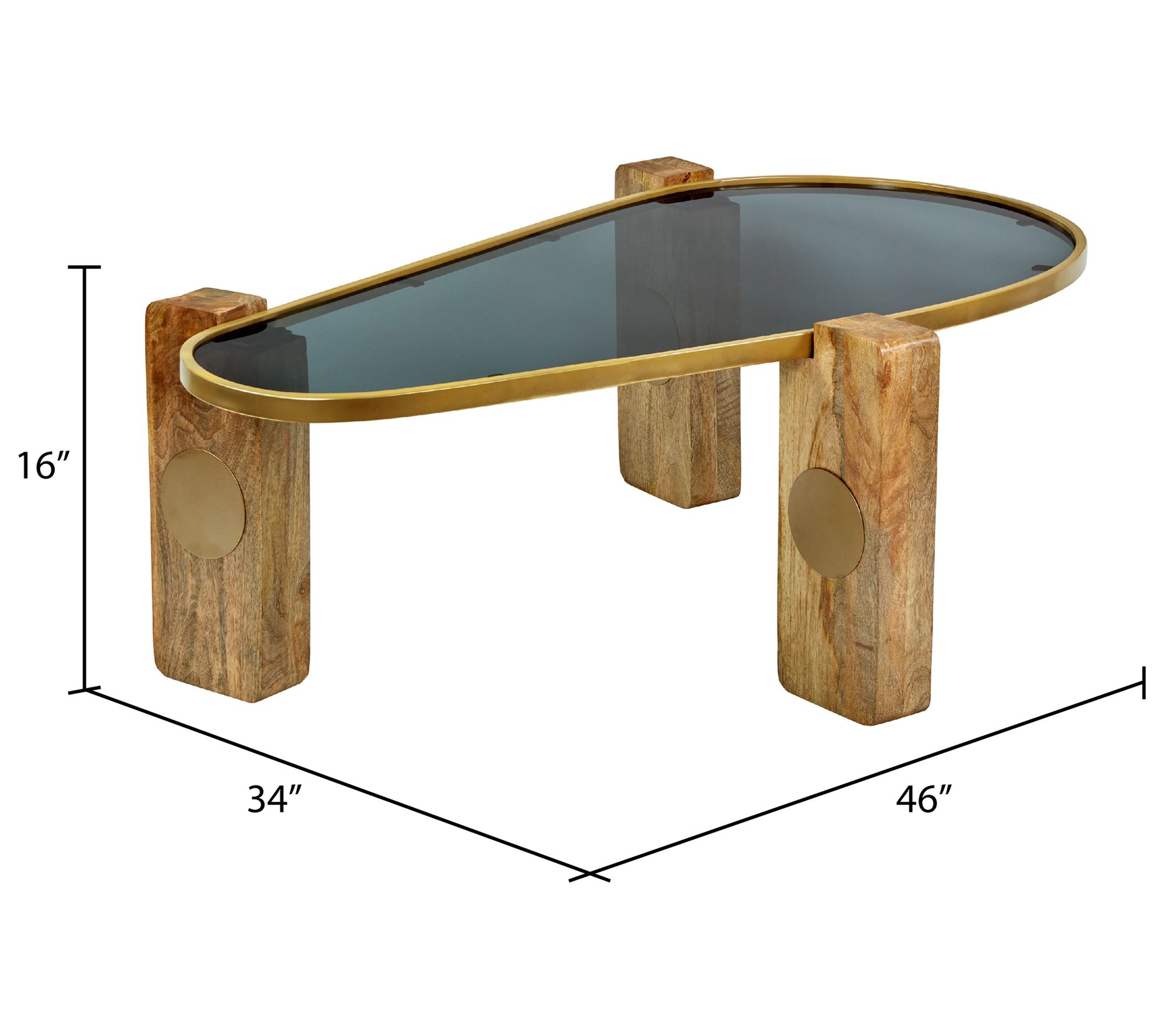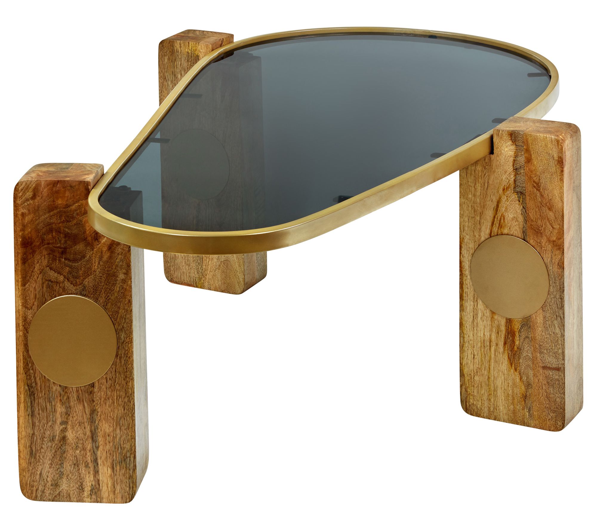 River of Goods 46"L Wood and Glass Kidney-Shaped Coffee Table