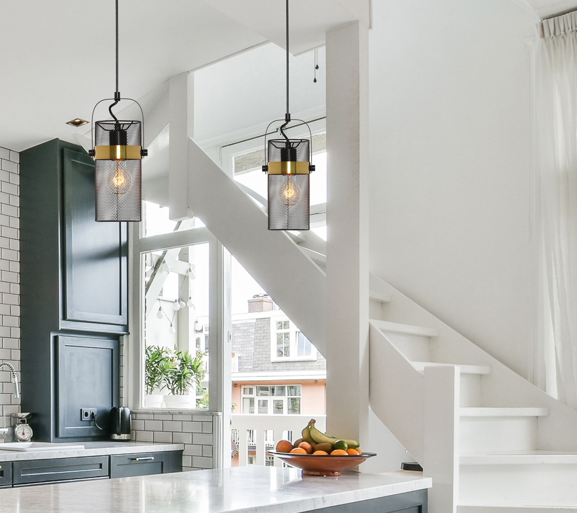 Perfect for your living room, dining room, or entryway, this pendant with a drum-shaped shade offers an industrial look with a little bit of glam. From River of Goods.