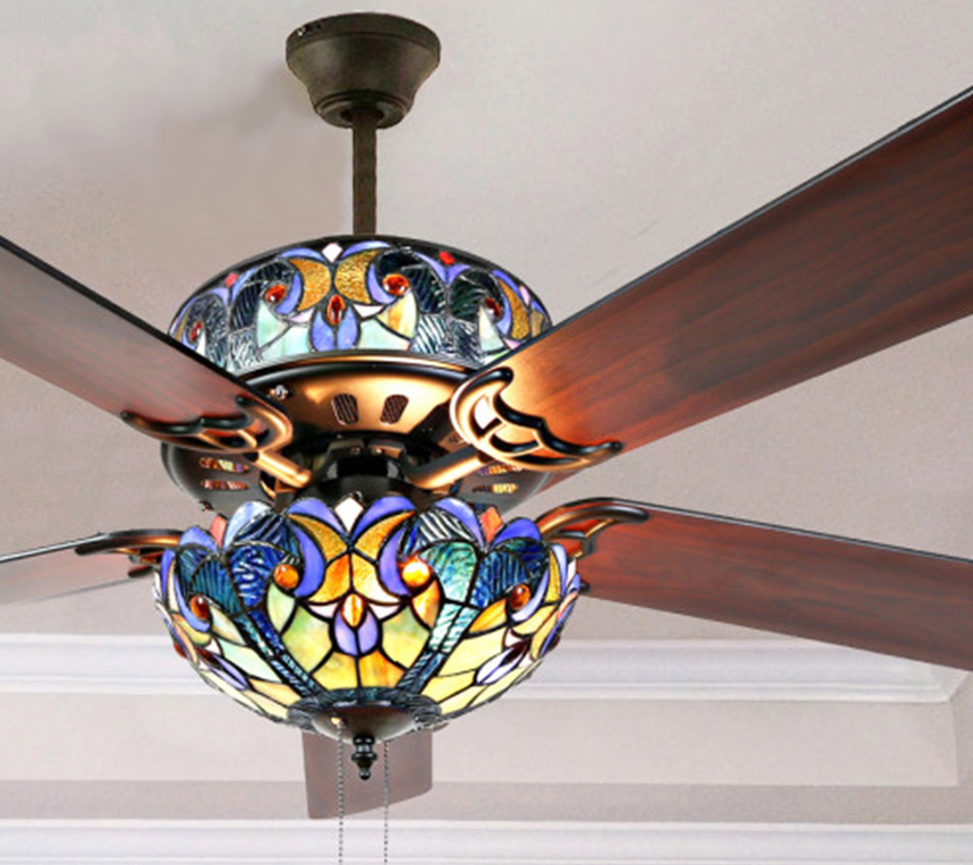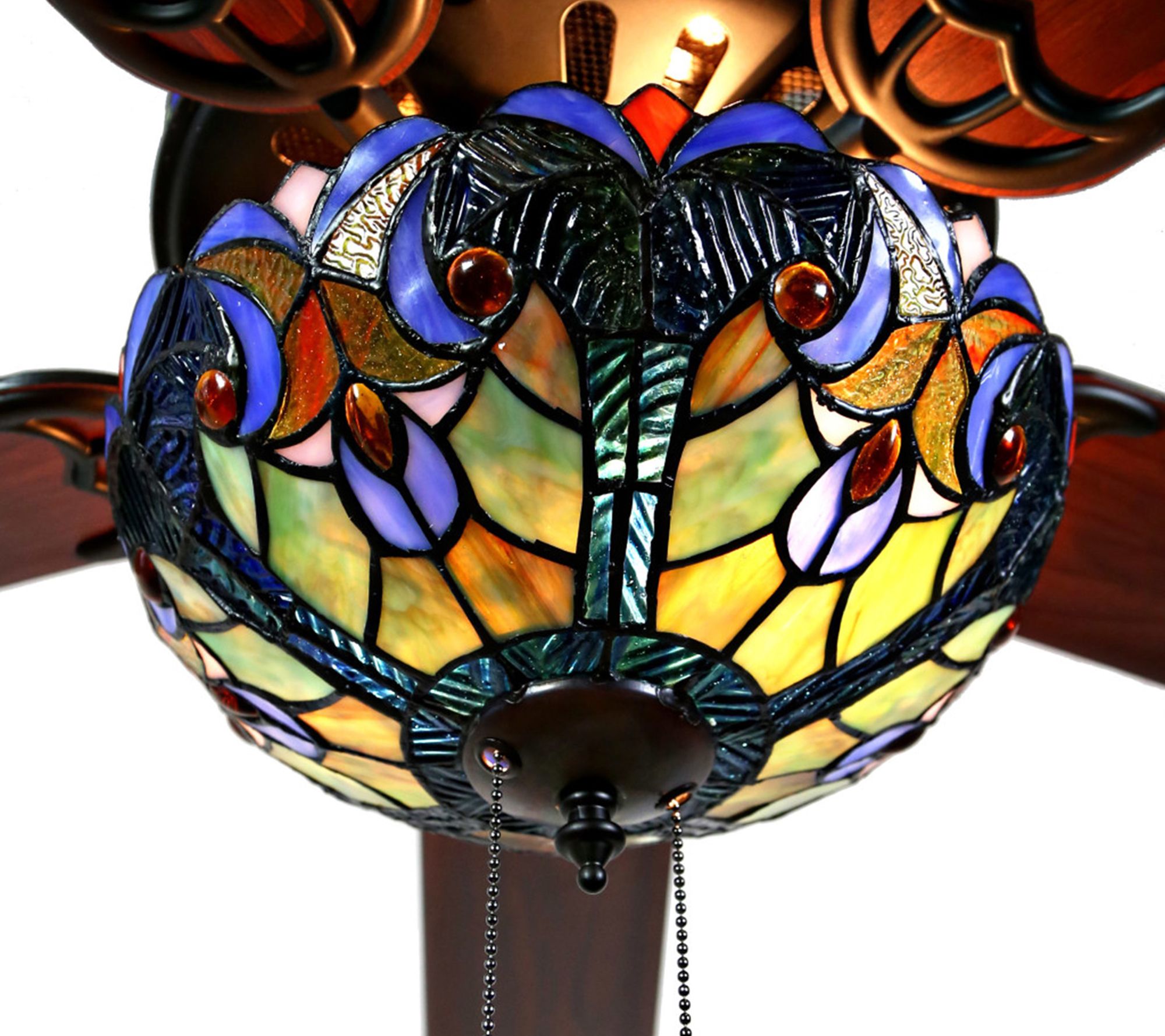 Illuminate your home in style and comfort with this ceiling fan featuring an eye-catching stained glass pattern. From River of Goods.