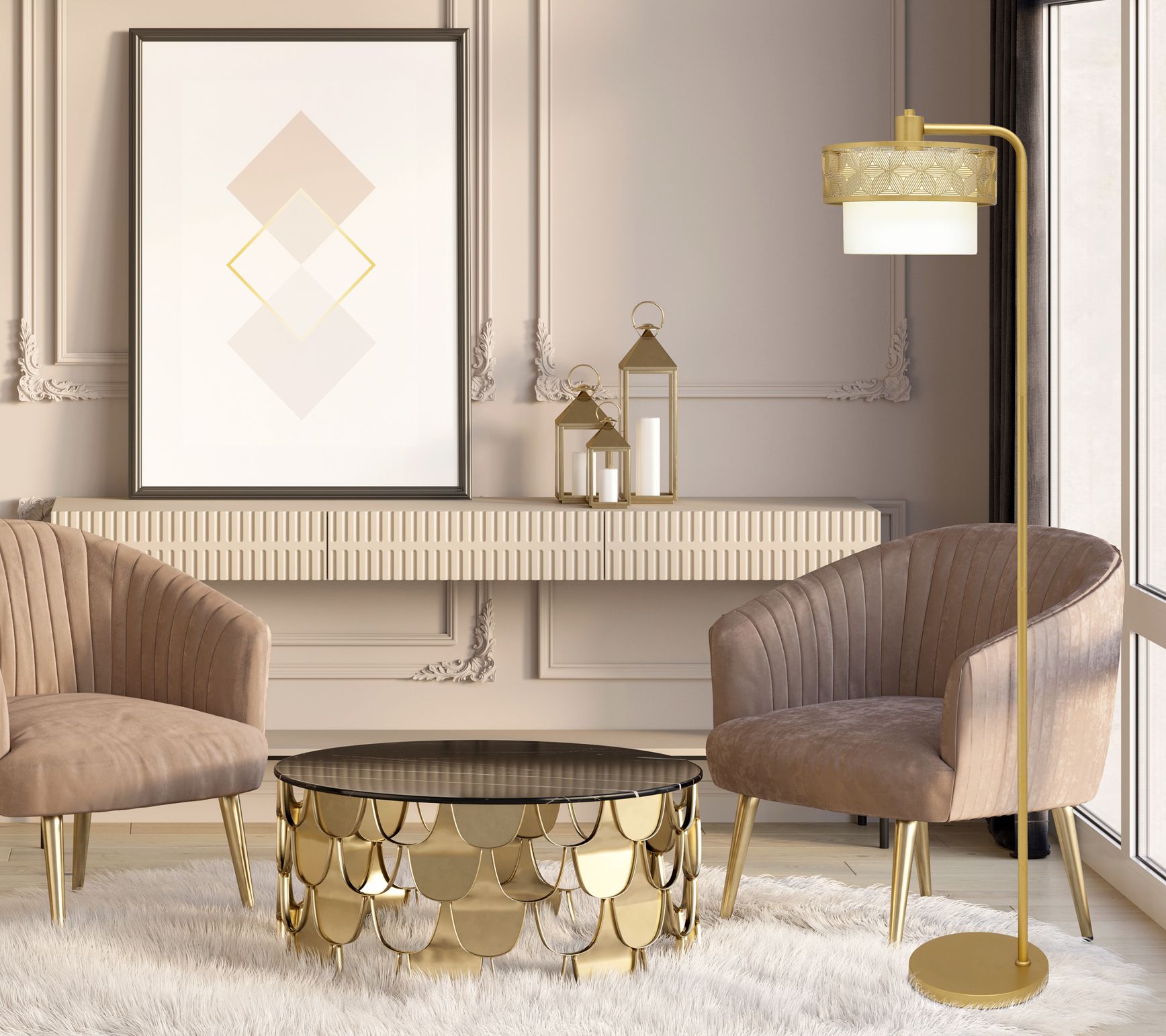 • Includes floor lamp with shade