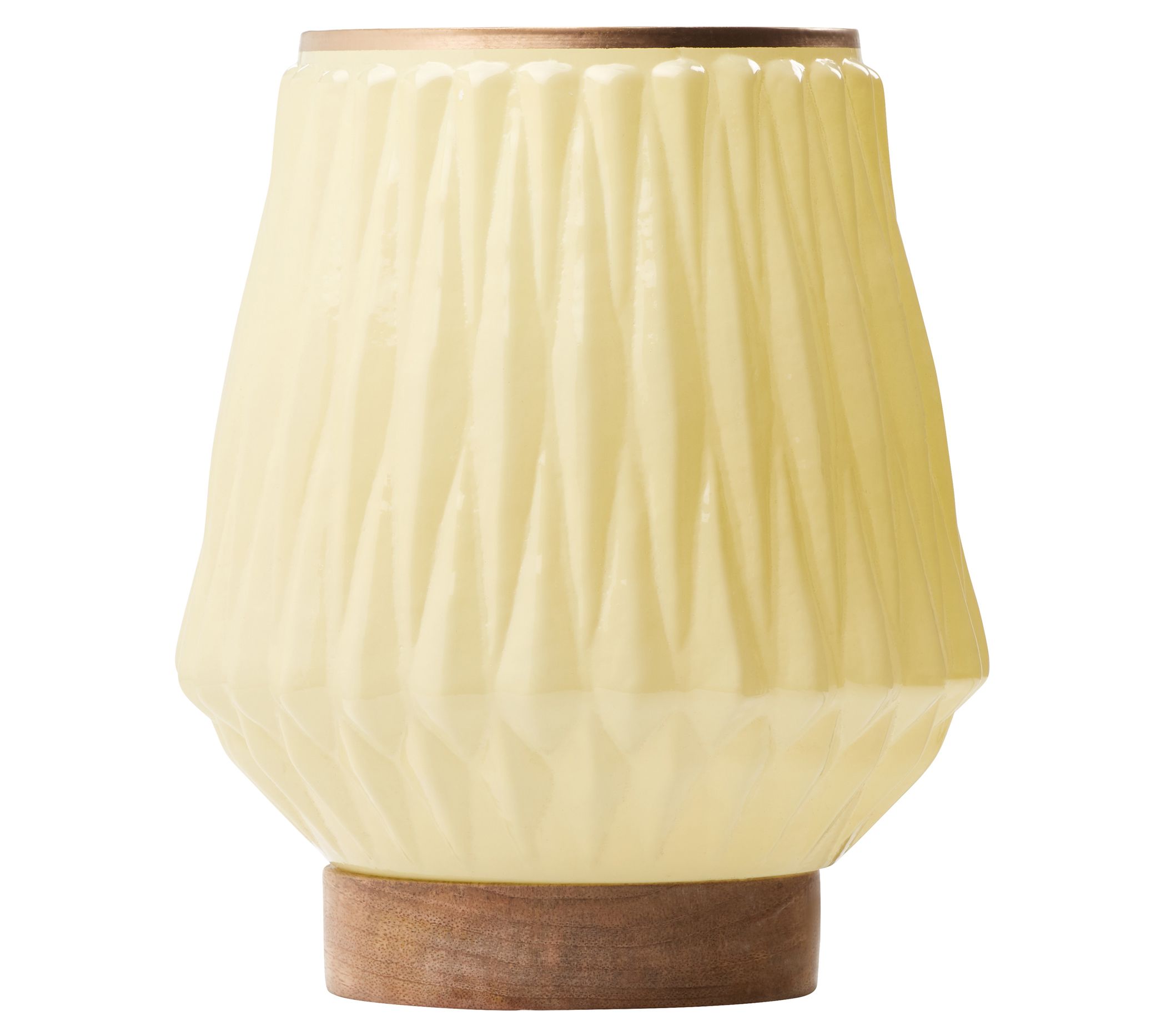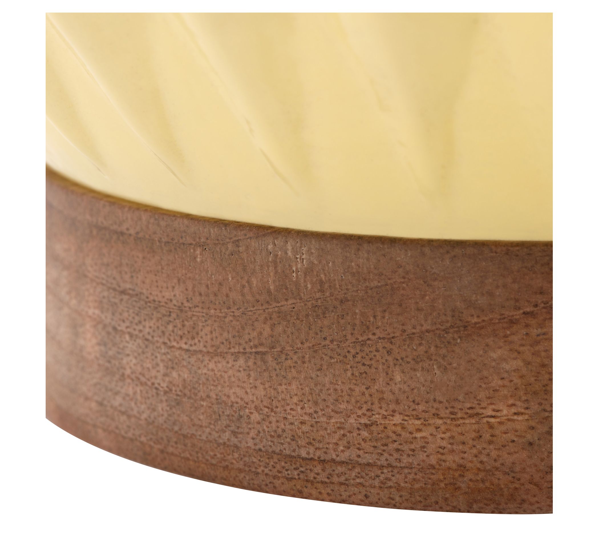 • Yellow gold tinted glass trapezoid shade with block-shaped base made of mango wood