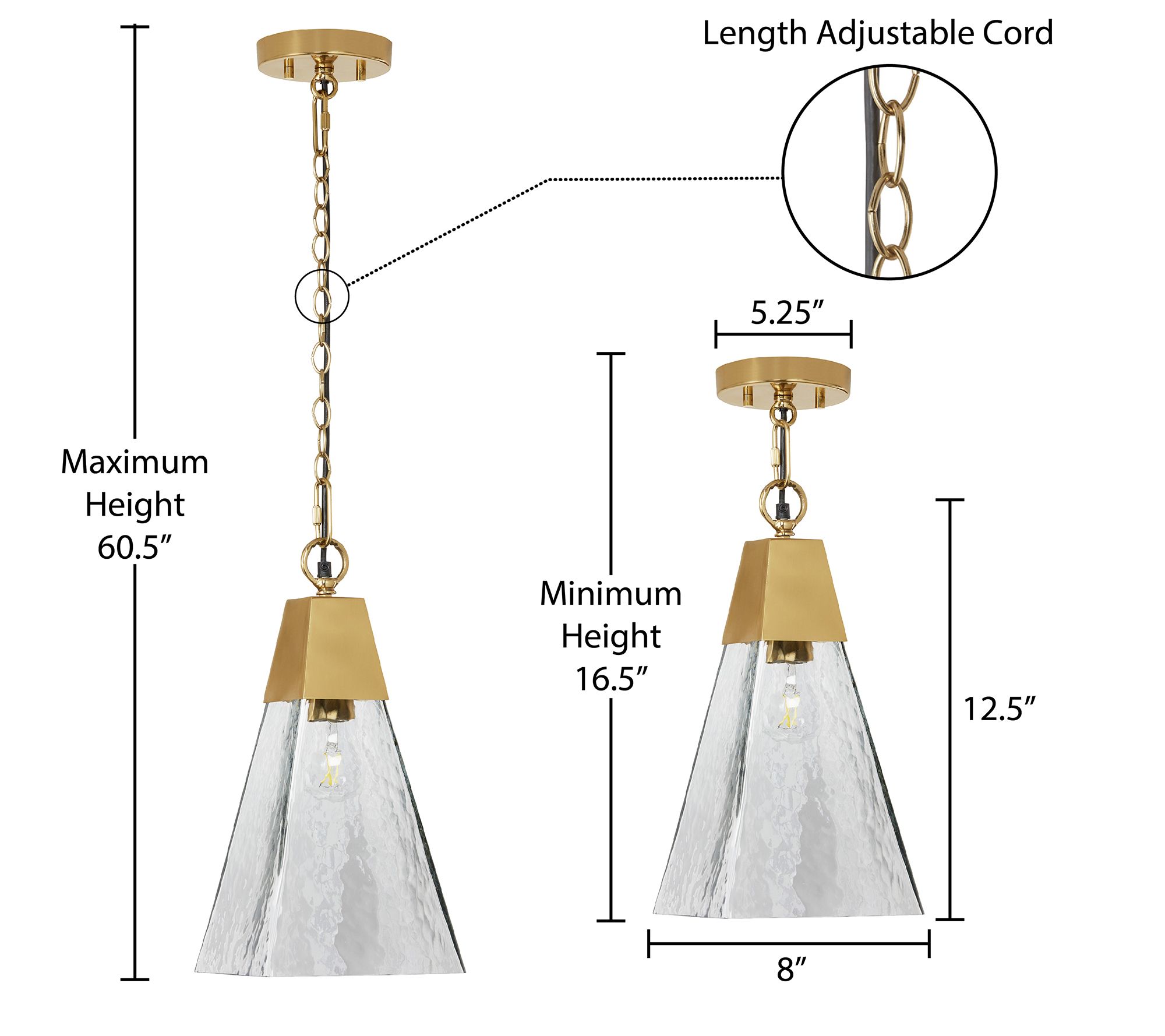 • Measures approximately 8"L x 8"W x 16.5"H to 60.5"H