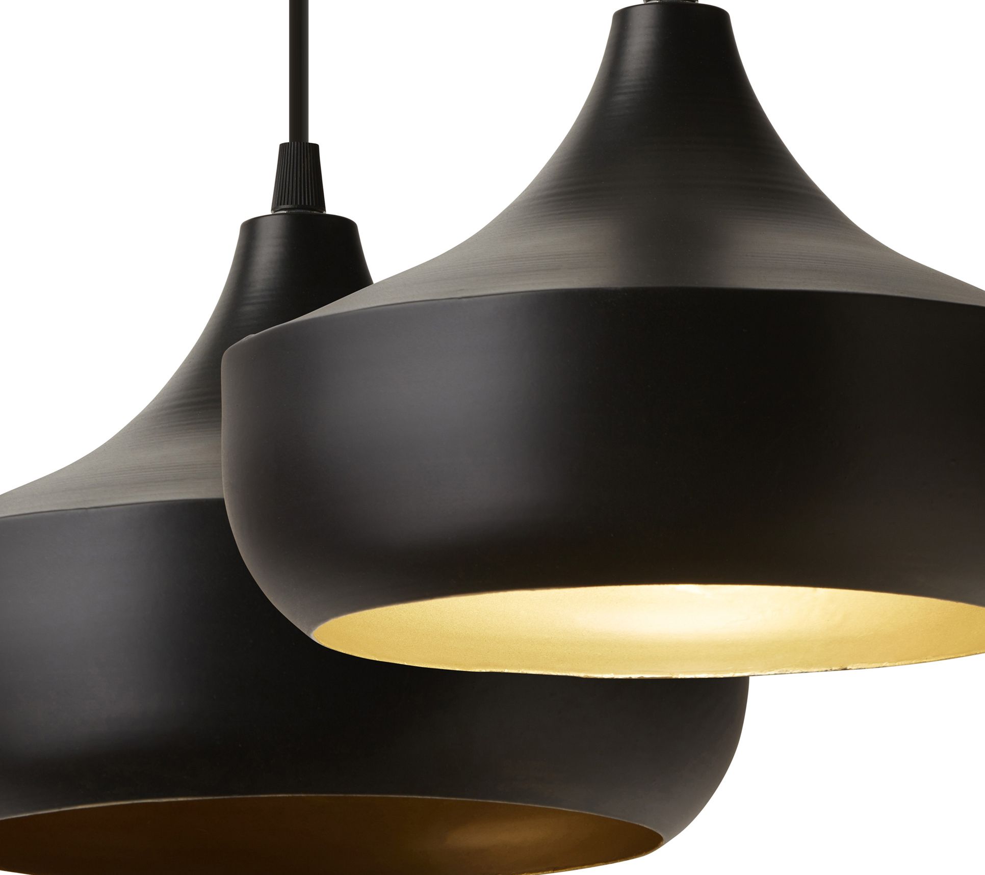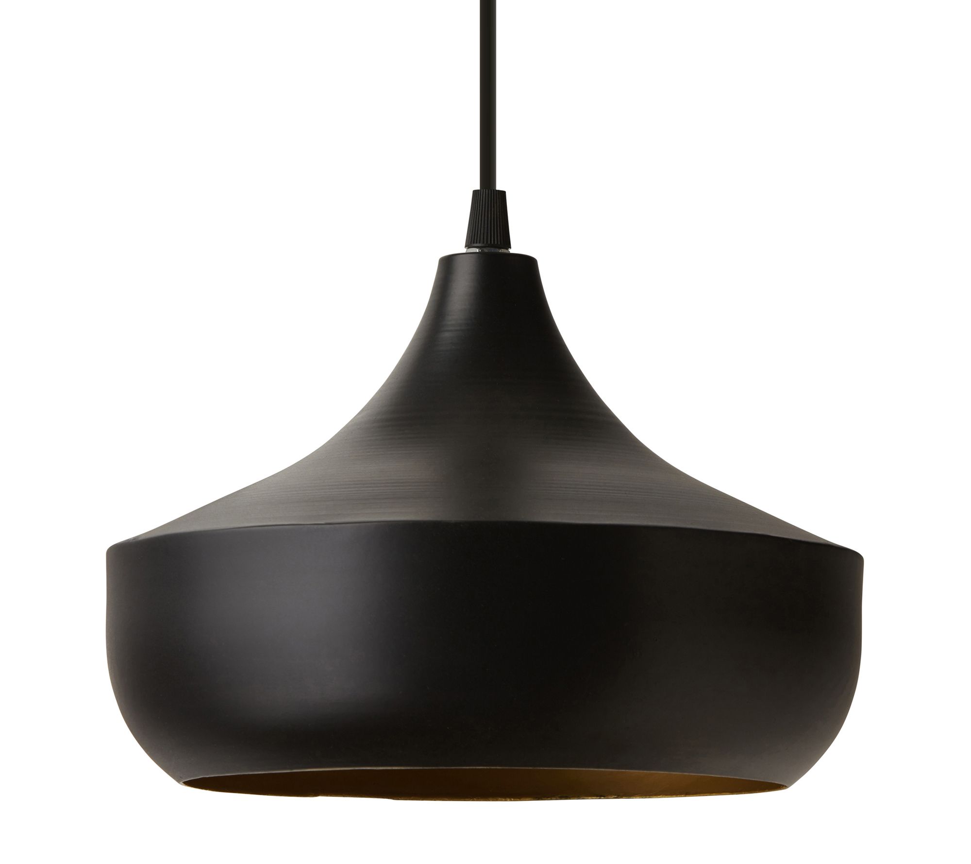 • Metal dome shade with black exterior and goldtone interior