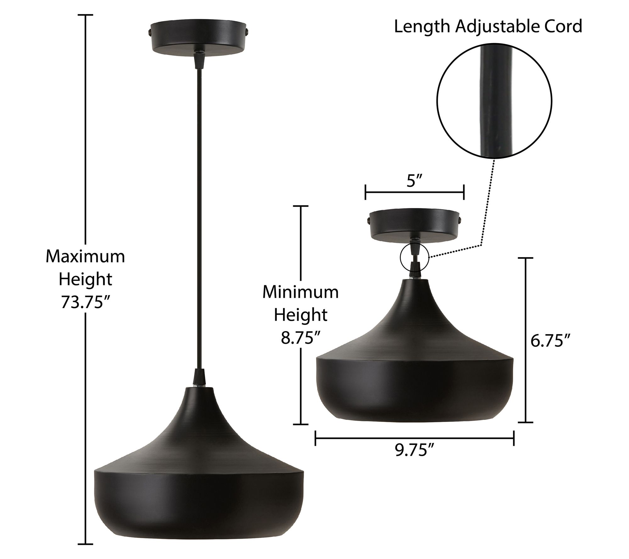 • Measures approximately 9.75"Diam x 8.75"H to 73.75"H; Cord 65"L
