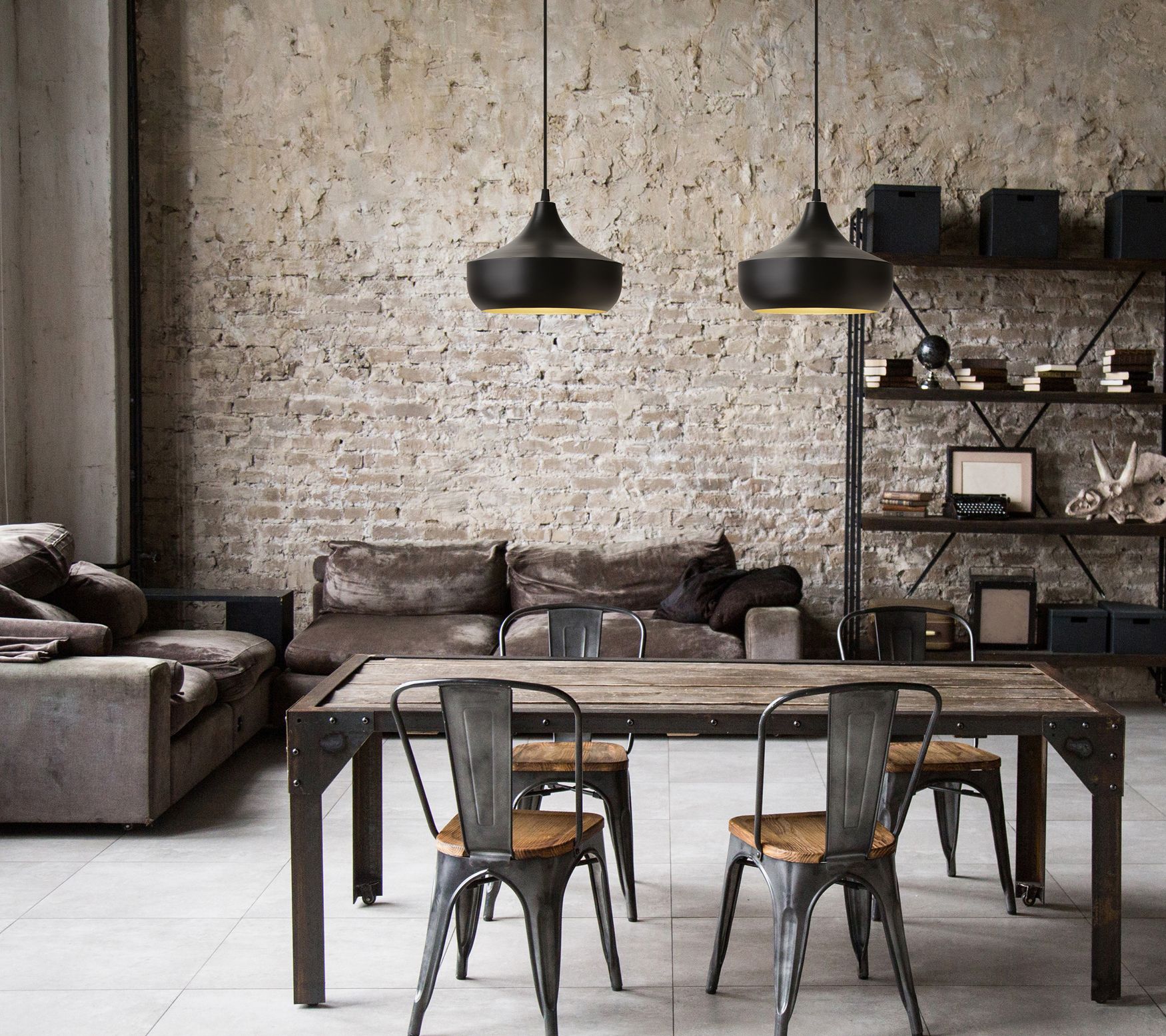 A natural fit for industrial-inspired spaces and contemporary room decor, this metal dome shade pendant light exudes a modern look for mounting over kitchen islands, dining tables, or cozy family rooms. From River of Goods.