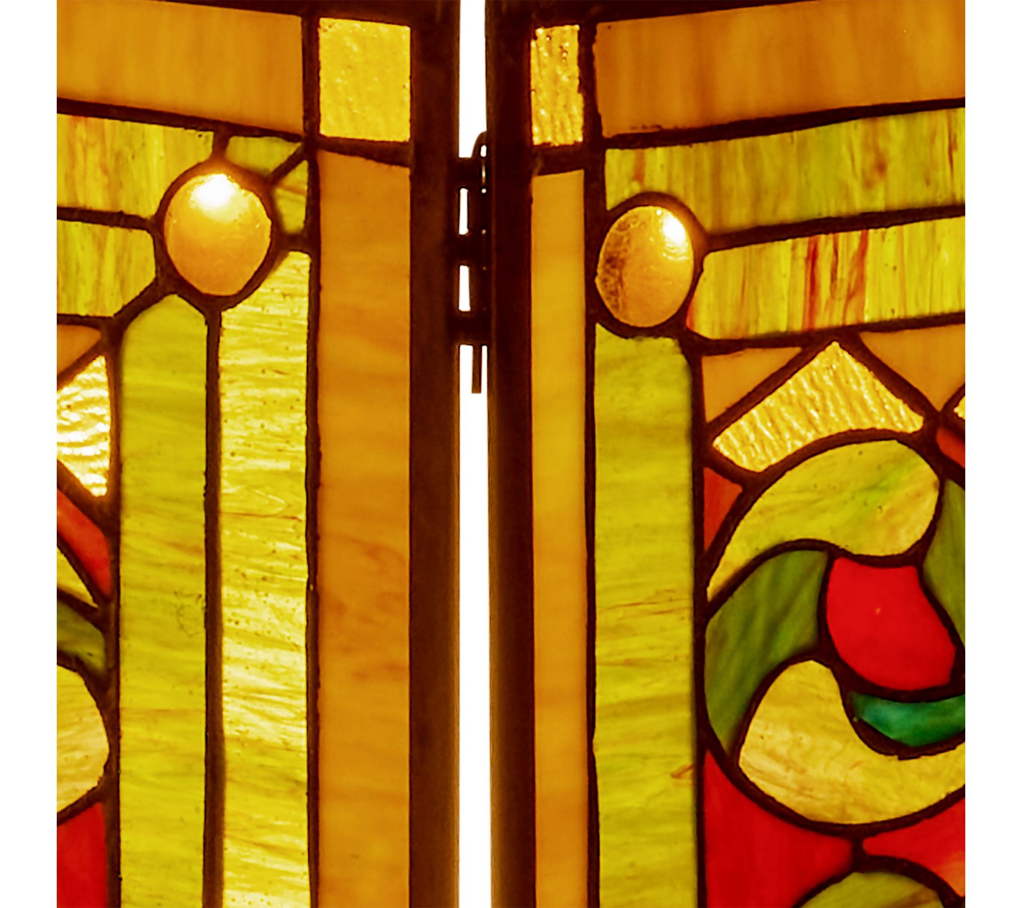• Crafted from multi-finish Tiffany-style stained glass with 62 cabochon embellishments