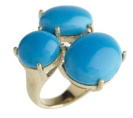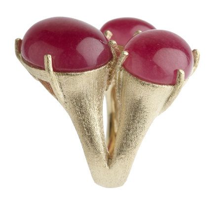 A cluster of gemstones perches atop this bold, brushed goldtone ring, imparting incredible color and shine. The round and oval gemstone cabochons are set in a prong-style setting for added presence. From Rivka Friedman 18K Gold-Clad Jewelry.
