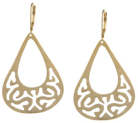 Frame your ear-to-ear smile with these sensational dangle earrings. The large, openwork teardrop is accentuated by unique filigree cutouts along the bottom. Little does everyone know, they're the reason for your big grin. From Rivka Friedman 18K Gold-Clad Jewelry.