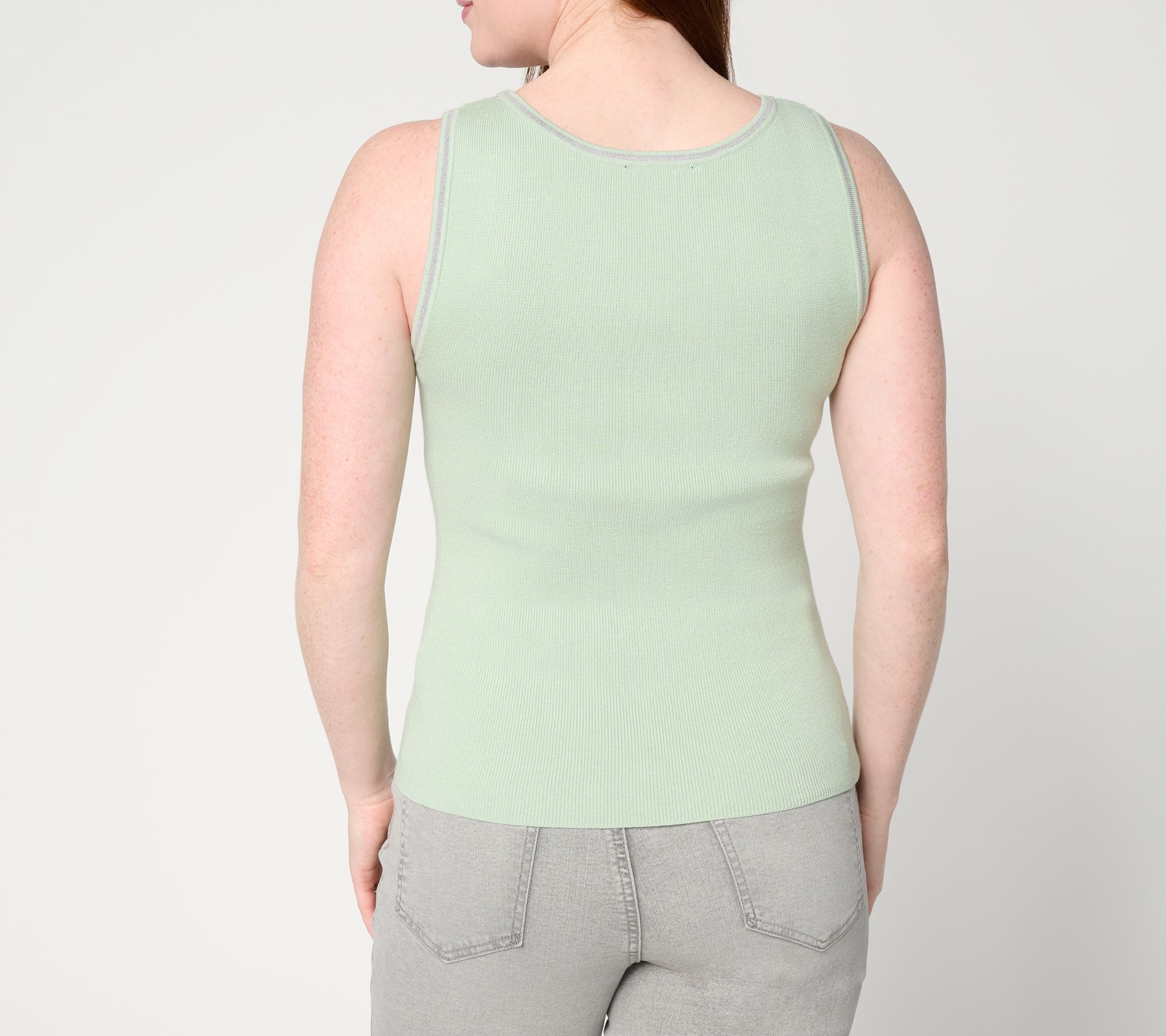 Sleek, modern style takes center stage with this fitted tank top, combining a compact knit feel with statement contrast trim for a fresh layer that works as well solo as it does under a blazer. Designed for days at the office or nights out, its luxe construction and scoop neckline keep your look confident and refined. From RM Studio x Rebecca Minkoff.