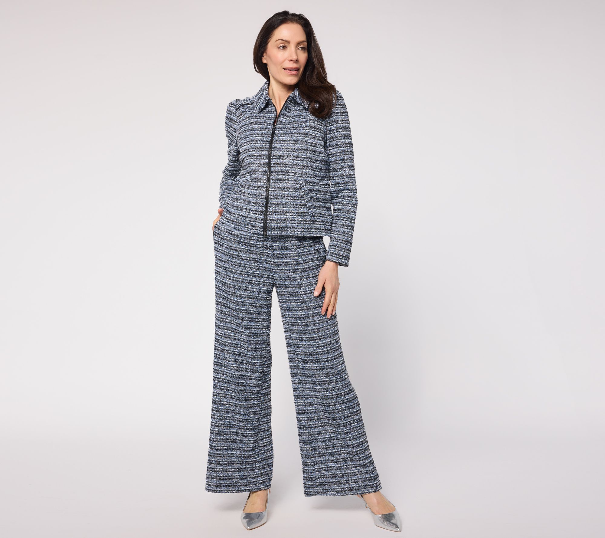 Elevate your fashion temperature with this tweed zip-front jacket. Throw it on with a crisp tee and wide-leg jeans for catching up with friends downtown or pair with a silk blouse and tailored trousers and head into the office. It's an easy layer for polished versatility that works for any-day-of-the-week looks. From RM Studio x Rebecca Minkoff.