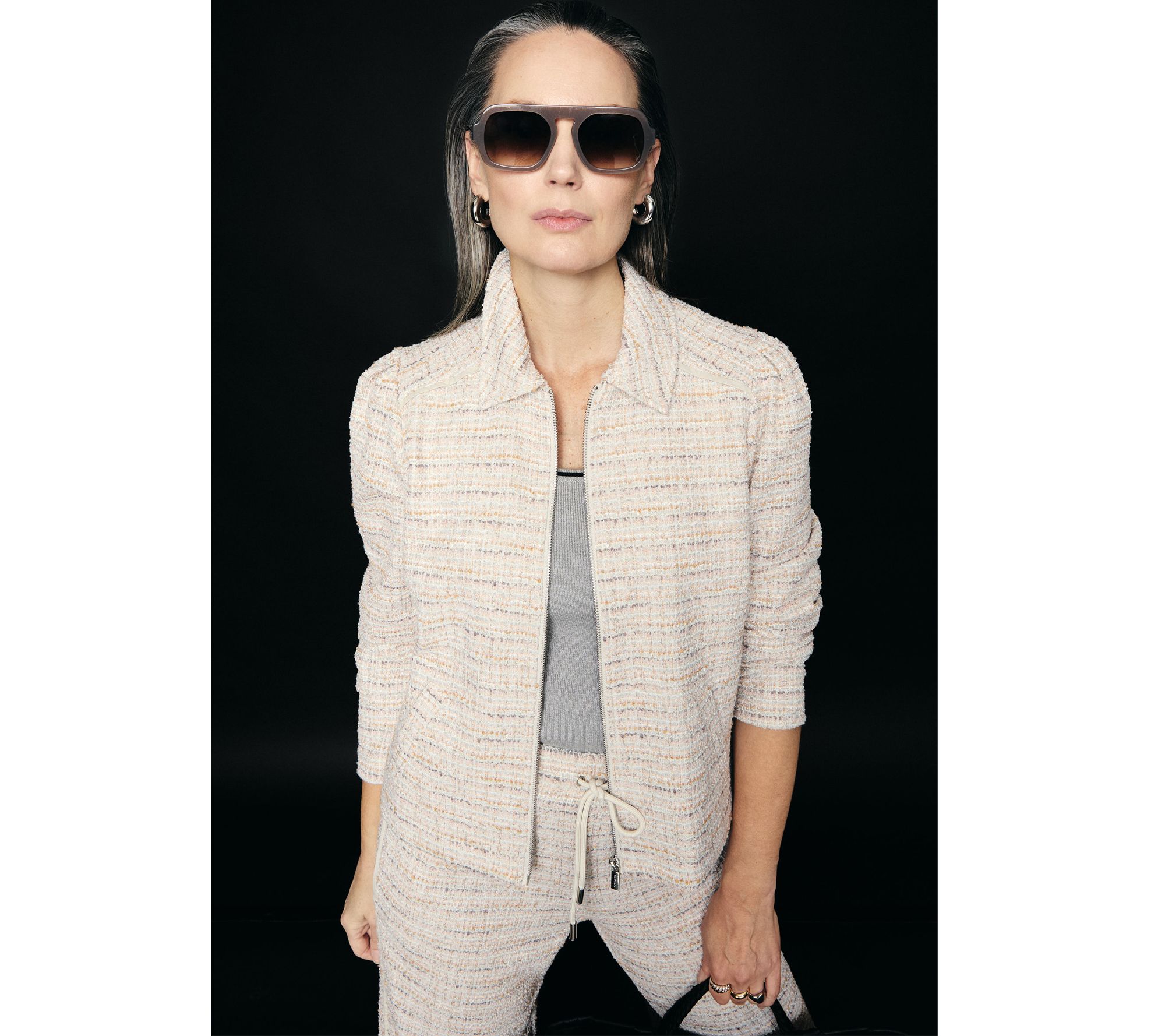 RM Studio x Rebecca Minkoff Knit Tweed Zip Front Jacket