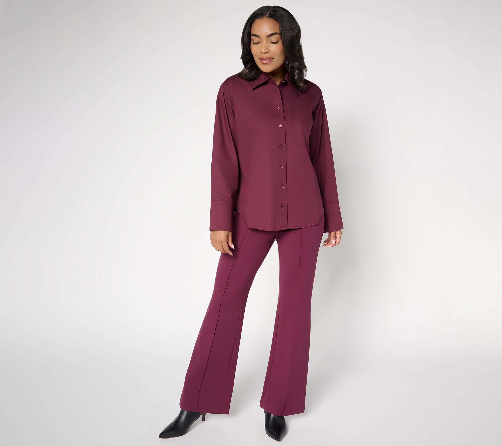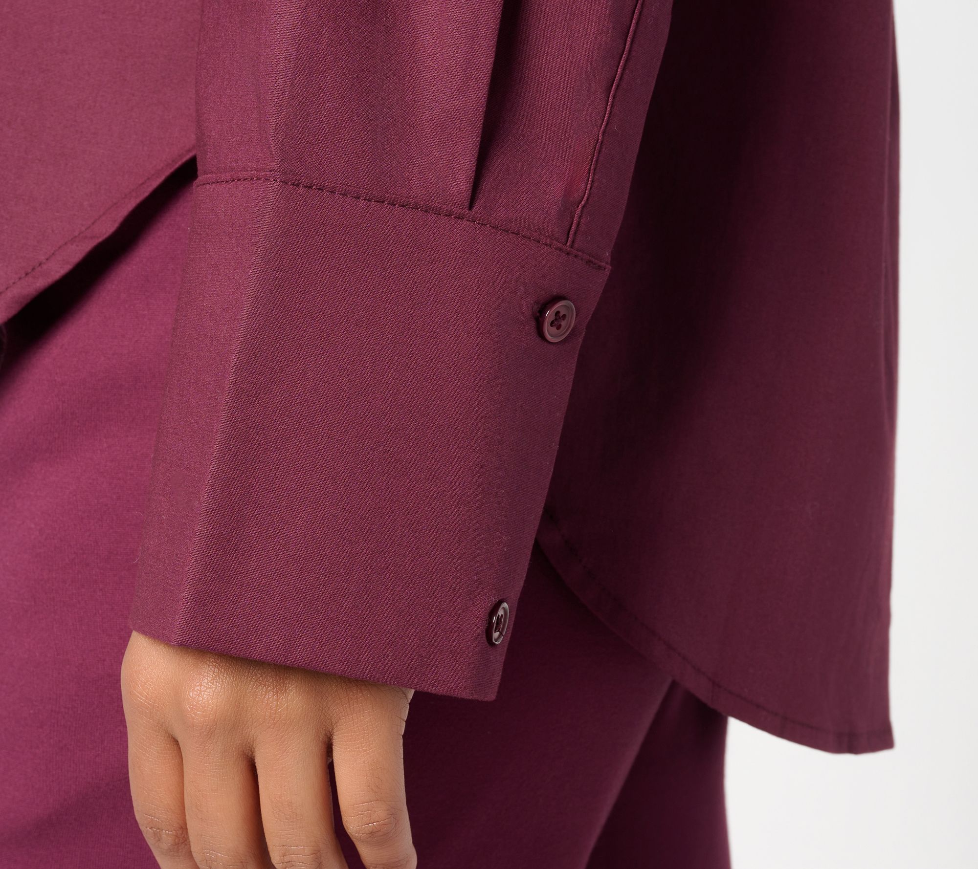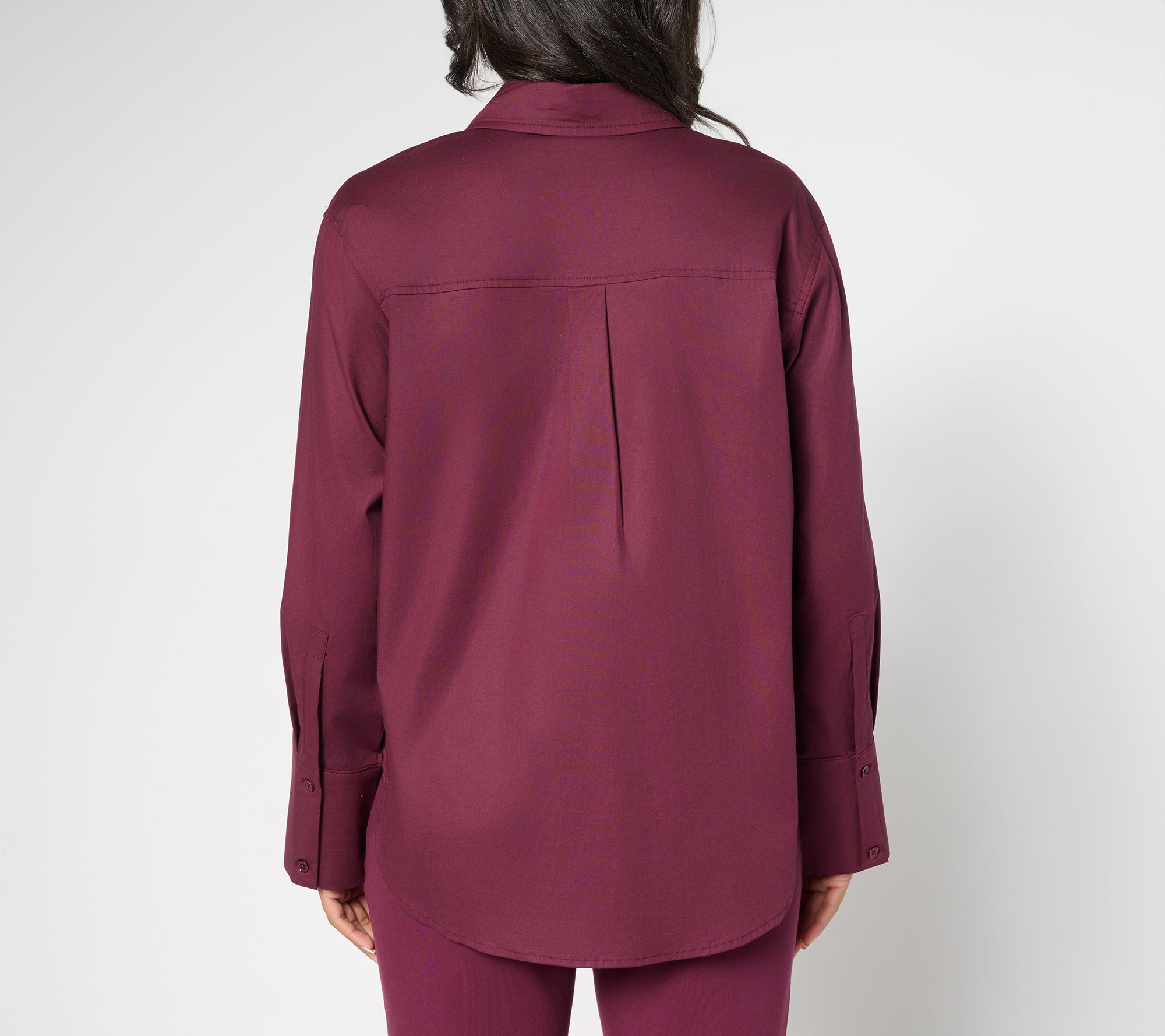 There's just something about a crisp poplin shirt that says you're poised and prepped for whatever pops up. The wide sleeve cuff brings a modern perspective to this classic button-down while the relaxed fit leaves options for tucking or untucking. Wear it solo for virtual meetings or pair with a blazer for smart in-office appearances. Got some downtime? Pair it with jeans and leather moto jacket and head downtown. From RM Studio x Rebecca Minkoff.