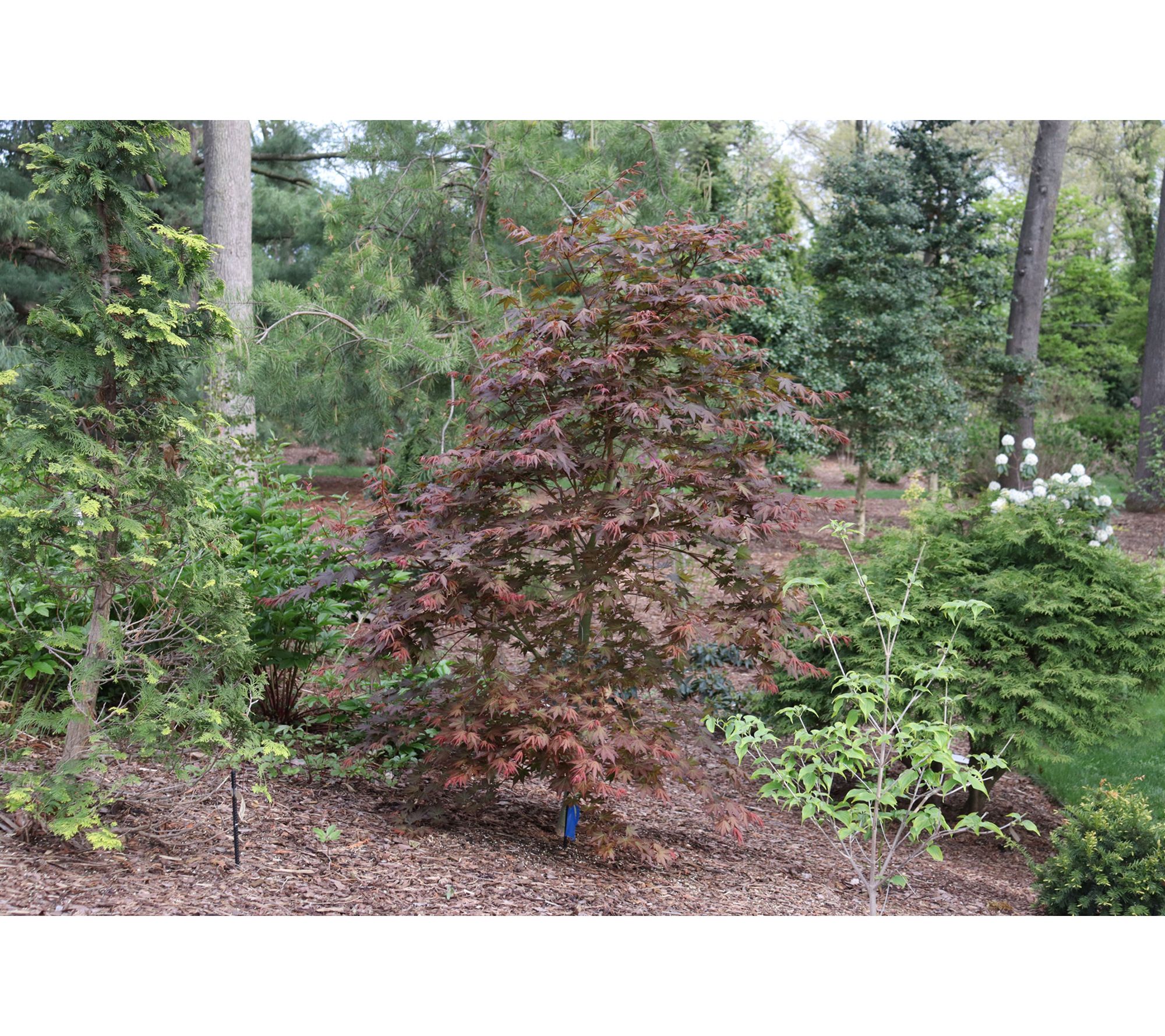 Bring vibrant dimension to your garden with the Dwarf Hot Chana Red Japanese Maple tree, renowned for its ever-changing foliage that transitions from bold red in spring to a captivating medley of summer hues, culminating in brilliant scarlet come fall. Easy to manage, this upright tree fits beautifully as a landscape centerpiece, container accent, or border highlight. From Roberta's.
