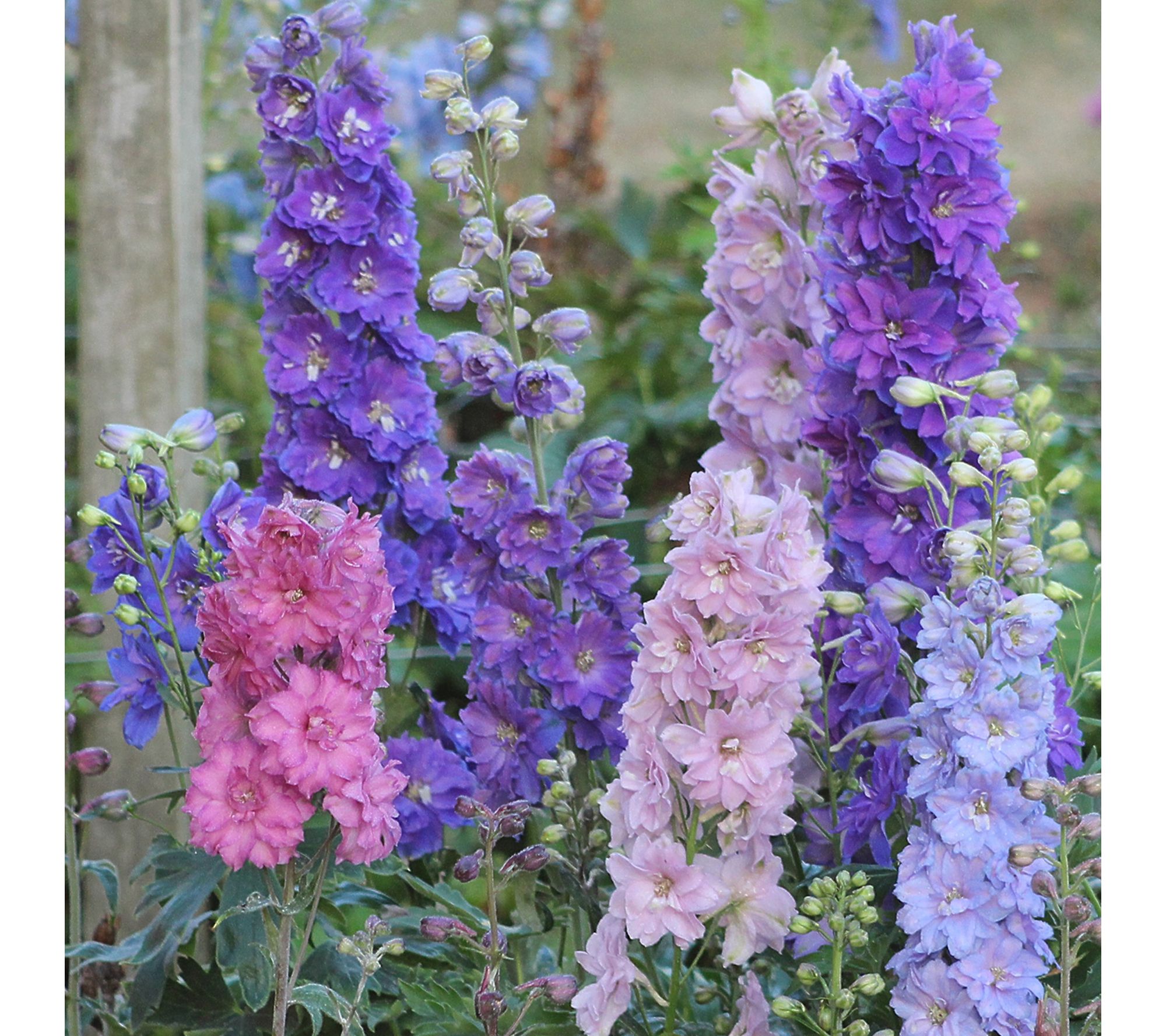 Brighten up even the coziest corners of your garden with this Mini Stars New Zealand Delphinium Mix. Cheerful, upright spikes burst with color throughout summer and fall, showcasing a blend of blue, mauve, pink, lilac, and creamy white blooms -- all on compact stems that rarely need staking. Perfect for adding vibrant height and focal interest to beds, borders, and bouquets. From Roberta's.