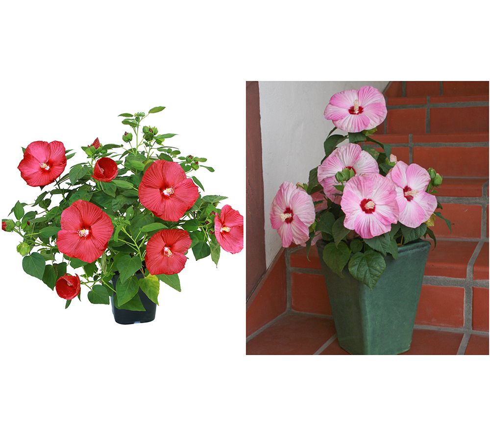 Turn your backyard into a lush retreat with this 2-in-1 Luna Series hardy hibiscus plant, known for bold summertime blooms. Two stunning flower colors -- deep red and swirl -- appear on one plant, attracting pollinators and adding eye-catching drama to borders or containers. From Roberta's.