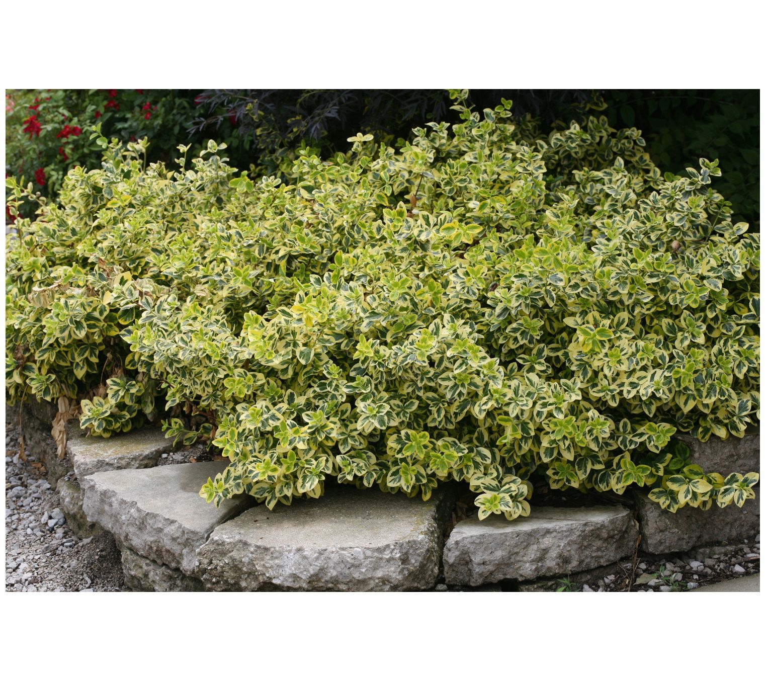 Beautify your outdoor spaces with this colorful Gold Splash Wintercreeper that you can grow in containers, in your rock garden or use as groundcover in your landscaping. This versatile evergreen shrub has many uses and spectacular variegation too. From Roberta's.