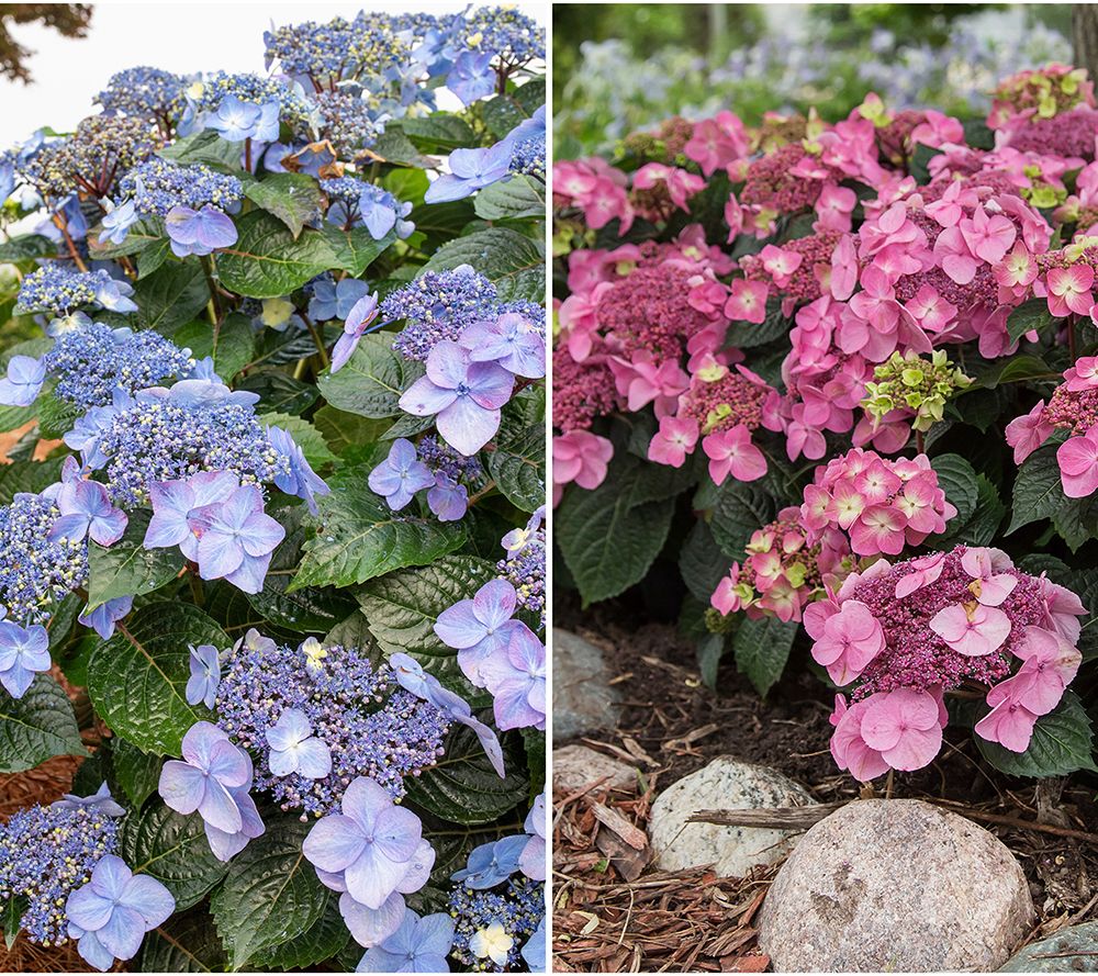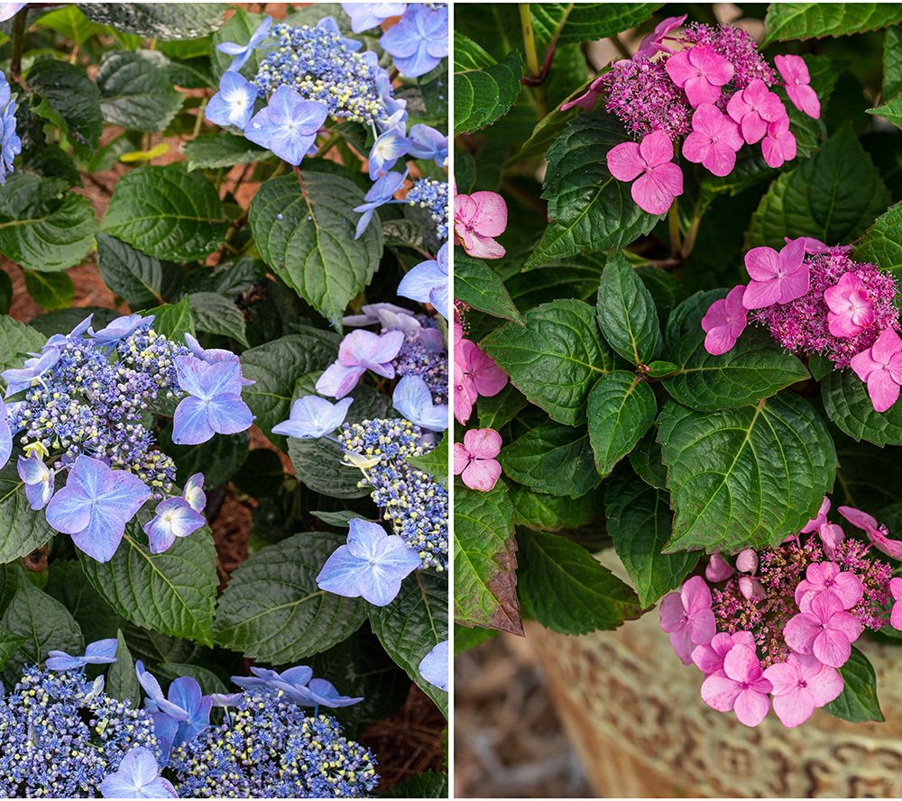 Acidic soil produces blue flowers while alkaline soil will encourage pink flowers
