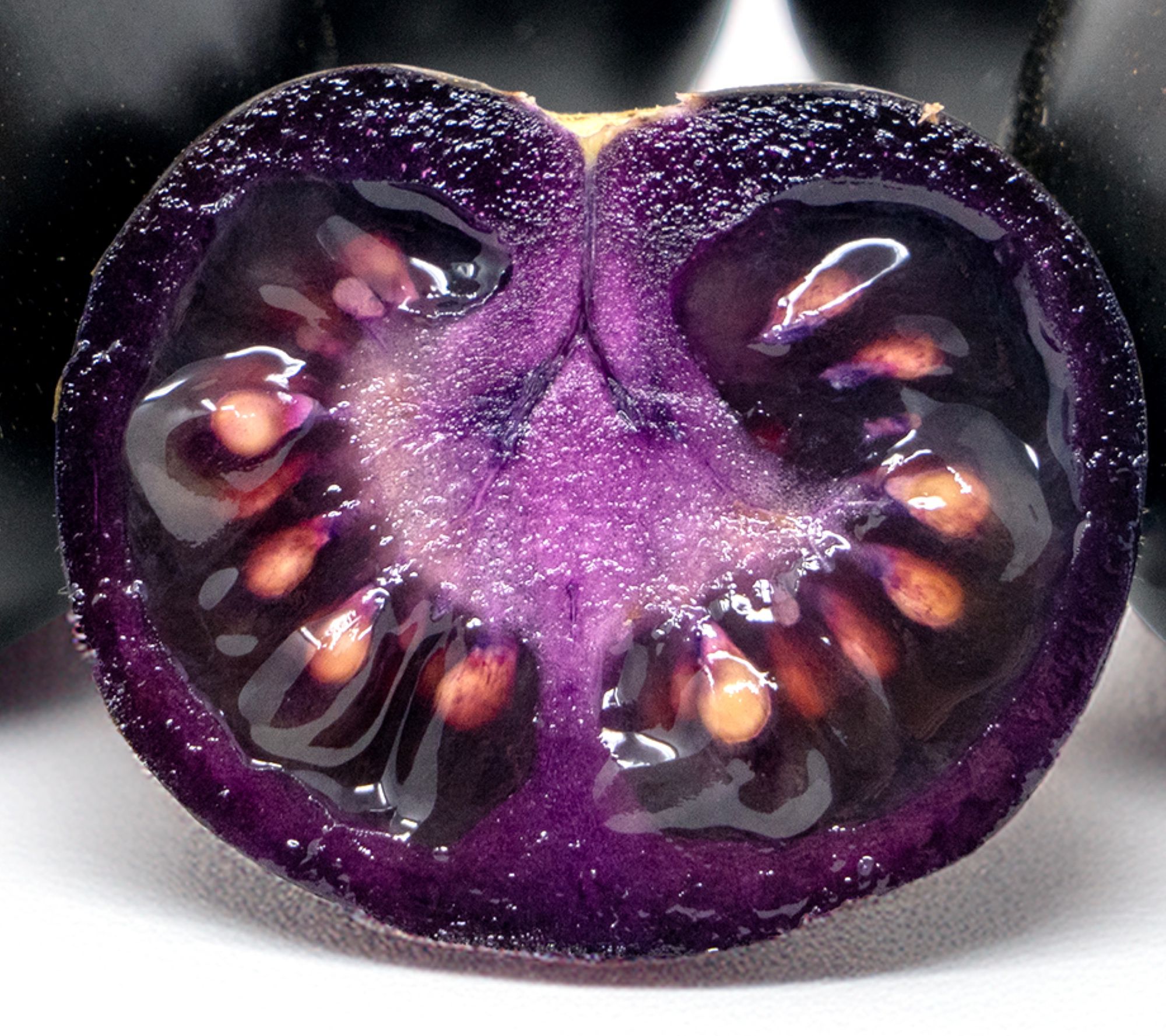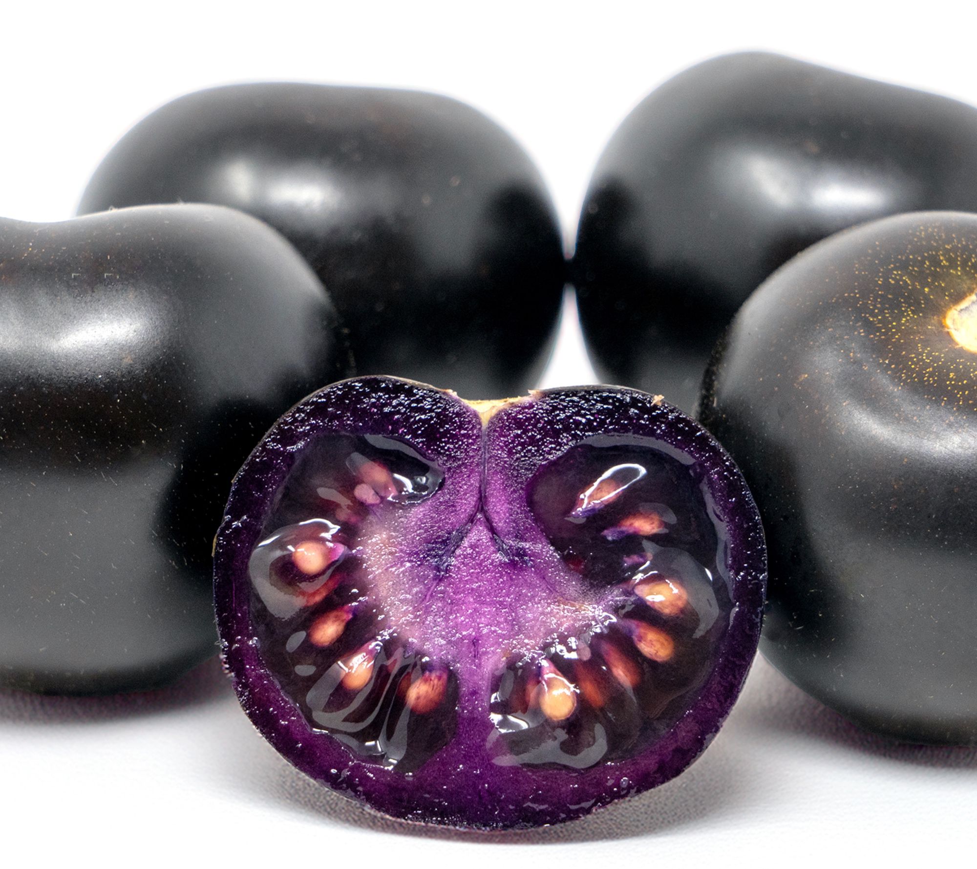Turn garden beds and salads into a feast for the eyes with this one-piece purple tomato live plant. As fruits mature, deep green shades give way to striking purple hues -- inside and out -- bringing bold color and added antioxidants to your summer recipes. Sturdy stems climb upward, creating a vibrant focal point in any veggie patch. From Roberta's.