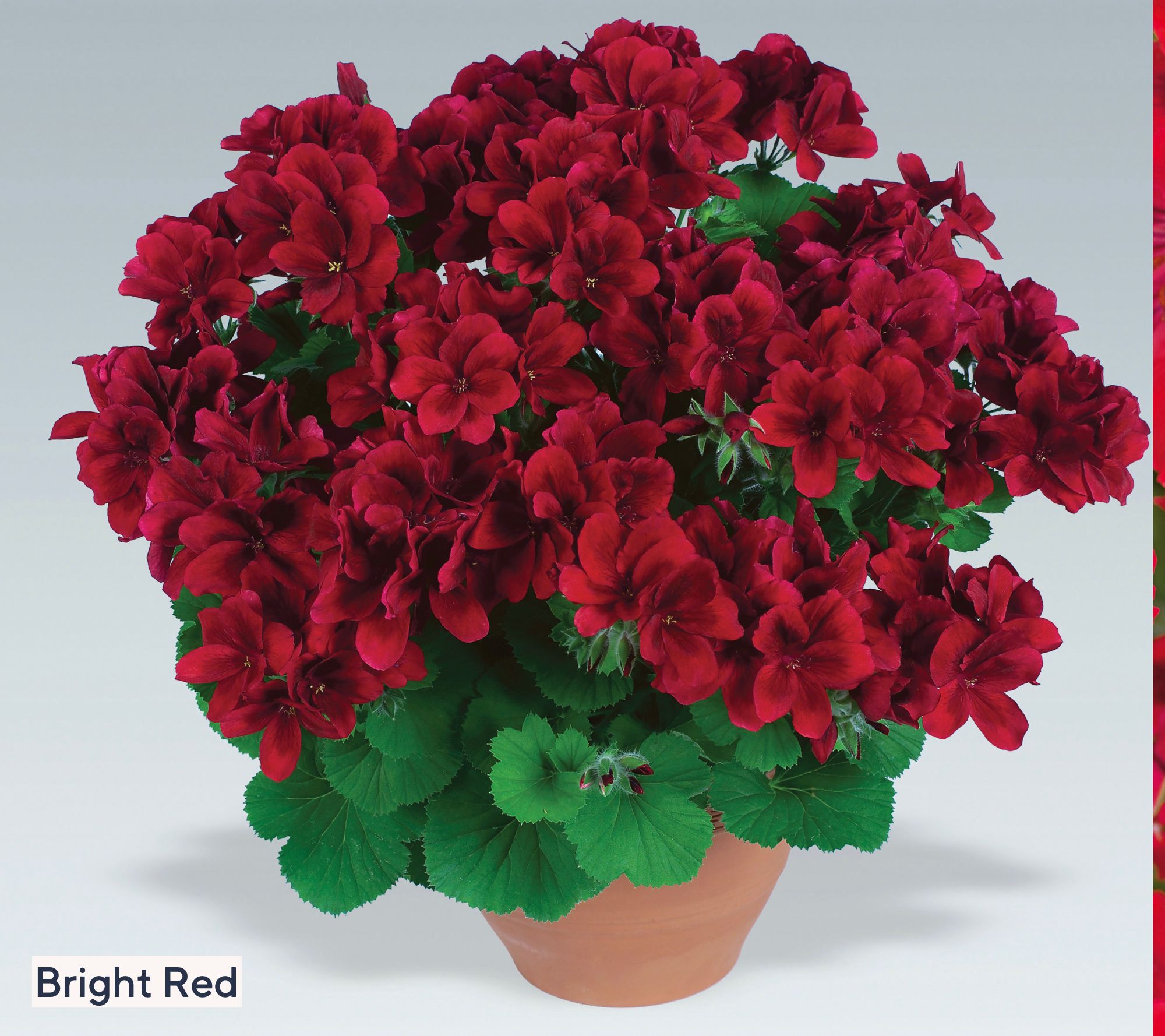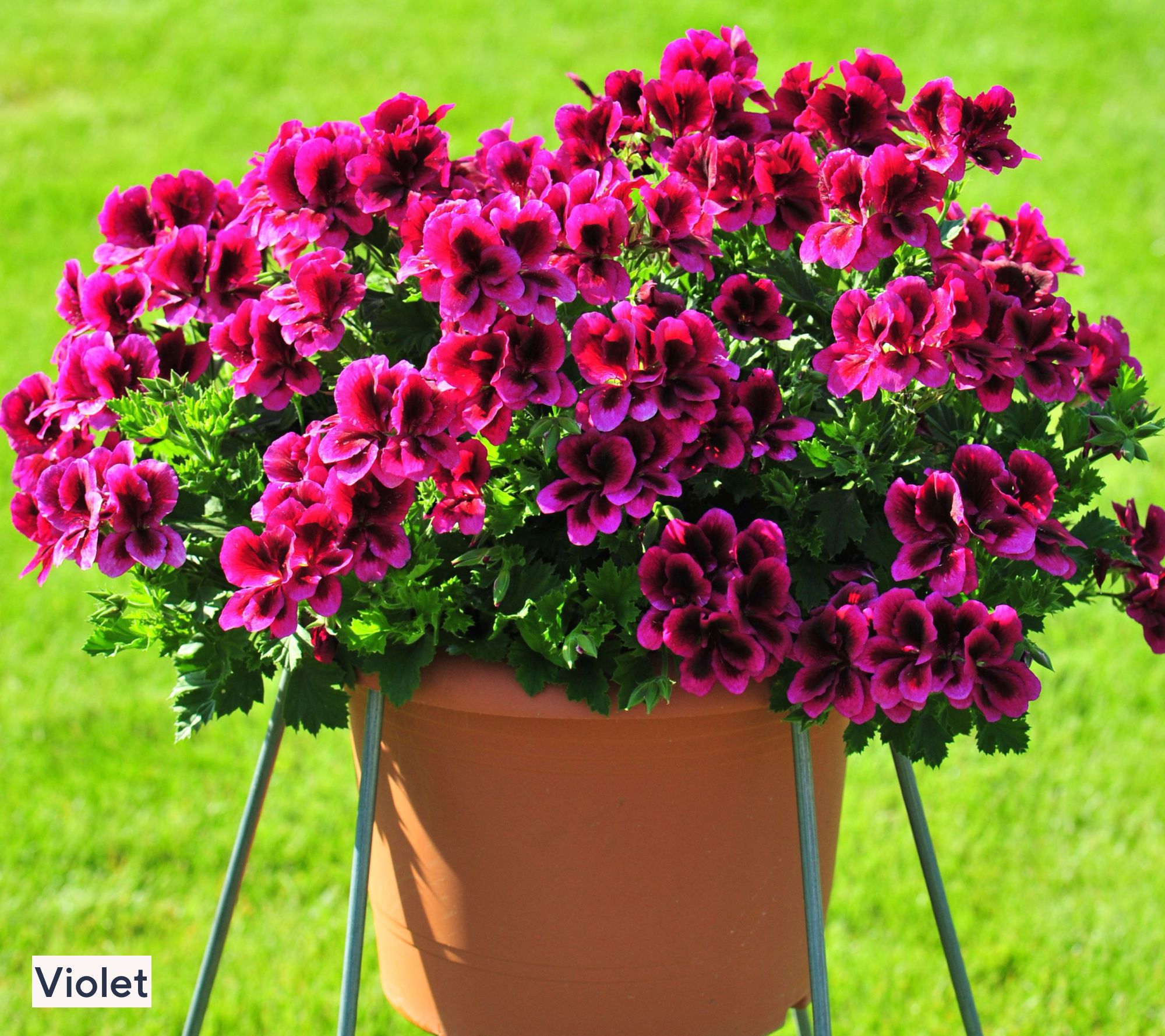 Shipped as: three geranium live plants: one bright red, one pink, and one violet