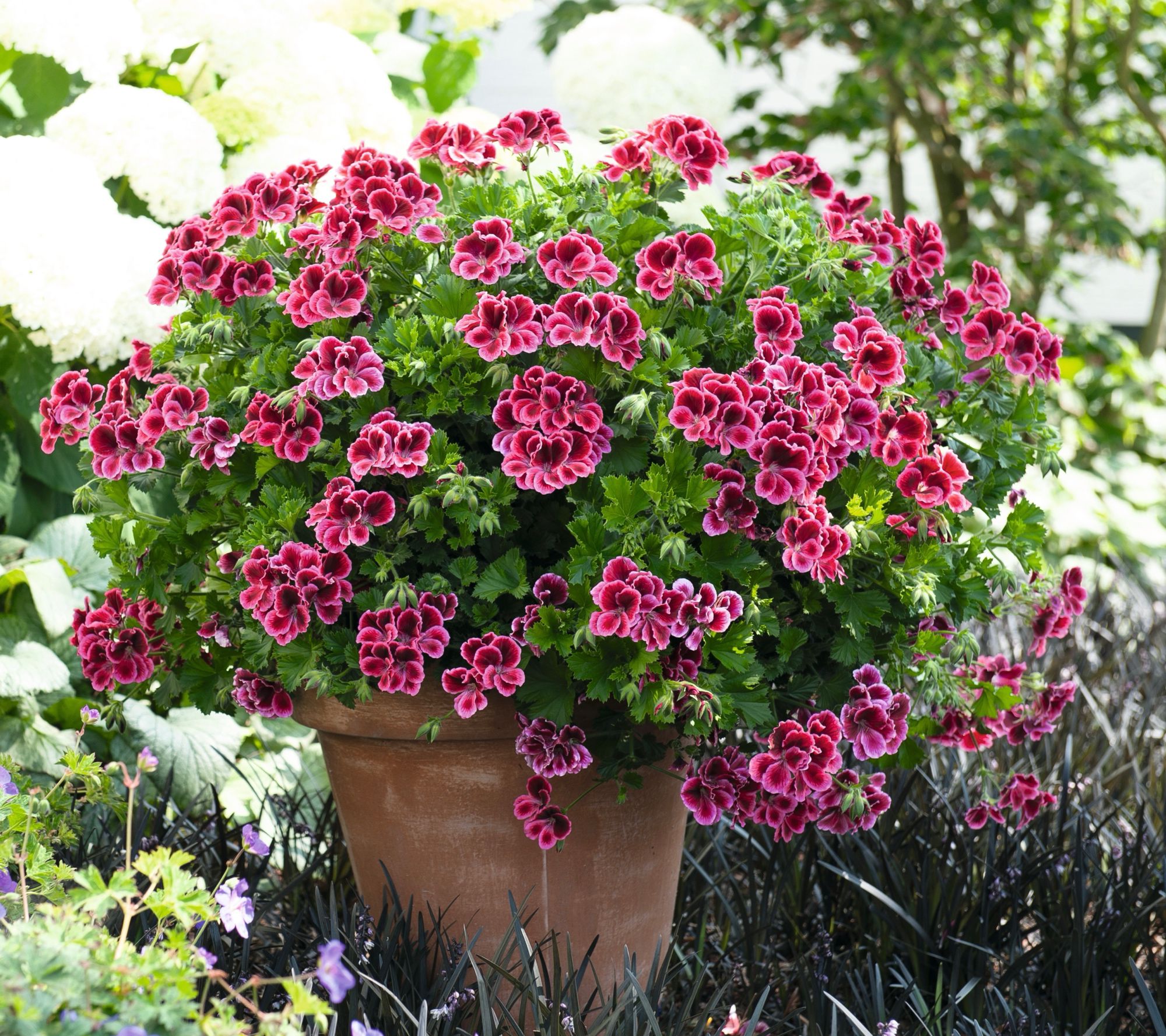 Brighten up your patio or garden beds with the showy color splash from these vibrant geraniums, each boasting bold, bi-colored blooms. The compact, bushy growth fits beautifully in containers or hanging baskets, attracting bees and butterflies while offering nonstop cheerful blossoms all season. From Roberta's.