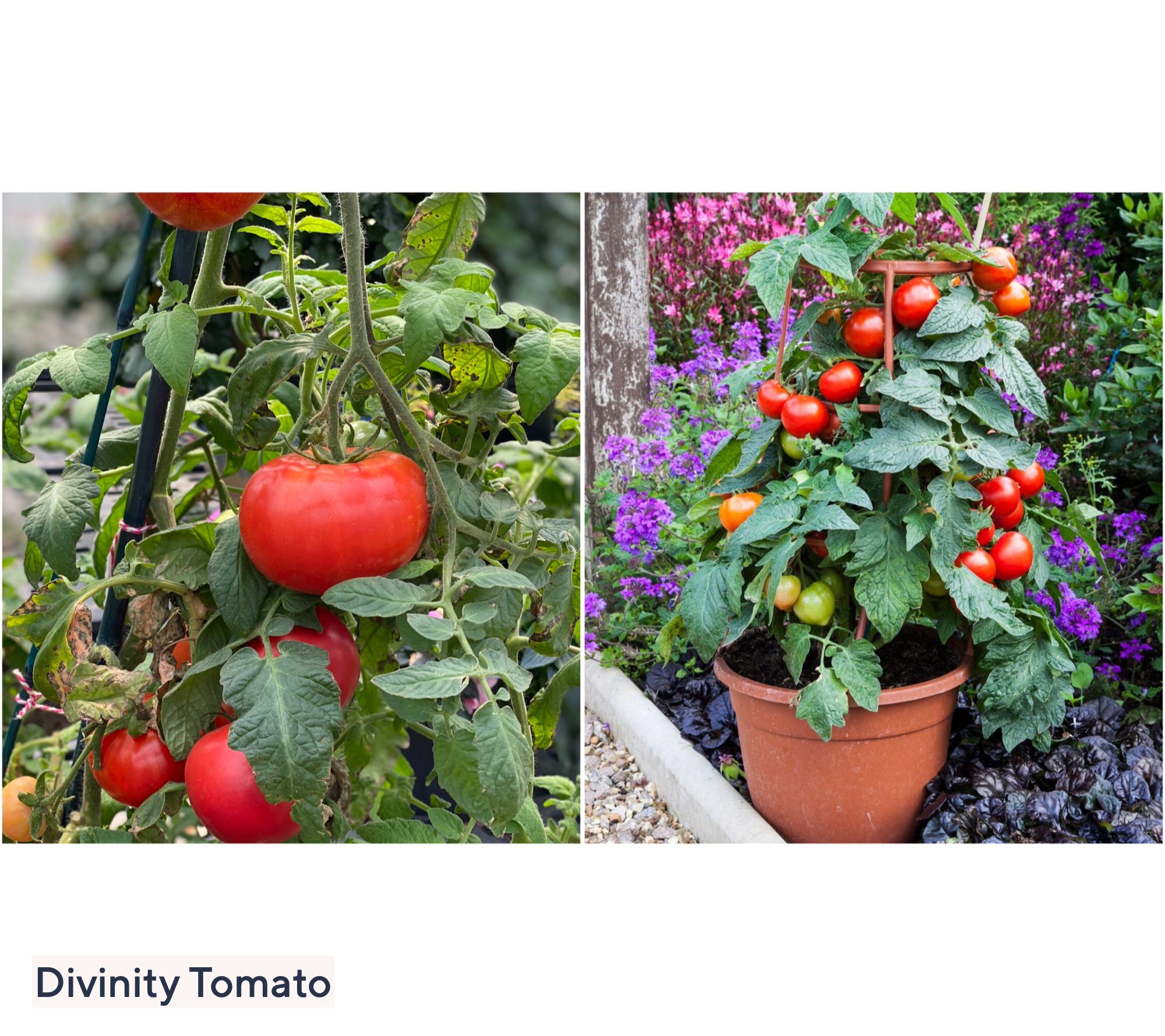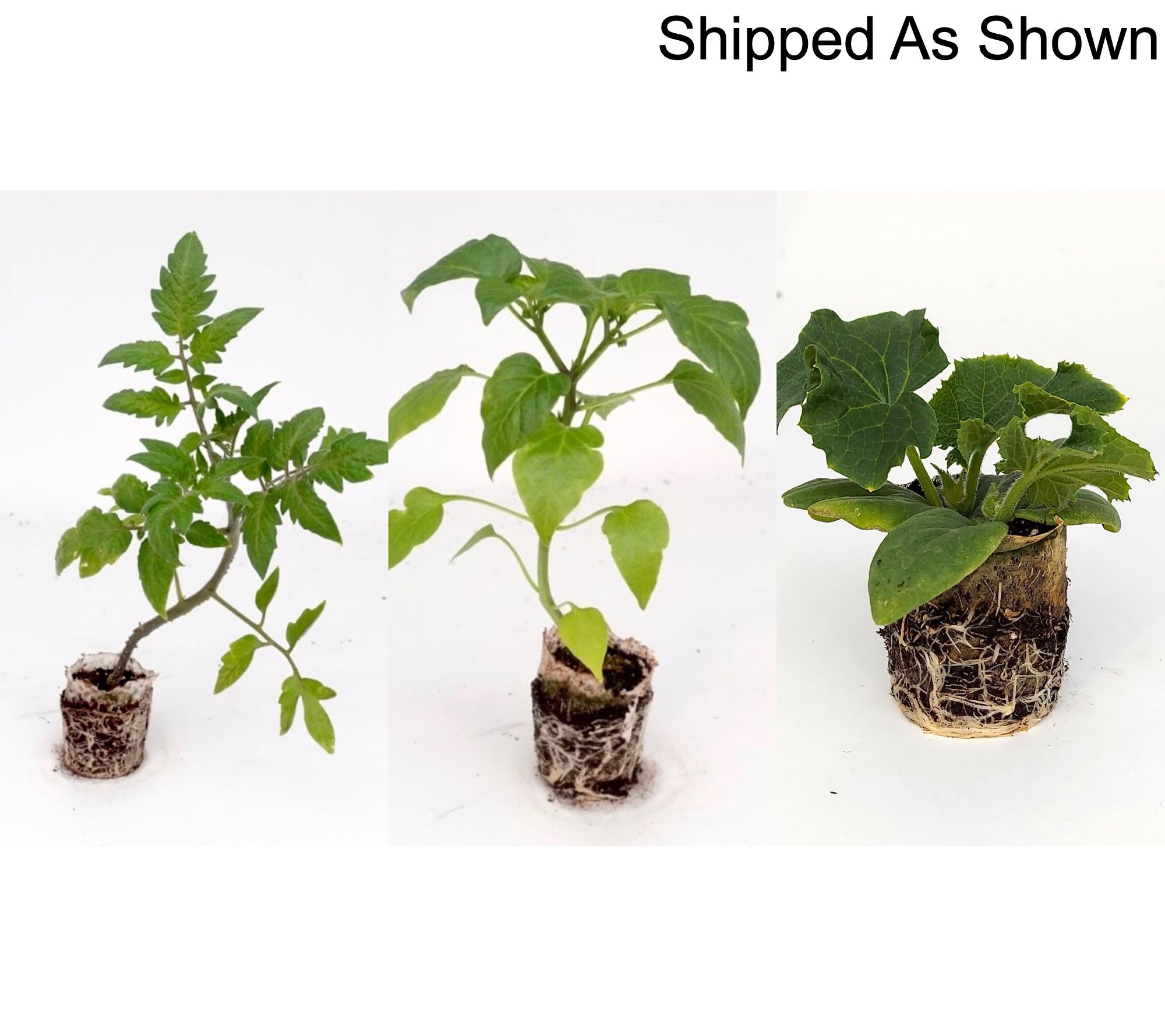 Shipped as: three live plants: one Divinity red slicing tomato plant, one Pot Black Eggplant plant, and one Zest Orange sweet pepper plant