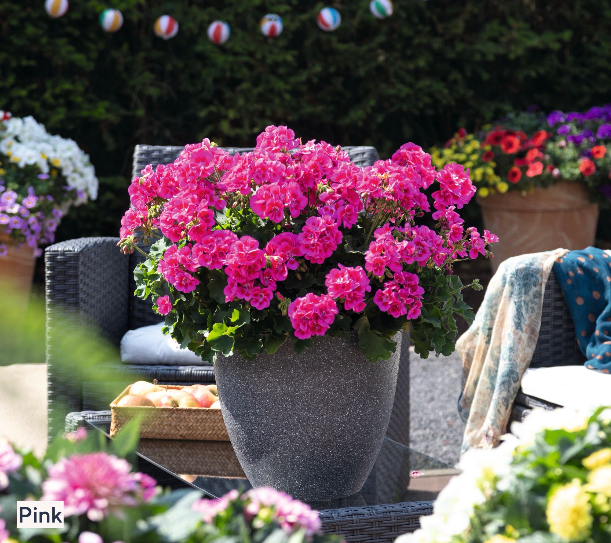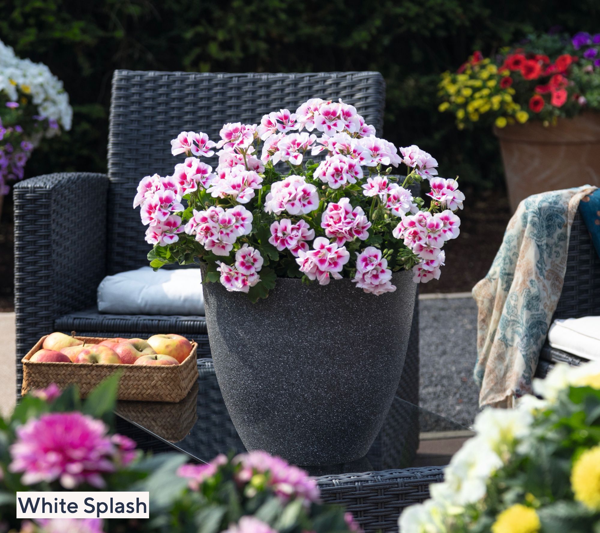 Fill your planters, baskets, or sunny window boxes with wave after wave of summer color using these Santana series geraniums. Their mounded, uniform shape stays lush and full with minimal care, rewarding you with bright red, pink, and splashy white flowers that flourish even through heat, humidity, and dry spells. Add effortless vibrance to your outdoor spaces all season. From Roberta's.