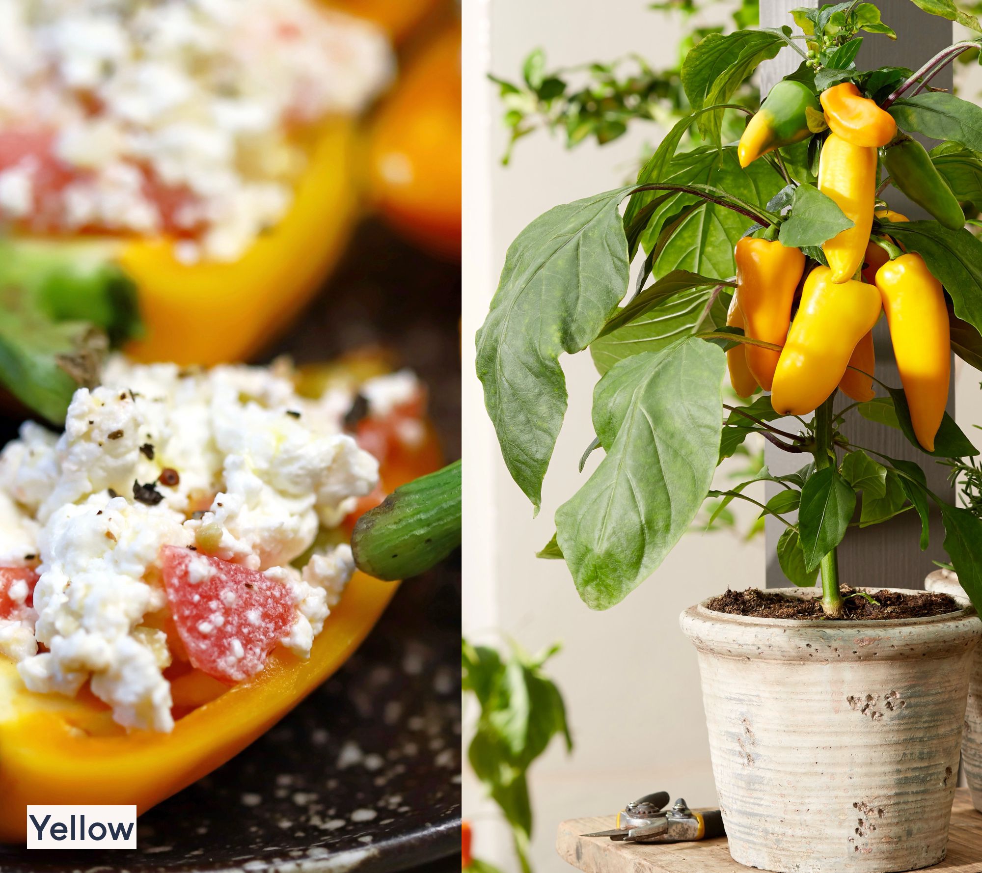 • Shipped as: three live Sweet Pillar Snacking Pepper plants: red, yellow, and orange peppers