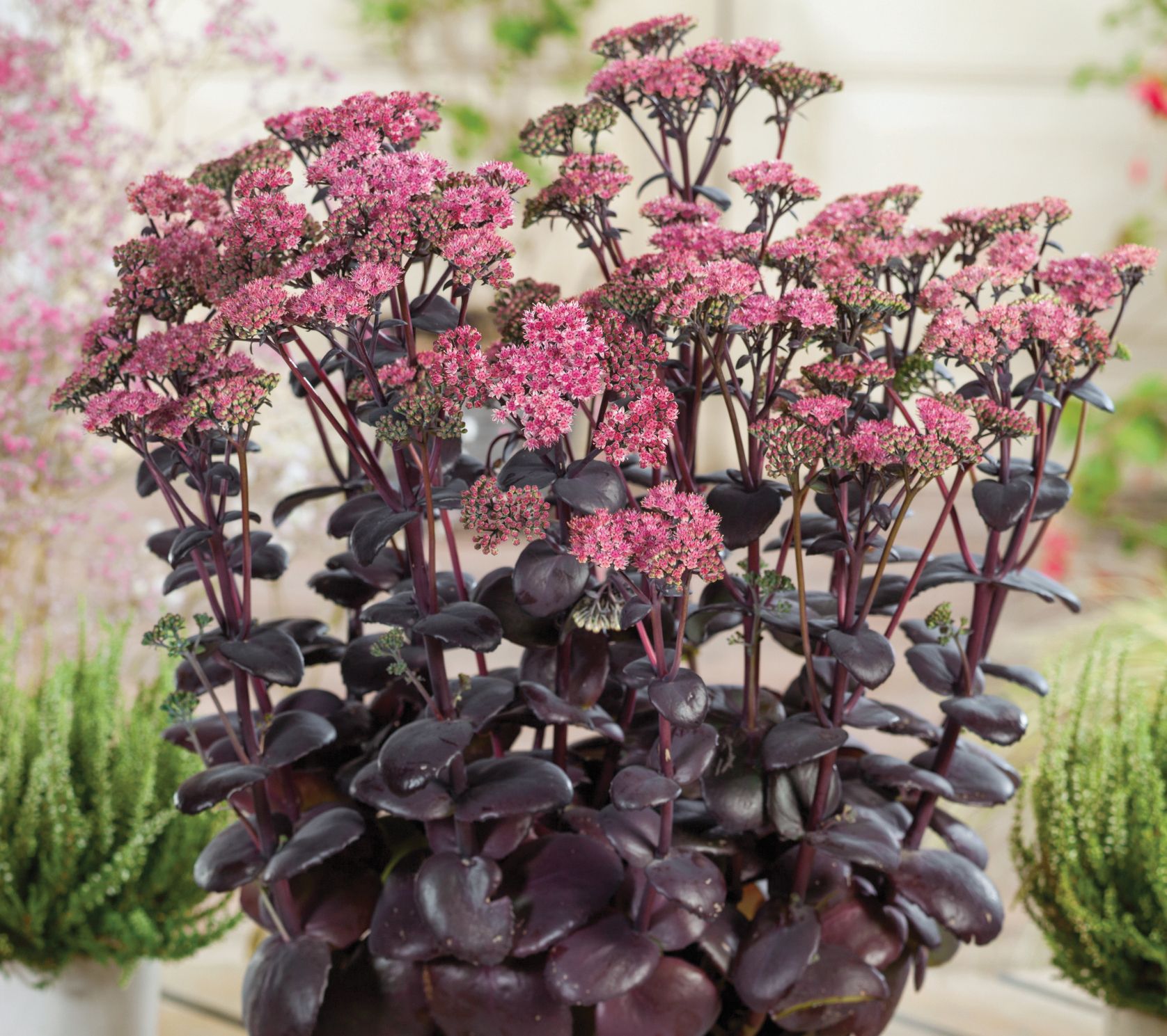 • Shipped as: three bare root plants: one Autumn Joy, one Chocolate Cherry, and one Blue Pearl