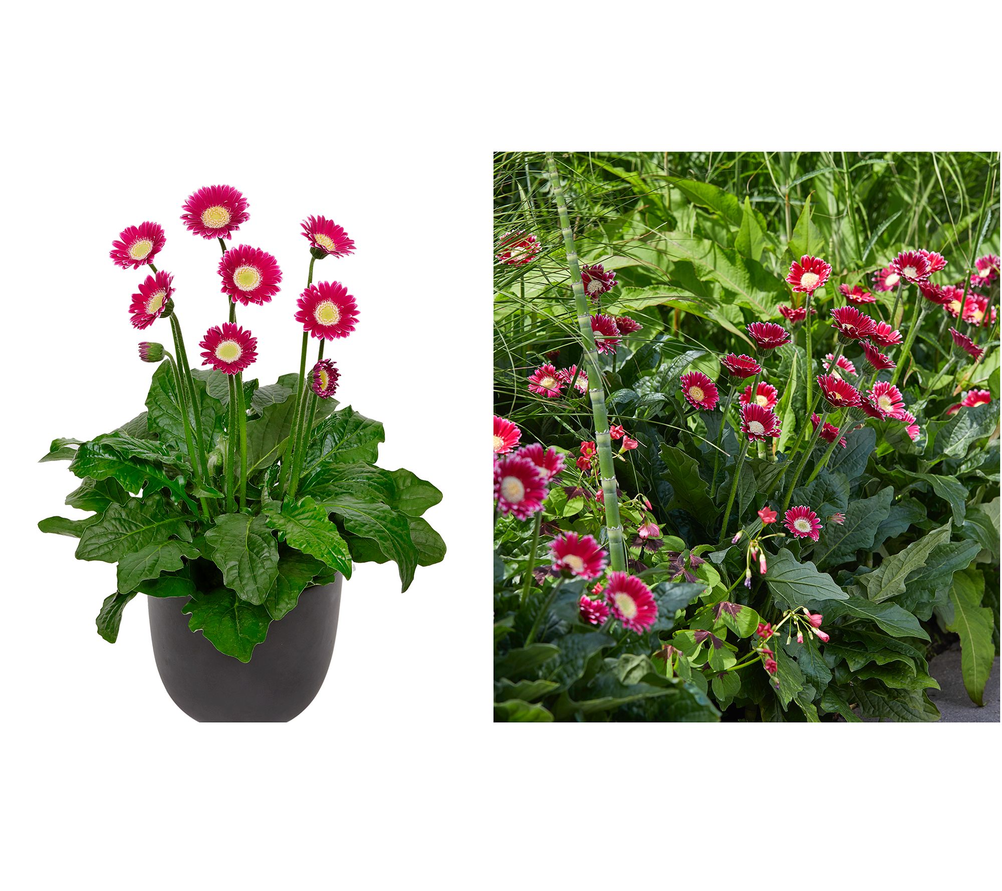 The cutest flower in the garden, these gerber daisies bloom from late spring to frost. Expect compact, colorful blooms in shades of magenta, orange, yellow, and red. From Roberta's.