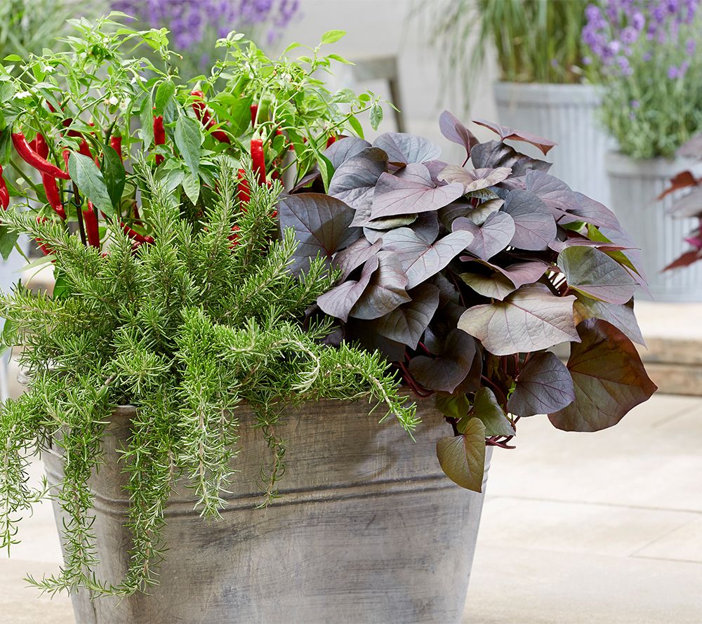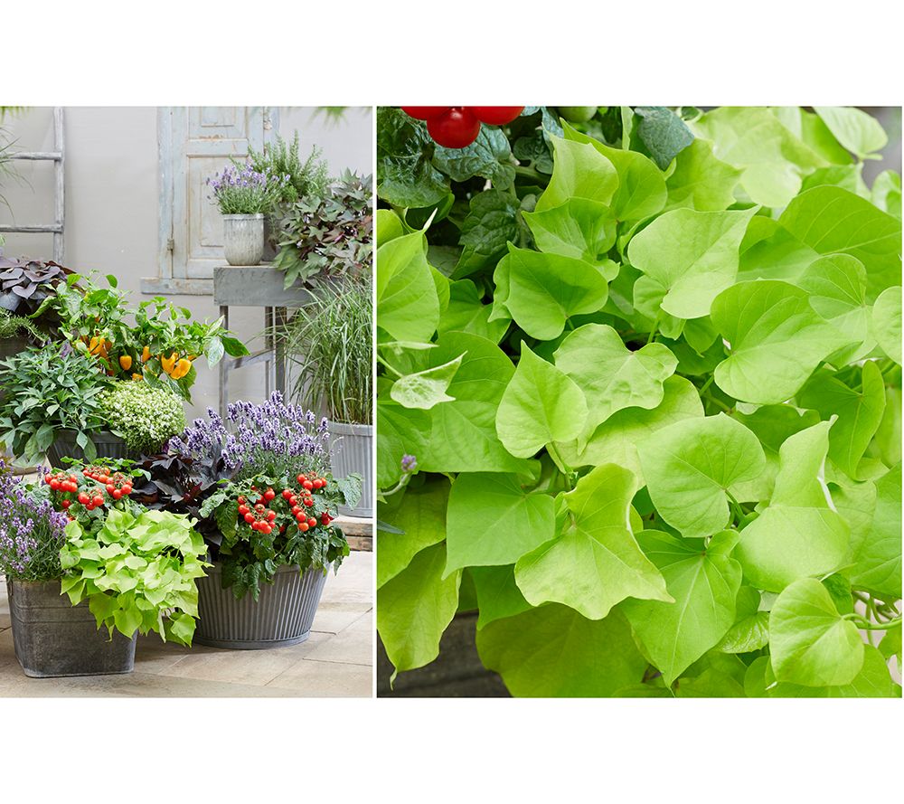 Offering form, function, beauty and edibility, these potato vines fill out beds and mixed containers with ease. From Roberta's.