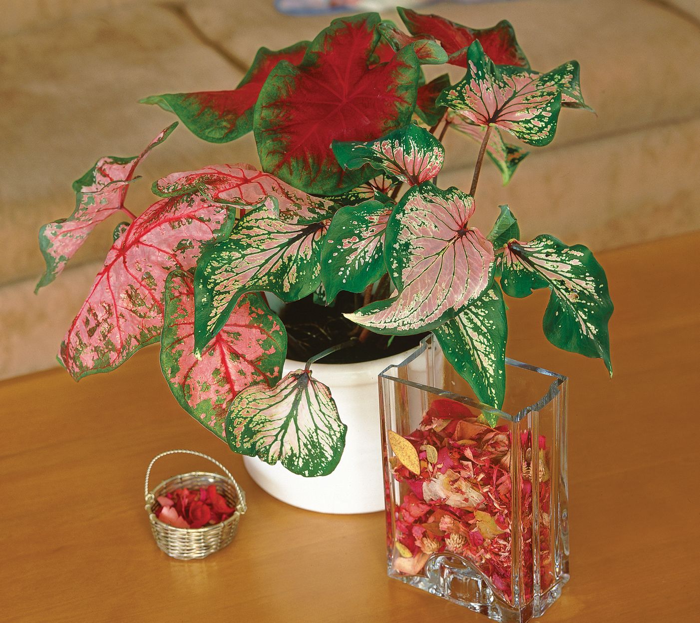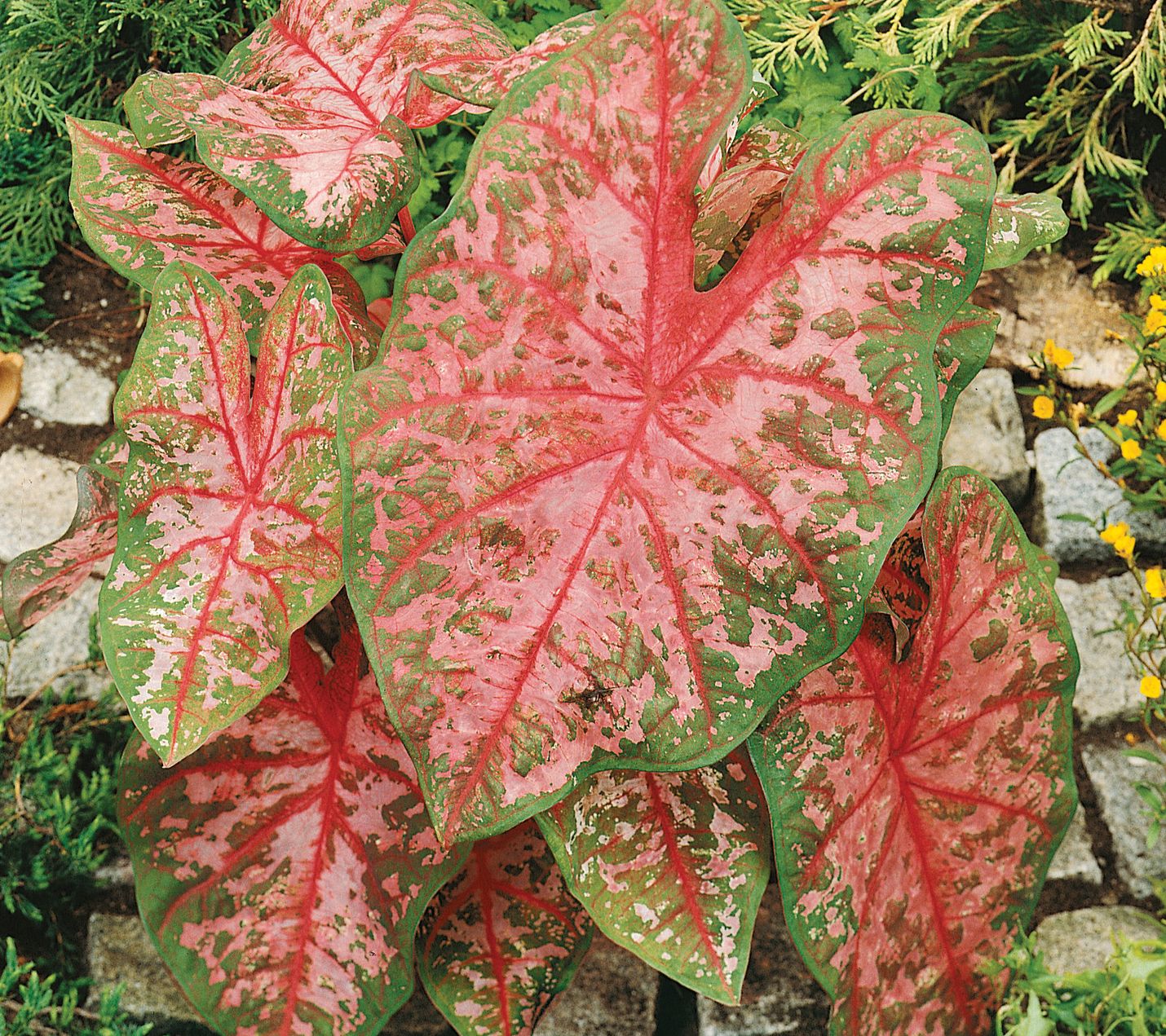 Turn your outdoor space into a tropical paradise with this beautiful mix of fancy-leafed Caladium bulbs. With their vibrant colors, they bring a lively touch to your garden. From Roberta's.