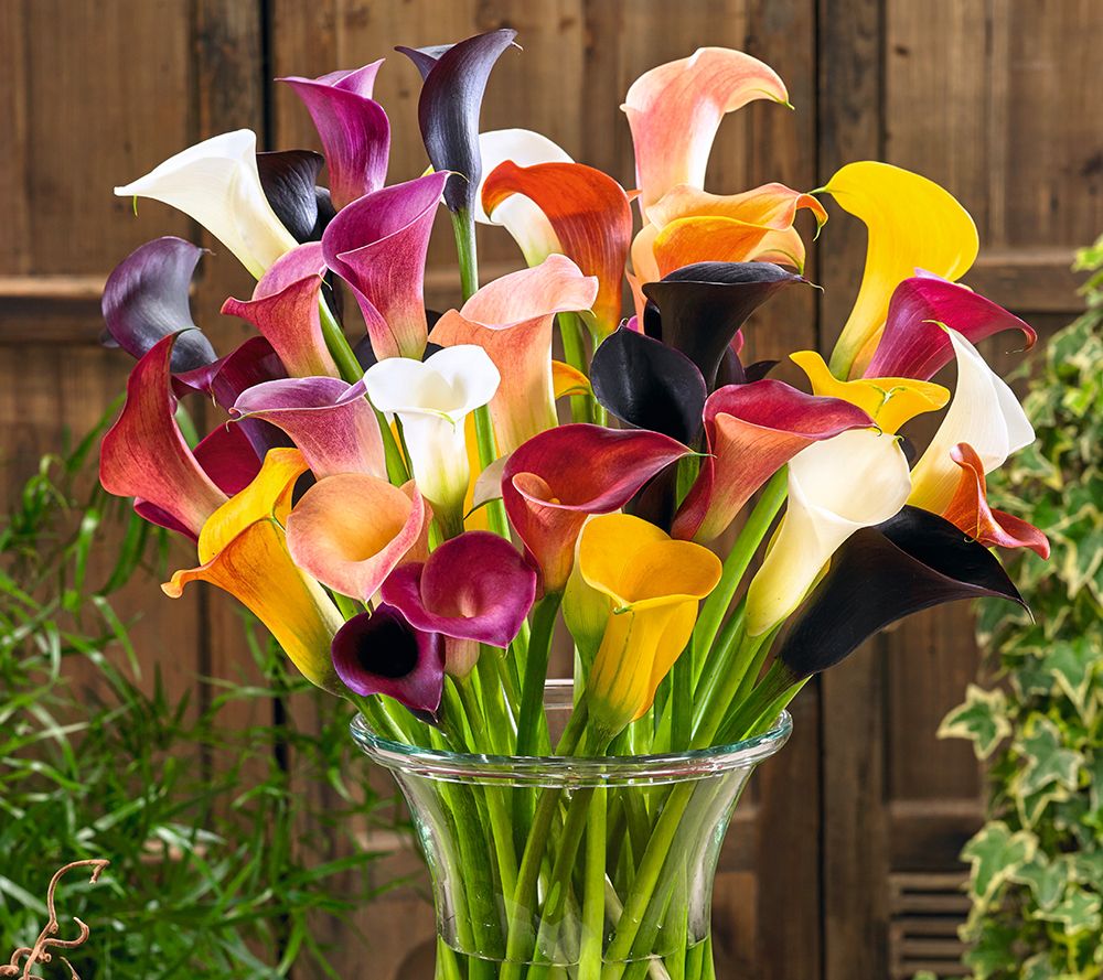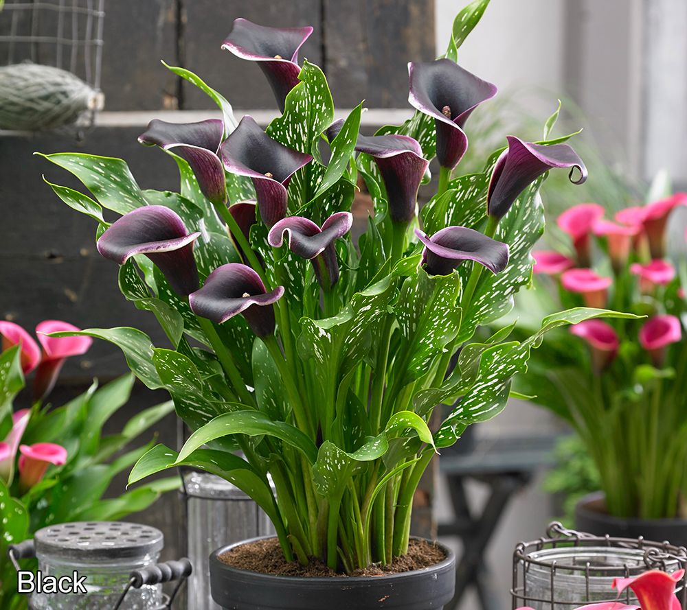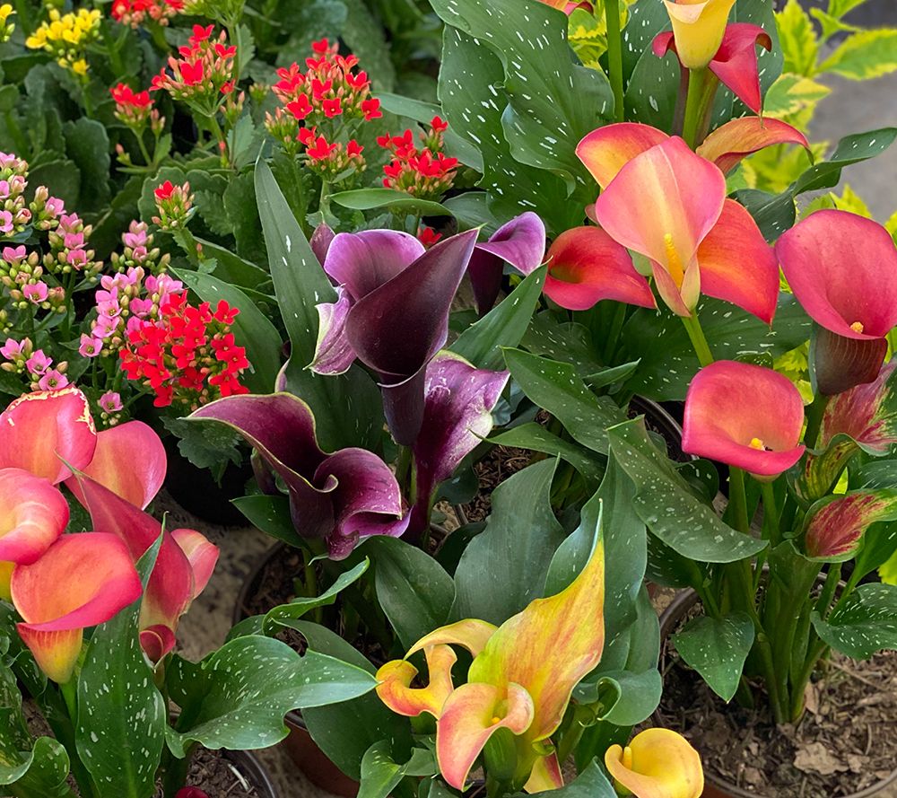Create a colorful display in your garden with these long-blooming calla lilies. The elegant fluted flowers come in vibrant shades of pink, purple, yellow, orange, and black. These versatile blooms thrive in containers or directly in the ground, and look stunning in both your garden and your vases. From Roberta's.