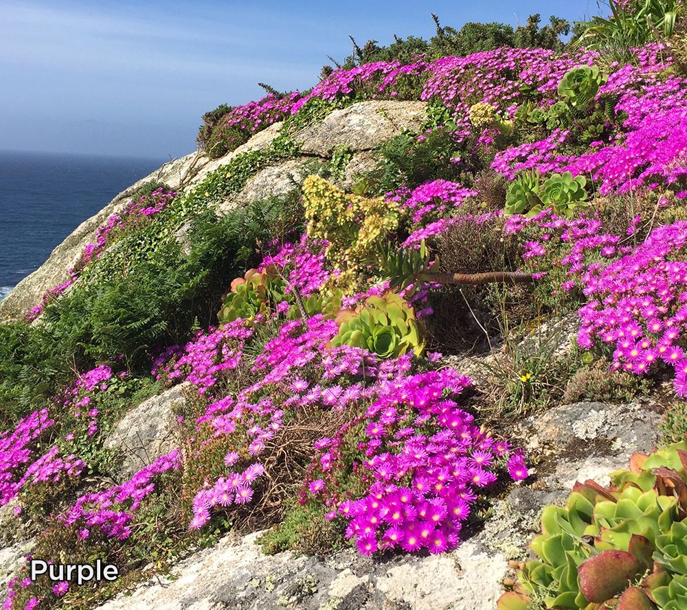 Add pops of color throughout a rock garden, walkway, or in patio containers with these hardy ice plants. The succulents bloom bright flowers all summer long. From Roberta's.